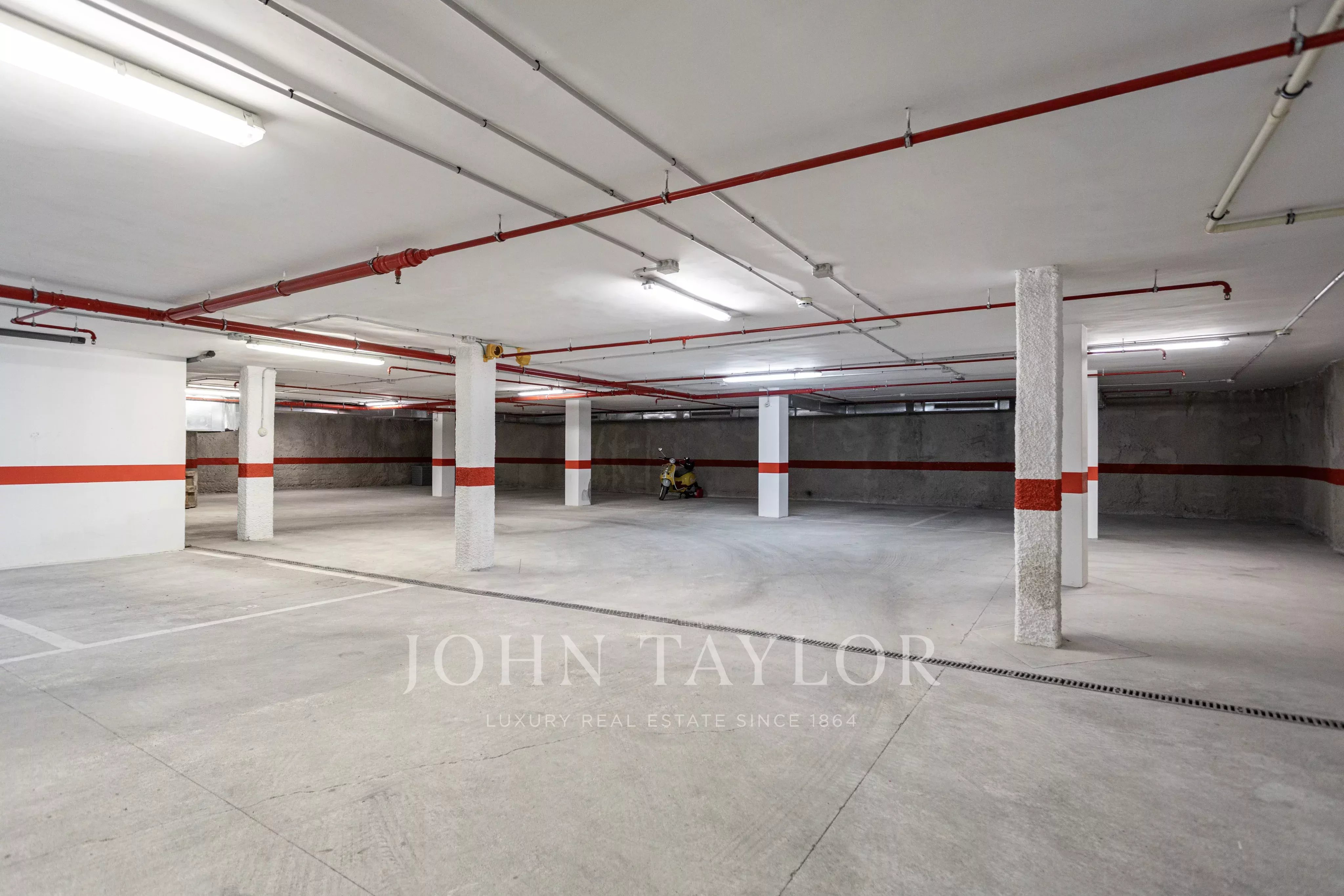 Die Wohnung besticht durch ihre großzügigen Proportionen, natürliches Licht und gut durchdachte Raumaufteilung. Sie verfügt über zwei komfortable Schlafzimmer, eines mit eigenem Bad, sowie ein separates Gästebad. Die Wohnung wird durch einen separaten Waschraum und eine kleine Terrasse und einen Balkon auf der Hauptwohnebene ergänzt.