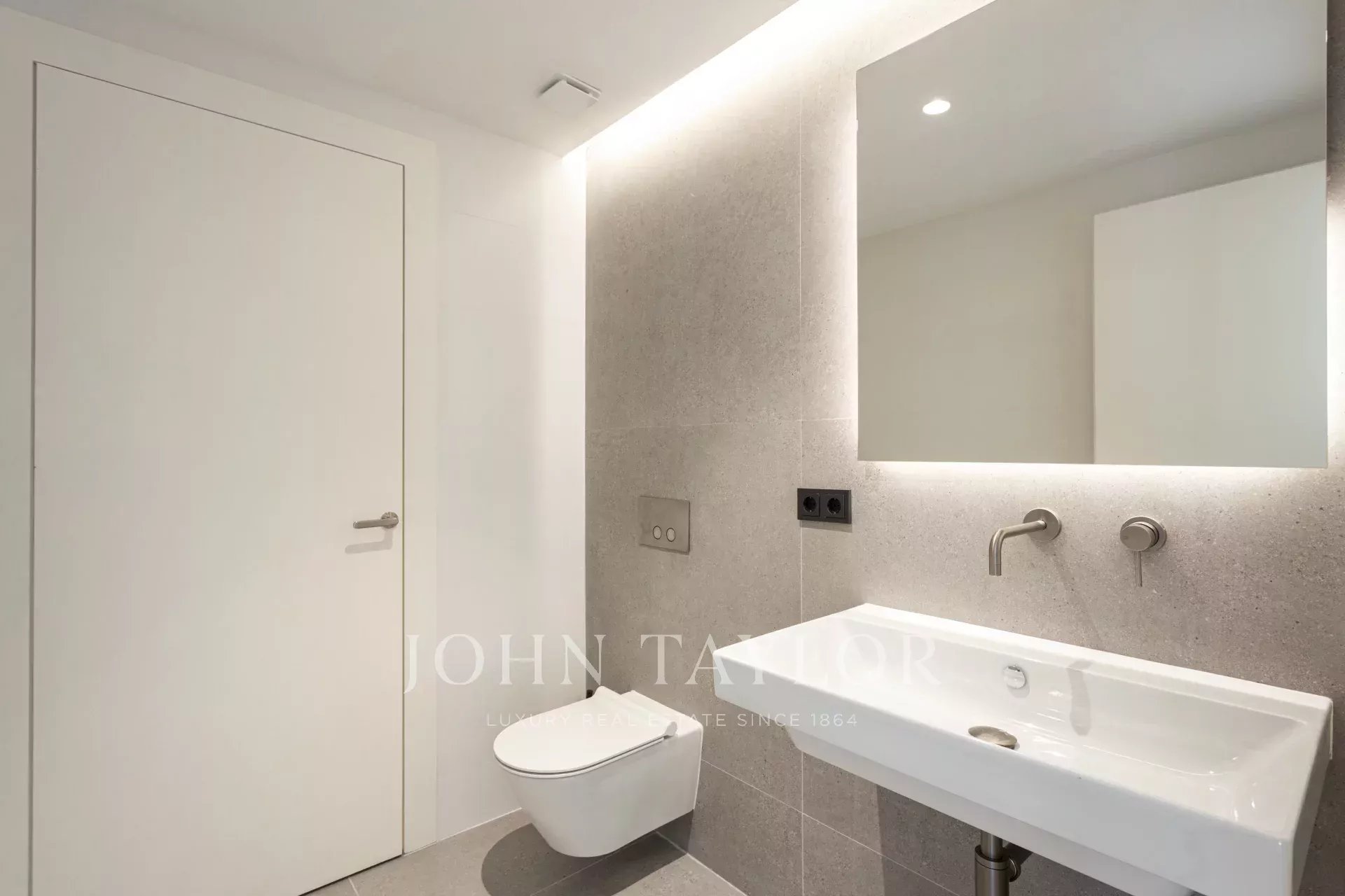 Diese exklusive, neu gebaute Wohnanlage befindet sich in unmittelbarer Nähe des Strandes und des Hafens von Portixol, nur 7 Minuten vom Flughafen Palma und einen kurzen Spaziergang von den Einkaufsmöglichkeiten und Annehmlichkeiten der Altstadt entfernt. Das vom Architekten Andreu Crespí (CMV Architects) entworfene Gebäude erfüllt die höchsten Standards in Bezug auf Design, Materialqualität, Komfort und Nachhaltigkeit und verfügt über ein Energiezertifikat der Klasse A sowie eine Erdwärmeheizung. Der Komplex beherbergt insgesamt 81 Wohnungen, darunter 10 Penthäuser, die sich auf sechs Etagen verteilen. Diese Wohnung im ersten Stock verfügt über einen offenen Raum mit integriertem Wohn- und Essbereich sowie einer maßgeschneiderten Küche und Möbeln von Espacio Home Design. Sie verfügt über eine private Terrasse von 10 m², zwei Schlafzimmer mit jeweils eigenem Bad, ein Gäste-WC und eine separate Waschküche. Zu den besonderen Merkmalen gehören eine Fußbodenheizung, eine zentrale Klimaanlage und intelligente Haustechnik. Im Preis enthalten sind ein 11 m² großer Parkplatz und ein 4 m² großer privater Abstellraum.