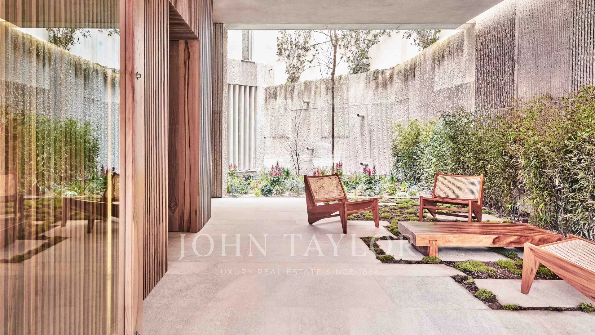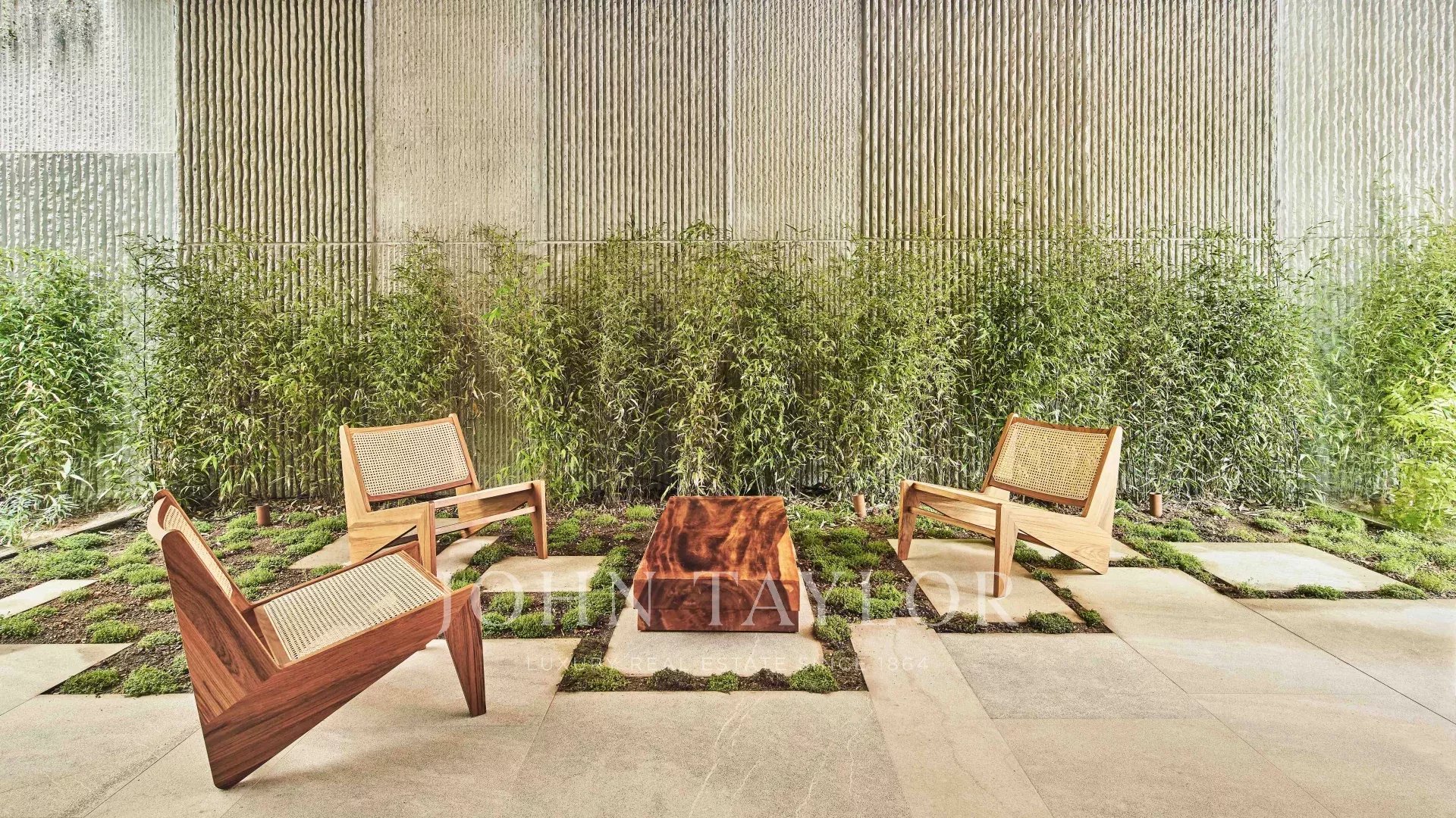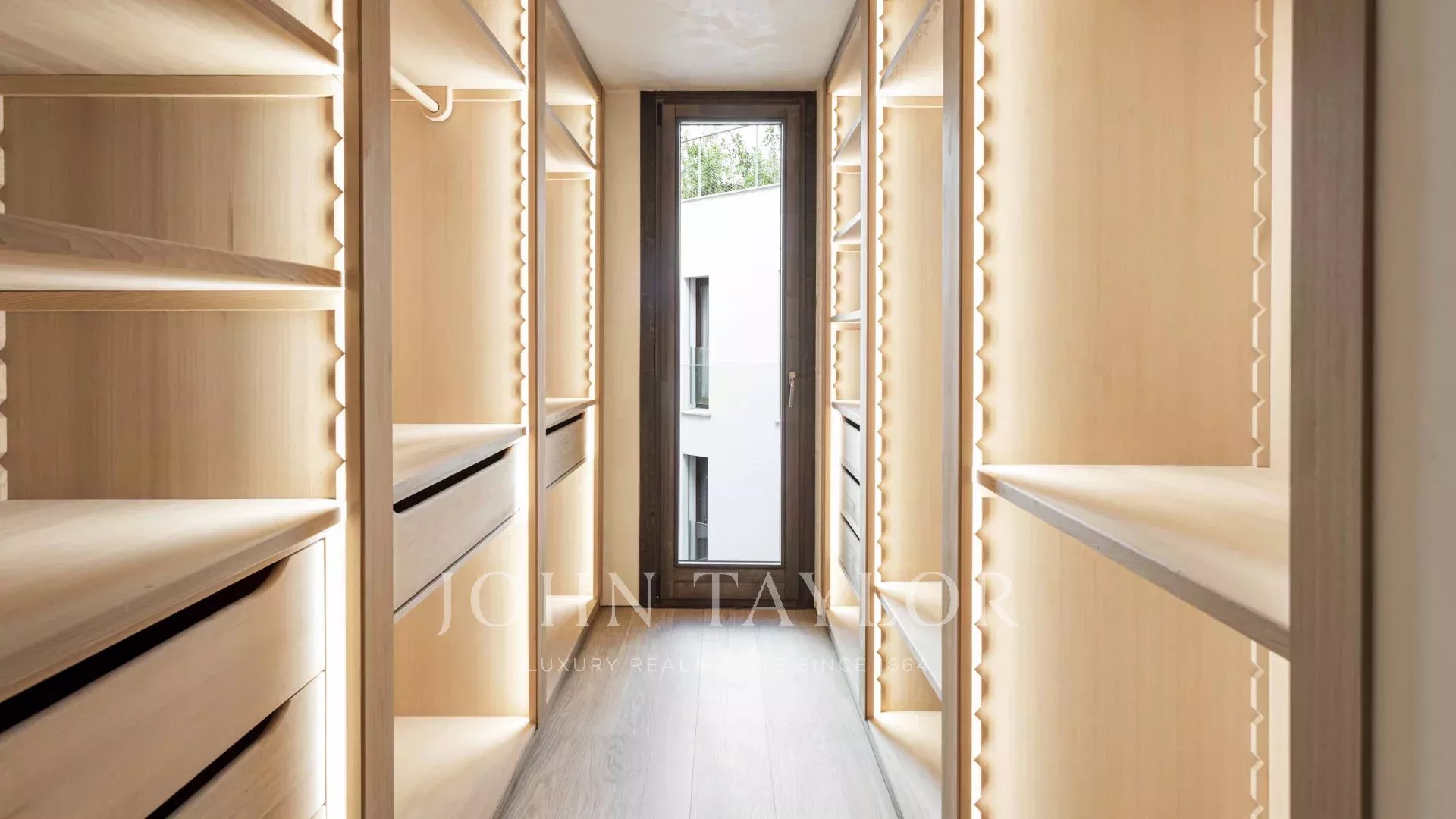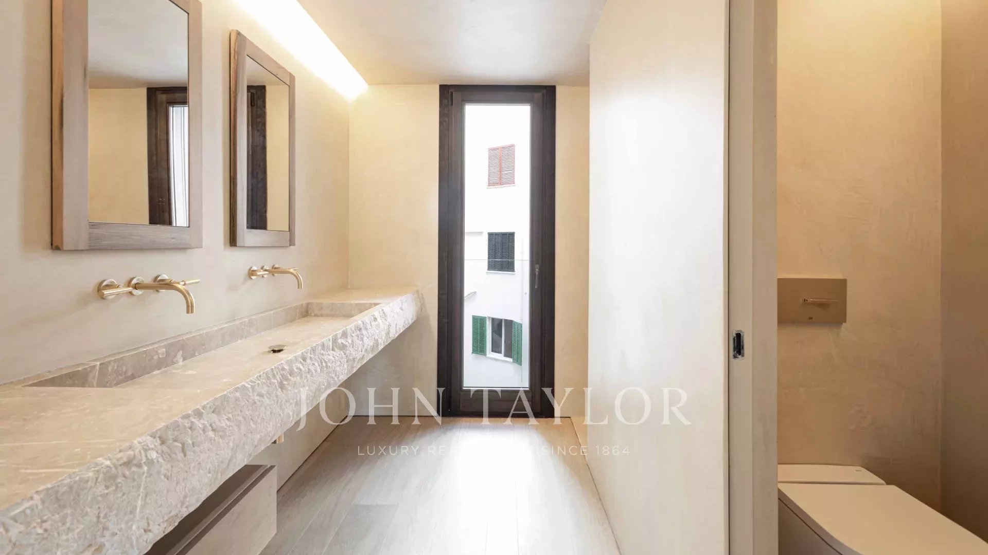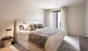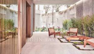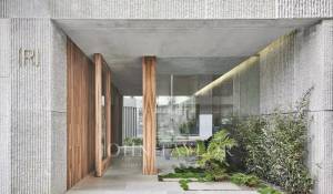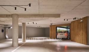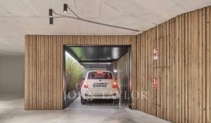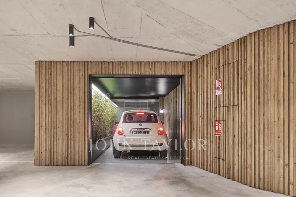 Die Wohnung verfügt über einen offenen Küchen-, Ess- und Wohnbereich mit bodentiefen Fenstern, die für ein Maximum an natürlichem Licht sorgen, sowie über Balkone und Schiebeelemente aus Holzlamellen. Die voll ausgestattete Küche mit Miele-Geräten wird mit maßgefertigten Möbeln aus Naturholz und Binissalem-Naturstein kombiniert. Die Mischung aus hohen, mit handgefertigtem Kalkstein verkleideten Decken, Holzböden und Türen aus Nussbaumholz ist wirklich außergewöhnlich. Der Tagesbereich wird durch ein Gästebad ergänzt. Der Nachtbereich bietet eine Master-Suite mit Ankleidebereich, ergänzt durch maßgefertigte Kleiderschränke mit Zedernholz-Interieur und ein eigenes Bad, sowie zwei weitere Schlafzimmer und ein zweites Bad. Die Immobilie wird durch einen Garagenplatz mit individuellen elektrischen Ladestationen, die über einen Autolift zugänglich sind, sowie einen Abstellraum ergänzt.