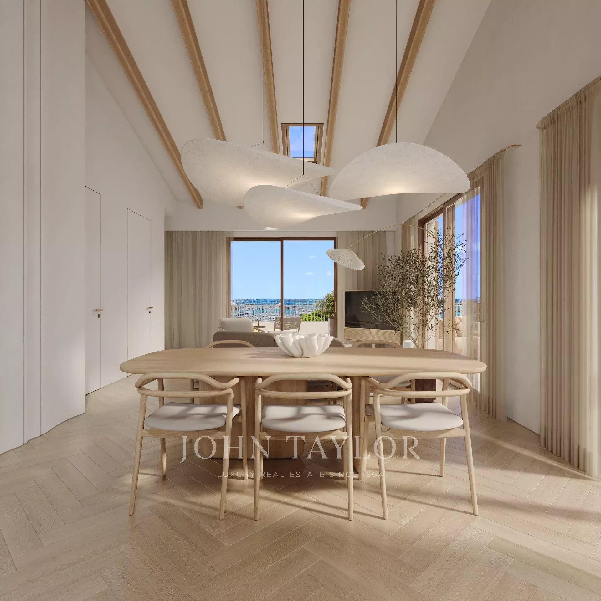 Dieses Penthouse im dritten Stock bietet einen spektakulären Meerblick direkt am Meer. Mit direktem Aufzug Zugang zum Inneren, umfasst es eine offene voll ausgestattete Küche, Wohn- und Esszimmer mit bodentiefen Fenstern und direktem Zugang zu seiner fantastischen Terrasse bietet die perfekte Kombination von Innen- und Außenleben auf einer Etage. Mit drei Schlafzimmern und drei Bädern (2 en suite) ist es perfekt als Vollzeitwohnsitz oder für den Urlaub geeignet. Der gesamte Innenraum ist 115 m² groß, mit einer 29 m² großen Terrasse.