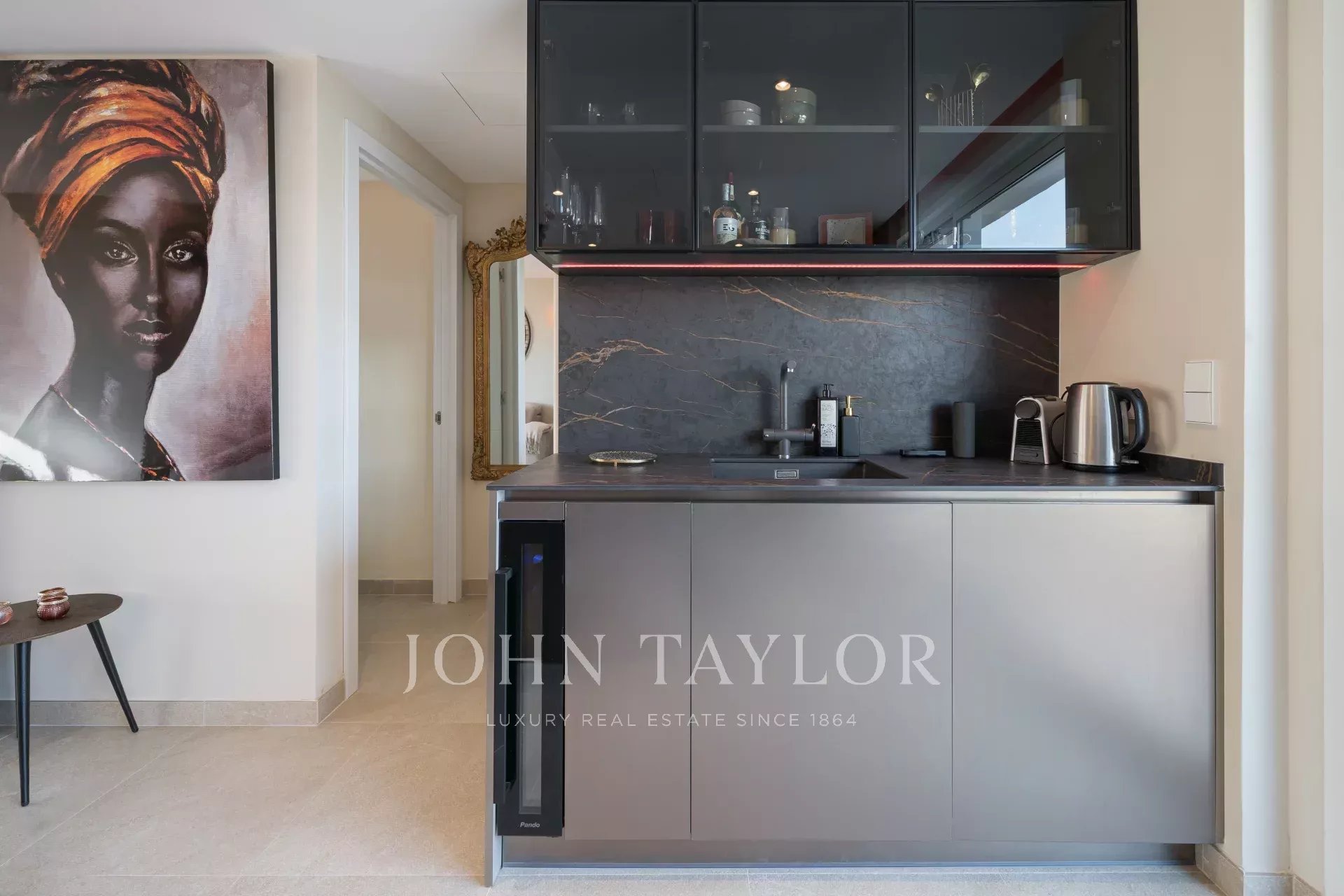 Eines der herausragenden Merkmale ist die 75 m² große private Terrasse, die nahtlos mit der Küche verbunden ist und ein außergewöhnliches Indoor-Outdoor-Wohngefühl vermittelt. Dieser sonnendurchflutete Raum eignet sich perfekt für Mahlzeiten im Freien, zum Entspannen und Unterhalten und bietet reichlich Stauraum.