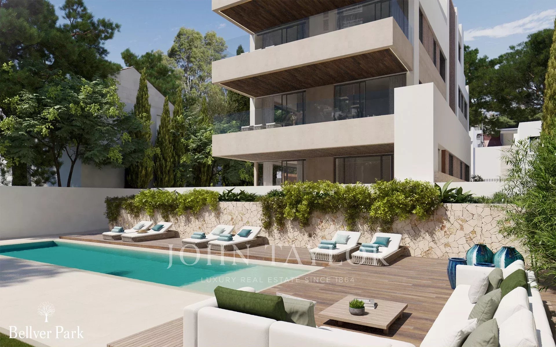 Diese Wohnung im Erdgeschoss hat einen großen, nach Süden ausgerichteten Garten, so dass man sich eher wie in einem Haus als in einer Wohnung fühlt. Es ist leicht erhöht, so dass Sie nicht auf gleicher Höhe mit dem Gemeinschaftspool sind, aber Sie haben direkten Zugang vom Garten zum Poolbereich. Diese Wohnung mit drei Schlafzimmern und zwei Badezimmern bietet 93 m2 Wohnfläche im Inneren und 75 m2 im Garten. Ein Tiefgaragenstellplatz und ein Abstellraum sind im Preis inbegriffen. Es gibt eine Liste von Extras, wo Sie eine Pergola, Jacuzzi, oder zusätzliche Bäume und Pflanzen hinzufügen können.