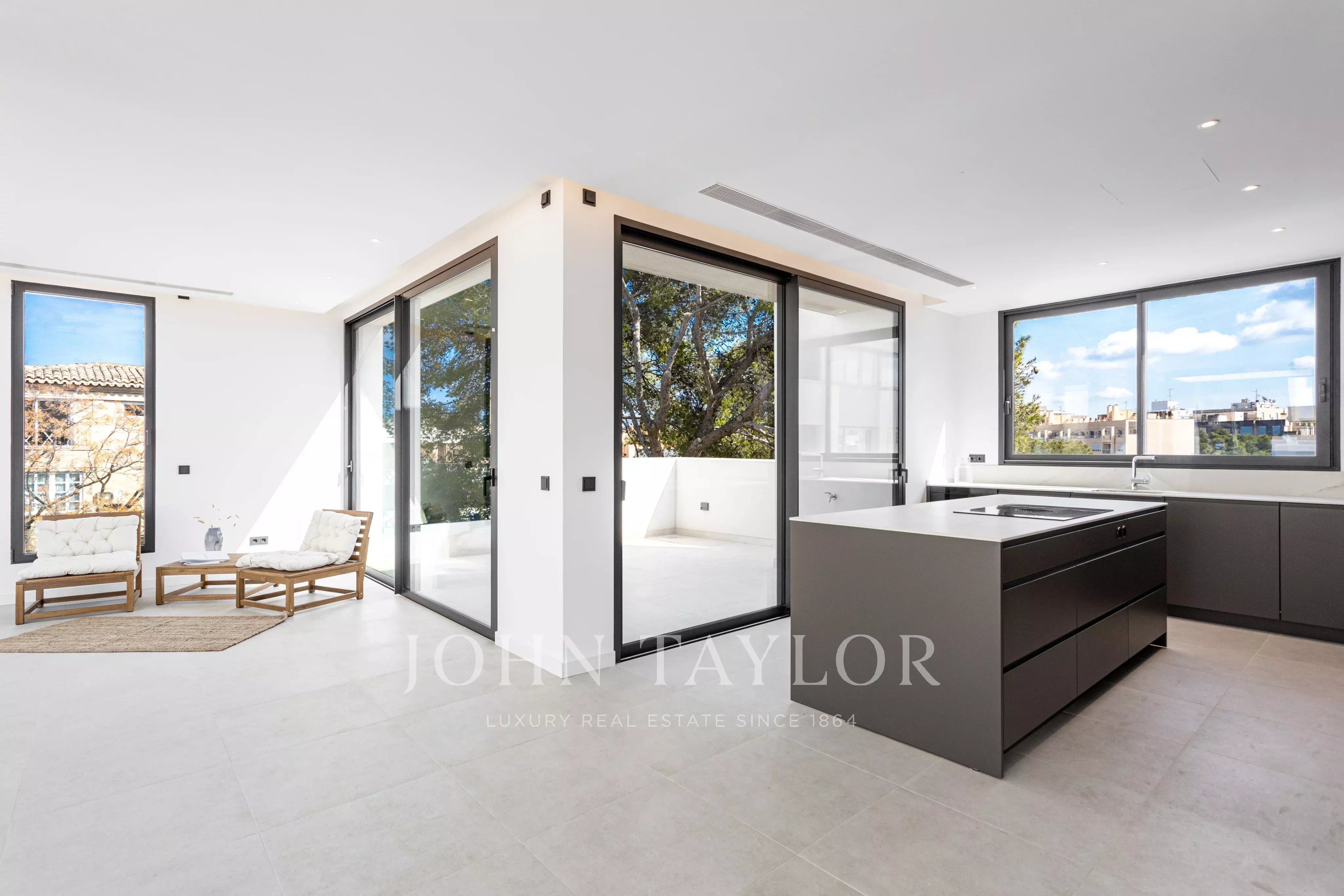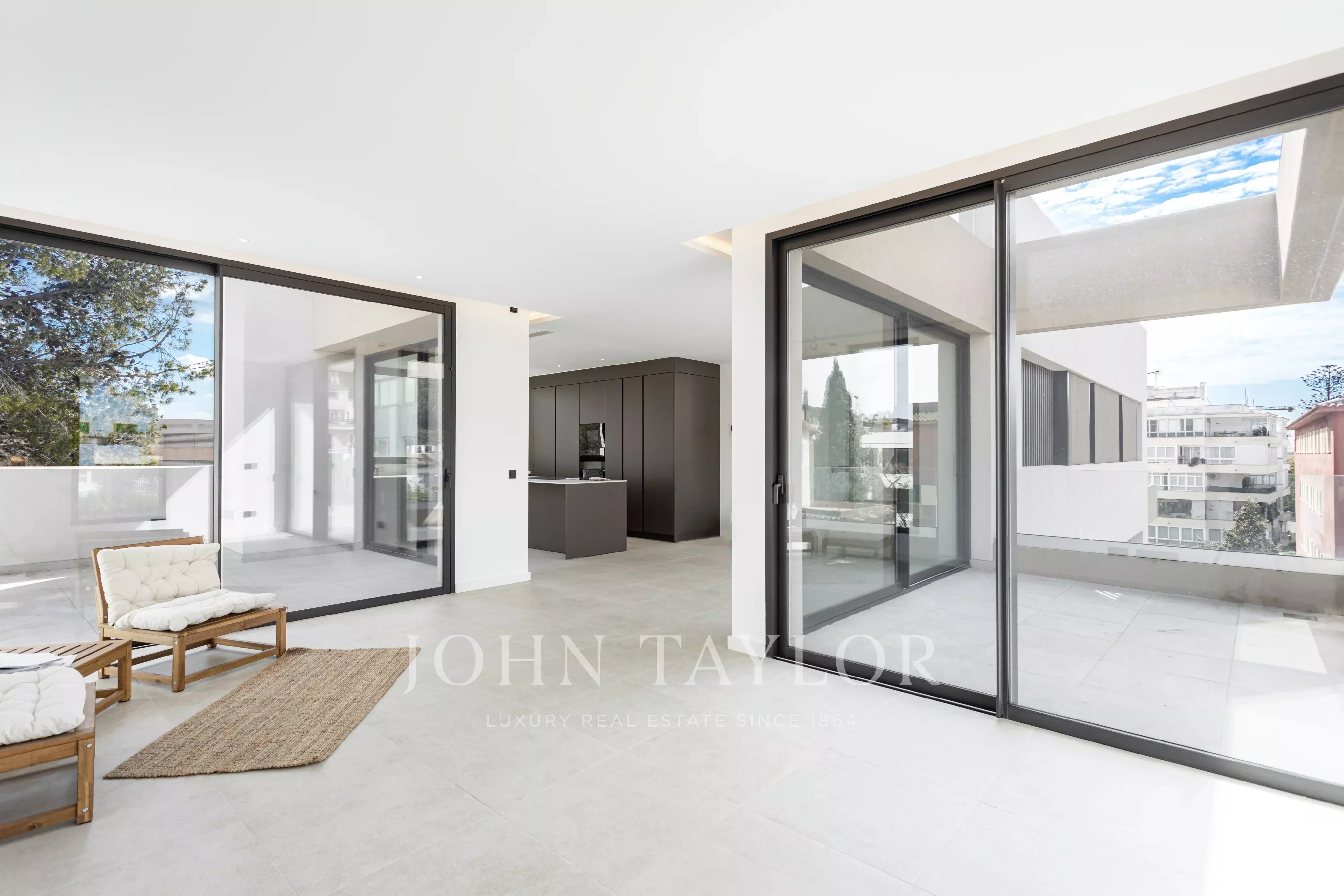 Das Penthouse ist die perfekte Mischung aus Innen- und Außenleben und verfügt über eine private Dachterrasse mit Pool, Grill und Lounge-Bereich. Die Wohnfläche im Inneren beträgt 144 m2 und umfasst 3 Schlafzimmer, 2 Bäder, eine offene Küche, einen Ess- und Wohnbereich sowie eine separate Waschküche. Die Außenterrassen haben eine Gesamtfläche von 220 m2, sowohl überdacht als auch nicht überdacht. In der gesamten Wohnung gibt es Fußbodenheizung und Klimaanlage, indirekte Beleuchtung, Stein- und Holzfußböden, und alle Badezimmer-, Küchen- und Bodenbelagsmaterialien sind von Porcelanosa. Zwei Tiefgaragenstellplätze und ein Abstellraum sind im Preis inbegriffen.