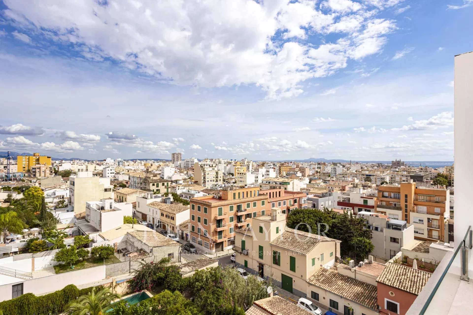 Dieses exklusive Duplex-Penthouse mit geräumiger Dachterrasse befindet sich im begehrten Viertel Son Espanyolet, nur wenige Minuten vom Zentrum von Palma und Santa Catalina entfernt, und bietet einen atemberaubenden Panoramablick über das Viertel, das Schloss Bellver, die Kathedrale und das Meer. Erhöht über die umliegenden Gebäude, sorgt es für außergewöhnliche Privatsphäre und natürliches Licht den ganzen Tag.