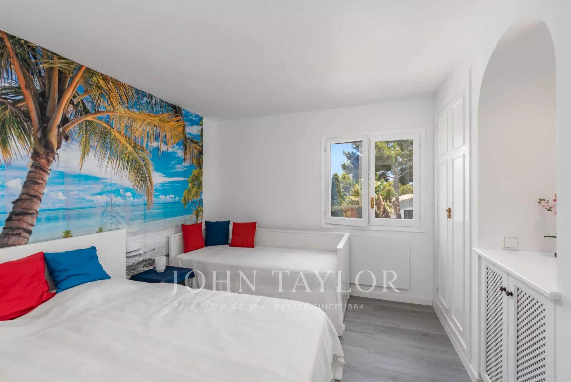 Im Obergeschoss des Penthouses befinden sich zwei weitere Doppelschlafzimmer und ein weiteres gemütliches Bad. Das Hauptschlafzimmer mit seiner überdachten Terrasse lädt dazu ein, den Tag stilvoll ausklingen zu lassen und den Meerblick zu genießen. Weitere Merkmale der Immobilie sind der Parkett-/Vinylboden, Moskitonetze an allen Fenstern, Bäder mit Fenstern und Infrarotheizung, der holzbefeuerte Kamin, Miele- und Bosch-Geräte, Klimaanlagen in den Schlafzimmern und Einbauschränke. Von der Immobilie aus sind es nur 10 Minuten zu Fuß zu den schönen Stränden und dem lebhaften Boulevard mit seinen zahlreichen Geschäften und Restaurants. Die gepflegte Anlage bietet ihren Bewohnern einen üppigen Gemeinschaftsgarten, einen erfrischenden Swimmingpool mit gesundheitsfördernder Ausstattung und eine Sonnenterrasse, die zum Verweilen und Entspannen einlädt. Darüber hinaus gibt es Gemeinschaftsparkplätze innerhalb der Anlage, die ein Maximum an Komfort und Sicherheit bieten. Bitte zögern Sie nicht, uns für einen Besichtigungstermin zu kontaktieren.