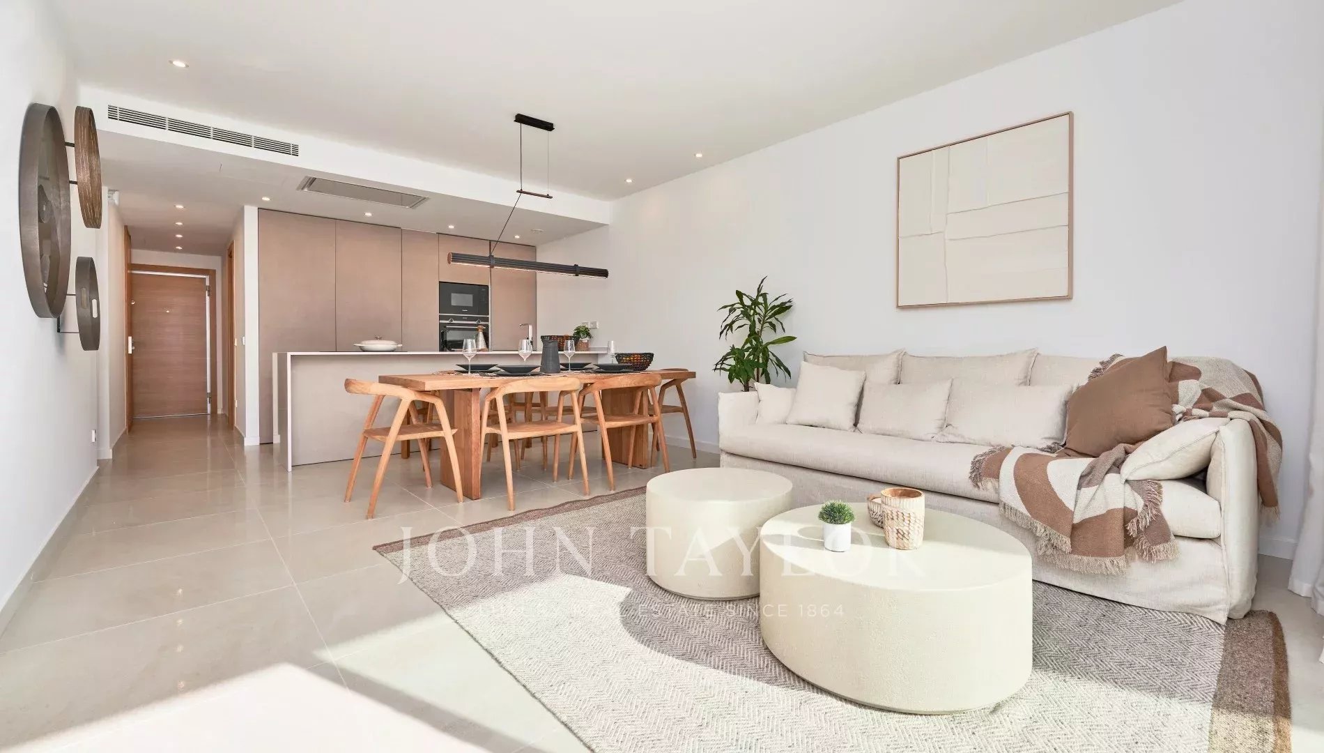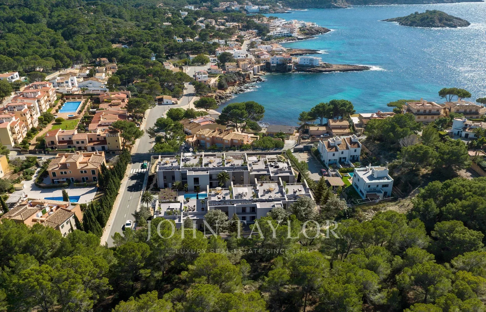 Diese neu errichtete Wohnung ist Teil einer exklusiven Gemeinschaft von 20 Einheiten in dem malerischen Dorf Sant Elm im Südwesten Mallorcas in der Nähe des berühmten Port d'Andratx. Diese nach Südosten ausgerichtete Anlage, die im Sommer 2026 fertiggestellt wird, liegt nur 100 Meter vom Strand entfernt und bietet 2 Swimmingpools, einen davon speziell für Kinder. Sowohl der private Garten als auch die großzügigen Terrassen und die Gemeinschaftsgärten bieten die Möglichkeit, das mediterrane Klima zu genießen.