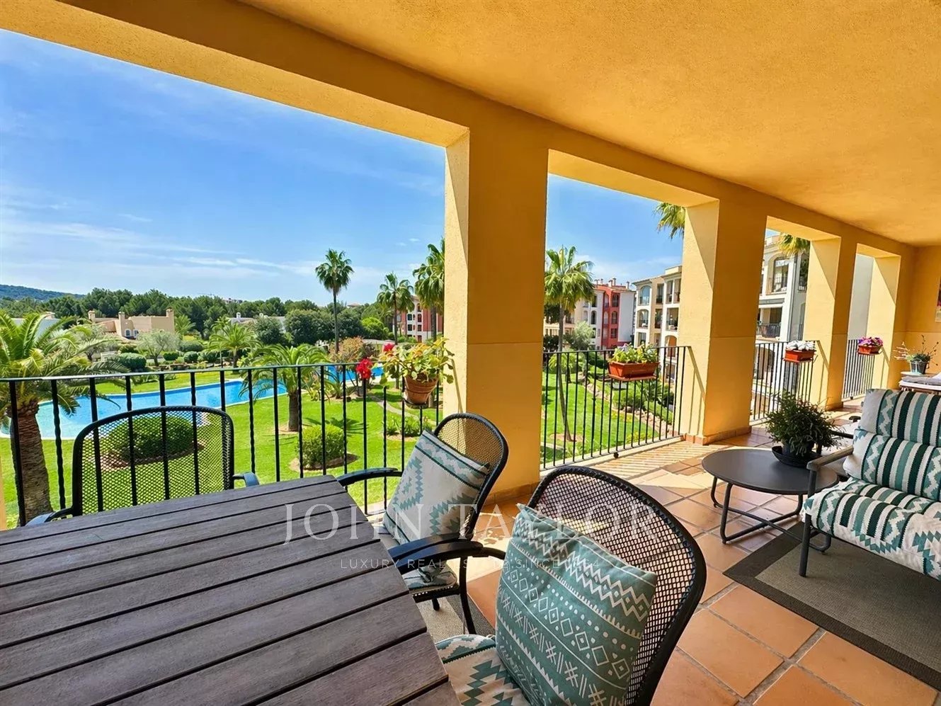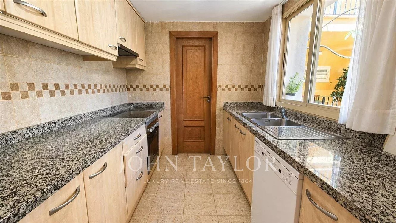 Leben in Nova Santa Ponsa bedeutet vor allem, die Ruhe zu genießen, ohne auf Exklusivität zu verzichten. Für diejenigen, die eine Eigentumswohnung in perfektem Zustand und mit privilegierter Lage suchen, stellt diese Wohnung eine außergewöhnliche Gelegenheit dar. Sie liegt am Rande des Golfplatzes und nur eine kurze Entfernung sowohl von Port Adriano als auch vom Strand entfernt. Dieses Komplex ist ein Vorreiter des Wohlbefindens in der Gegend. Gebaut im Jahr 2006, zeichnet sich die Gemeinschaft durch ihre tadellose Wartung aus; das bezeugen ihre Fassaden, die 2025 vollständig renoviert wurden und eine makellose Ästhetik gewährleisten. Die Immobilie befindet sich im zweiten Stock mit südlicher Ausrichtung, was es ermöglicht, dass natürliches Licht jeden Winkel durchflutet. Zweifellos ist ihr Herzstück die große 33 m² überdachte Terrasse, die perfekte Kulisse, um das mediterrane Klima das ganze Jahr über zu genießen. Im Inneren wurde der Raum mit großem Geschick verteilt. Die Wohnung verfügt über ein großzügiges Wohnzimmer, das mit einer voll ausgestatteten Küche mit eigenem Waschraum verbunden ist. Der Ruhebereich bietet zwei Schlafzimmer, eines davon en suite, zwei vollständige Bäder — das Hauptbad mit Dusche und Badewanne ausgestattet — und ein Gäste-WC. Die Bauqualität zeigt sich in jedem Detail: Marmorböden, die Frische verleihen, Kühlung/Heizung, doppelte Verglasung und der Komfort eines Aufzugs, der den Zugang zur Wohnung ermöglicht. Außerdem verfügt sie über einen großen Parkplatz in der Tiefgarage und einen praktischen Abstellraum. Es ist letztlich eine schlüsselfertige Immobilie, ideal sowohl für diejenigen, die ihren ständigen Wohnsitz auf Mallorca einrichten möchten, als auch für diejenigen, die eine hochwertige Zuflucht an einem hervorragenden Ort suchen. John Taylor steht Ihnen jederzeit zur Verfügung, um eine Besichtigung zu vereinbaren und diese Immobilie kennenzulernen.