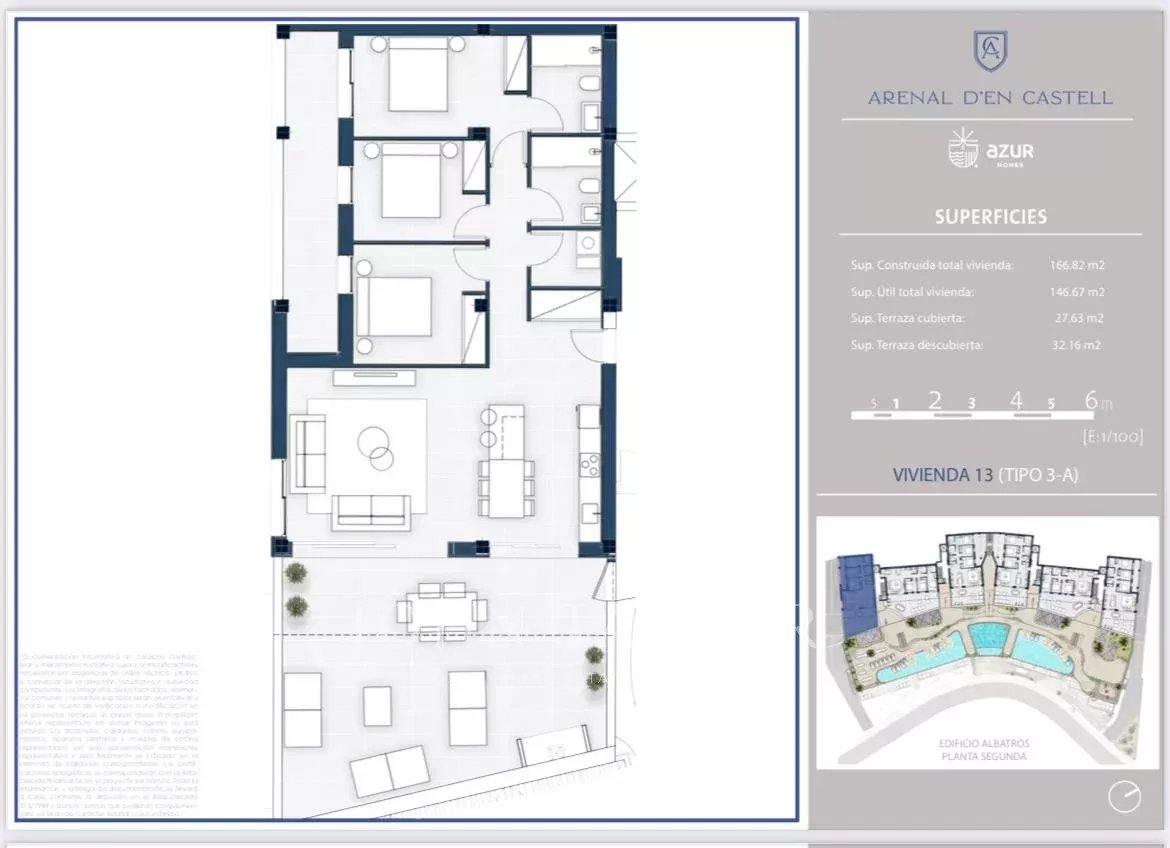 Wenn Sie auf der Suche nach einem atemberaubenden Meerblick und einer modernen und luxuriösen Wohnung sind, könnte diese Immobilie eine einmalige Gelegenheit sein. Hier wohnen Sie nur 200 Meter vom Strand von S'Arenal d'en Castell entfernt, mit allen Annehmlichkeiten, die Sie für Ihr ganzjähriges Wohlbefinden benötigen. Sie finden hier Wohnungen mit 1, 2 oder 3 Schlafzimmern und geräumigen Terrassen, die zwischen 100 und 260 Quadratmetern groß sind. Die Wohnräume sind großzügig und sehr hell, so dass Sie von Ihrem Sofa aus die herrliche Umgebung genießen können. Nach dem Genießen der Innenräume haben Sie Zugang zu den Gemeinschaftsbereichen, zu denen ein Kinderspielplatz, ein Coworking Space, ein Schwimmbad, ein Fitnessstudio und ein Spa gehören. Die Immobilie verfügt über einen Parkplatz und einen Abstellraum.