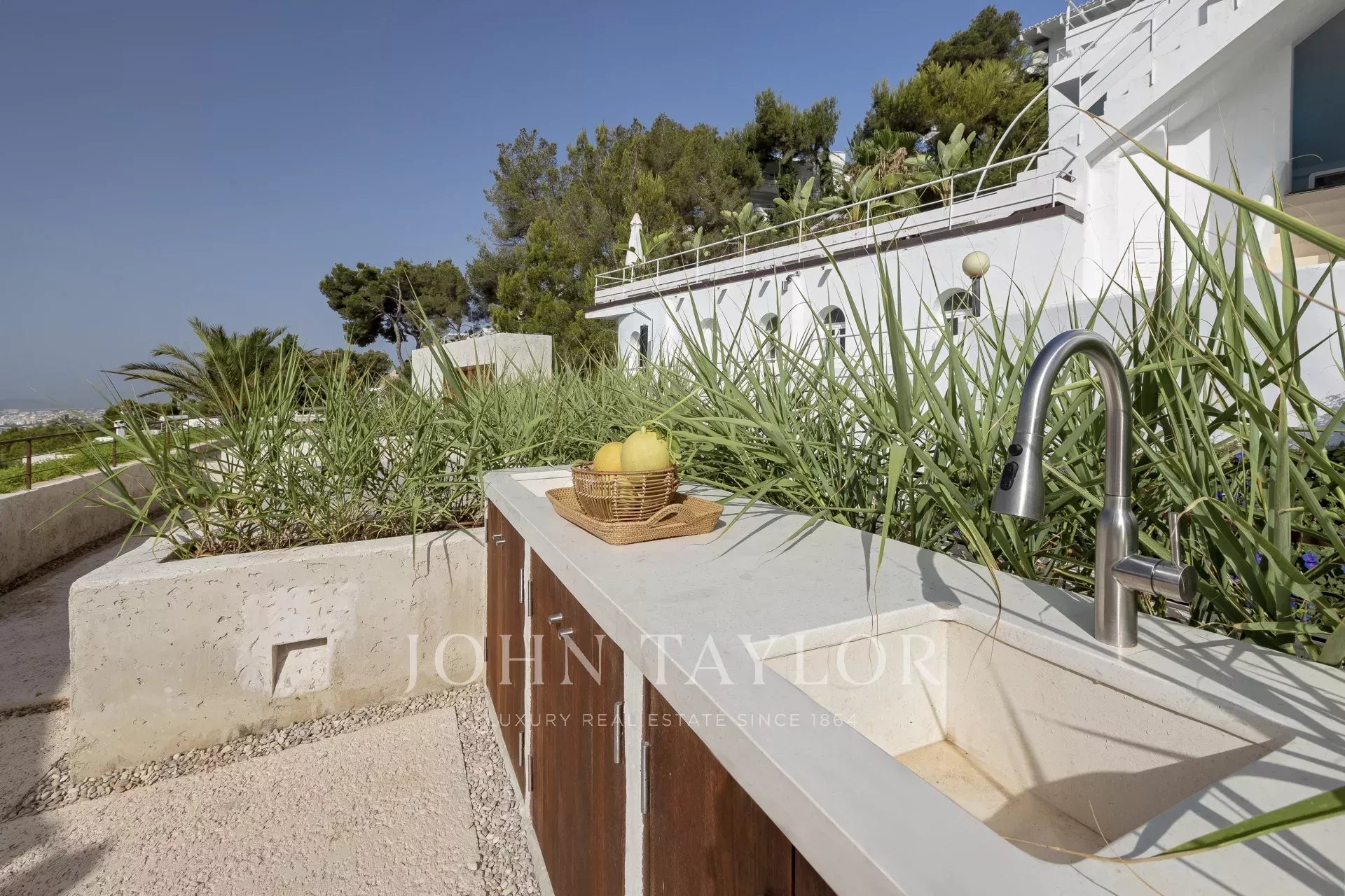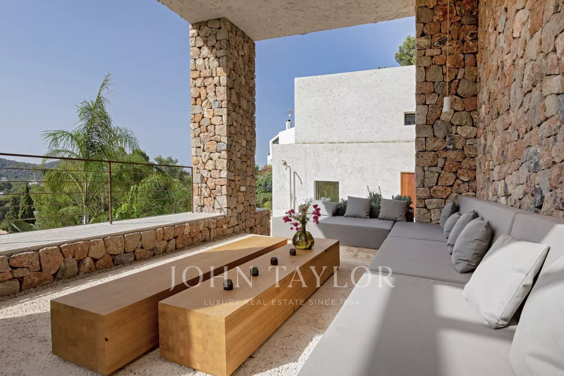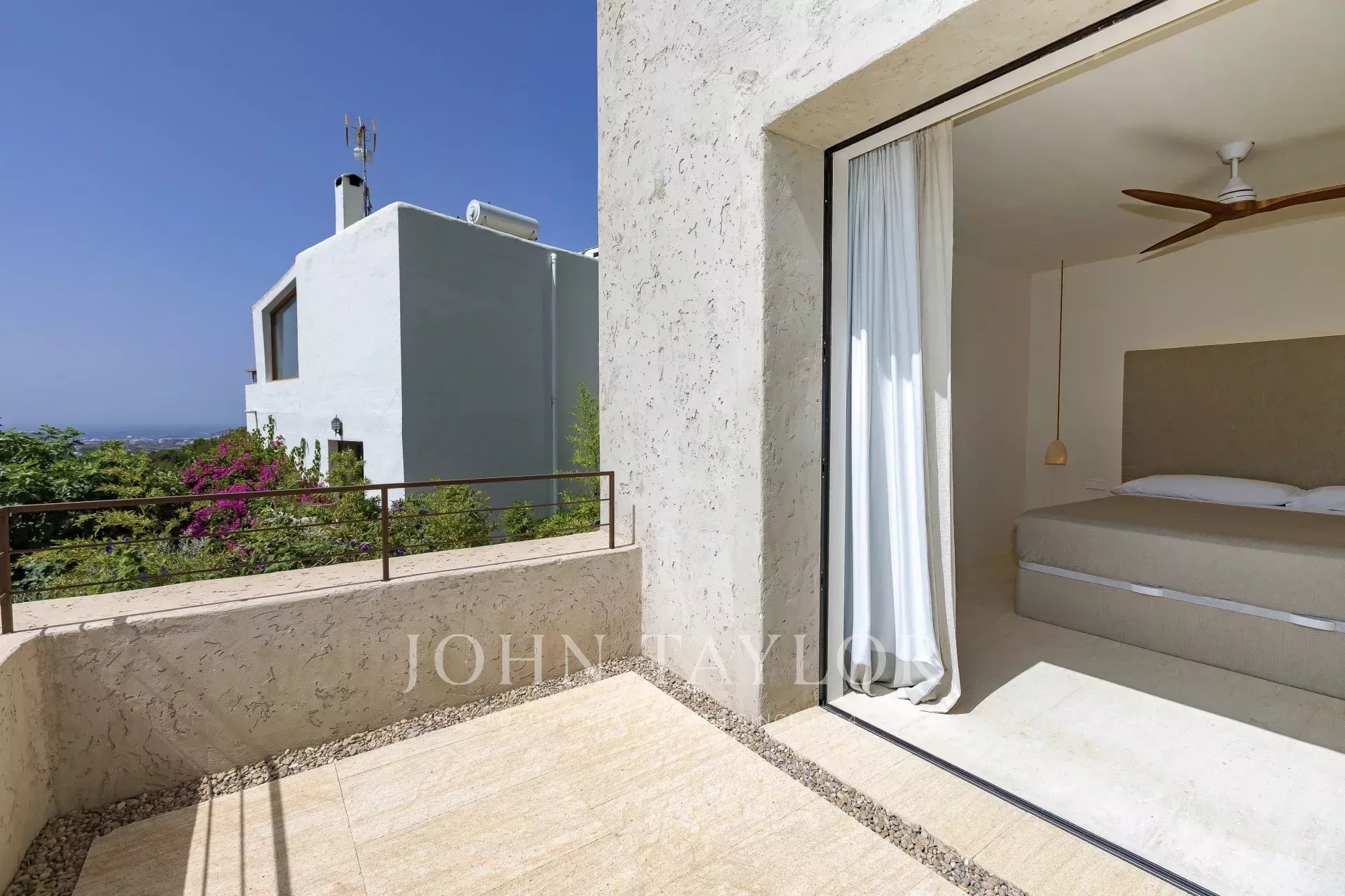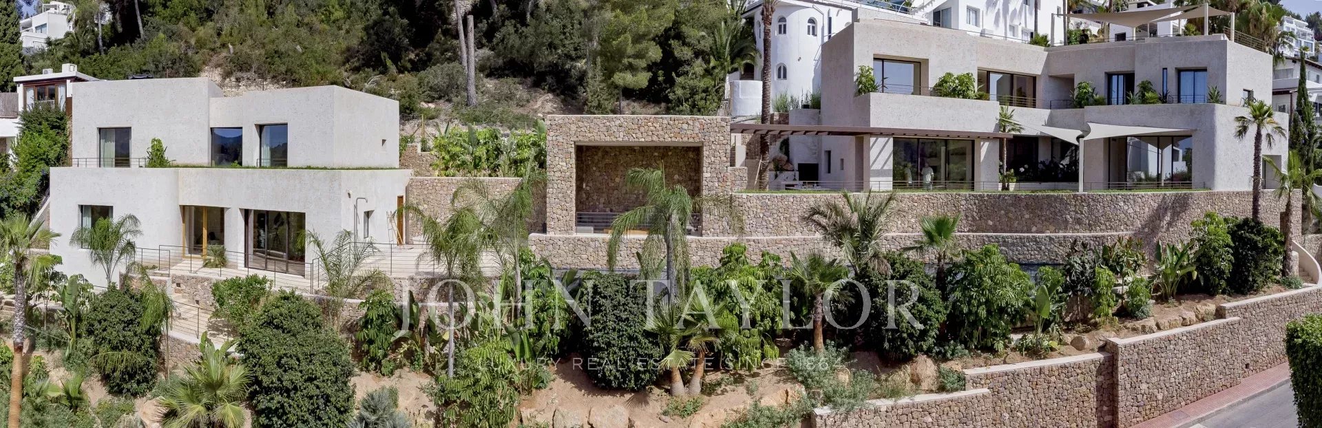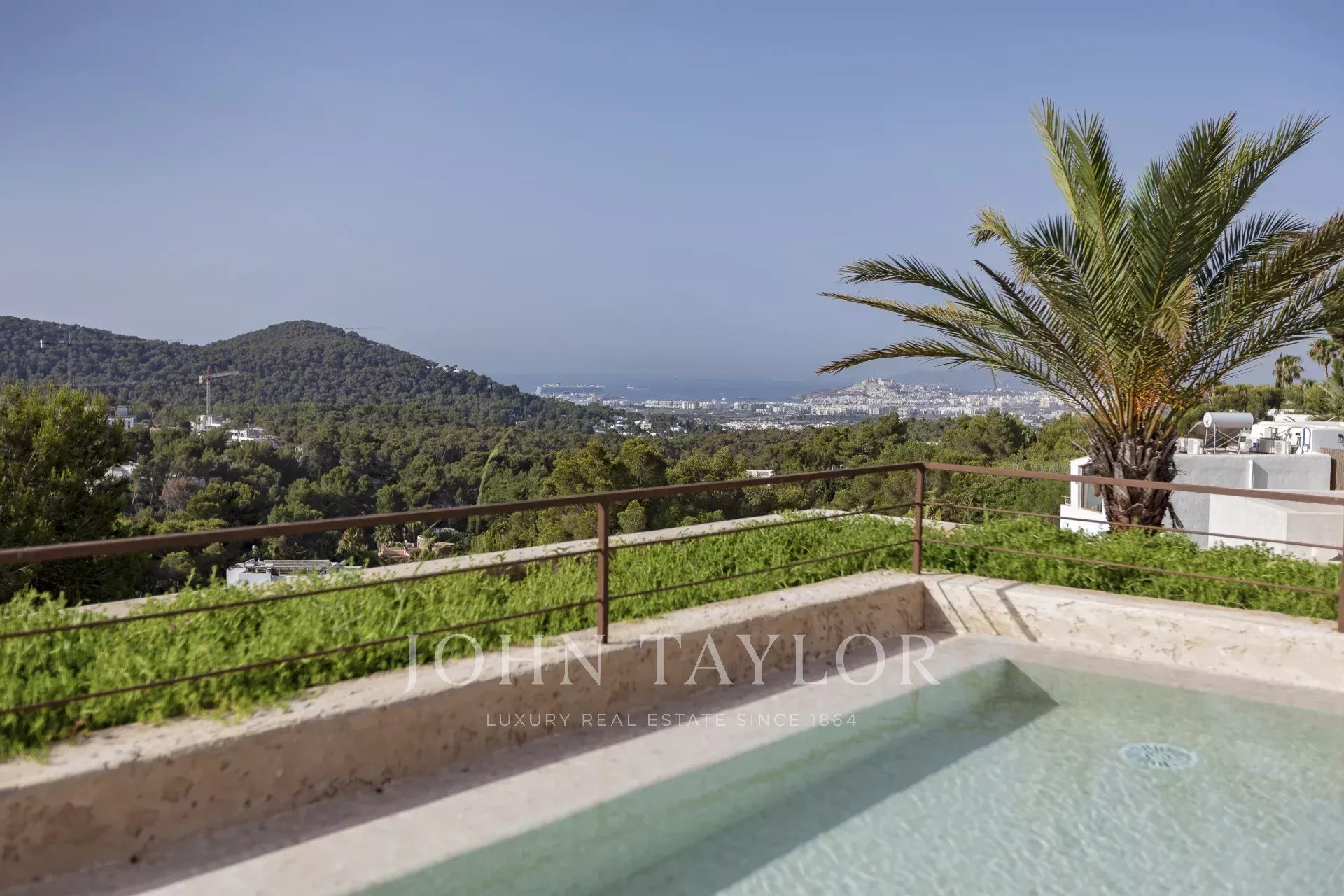 Das ganze Haus mit Blick auf Ibiza und das Mittelmeer, mit einer sehr mediterranen Architektur und seine Pflanzen im Schwimmbad machen dieses Haus einzigartig in der Gegend.