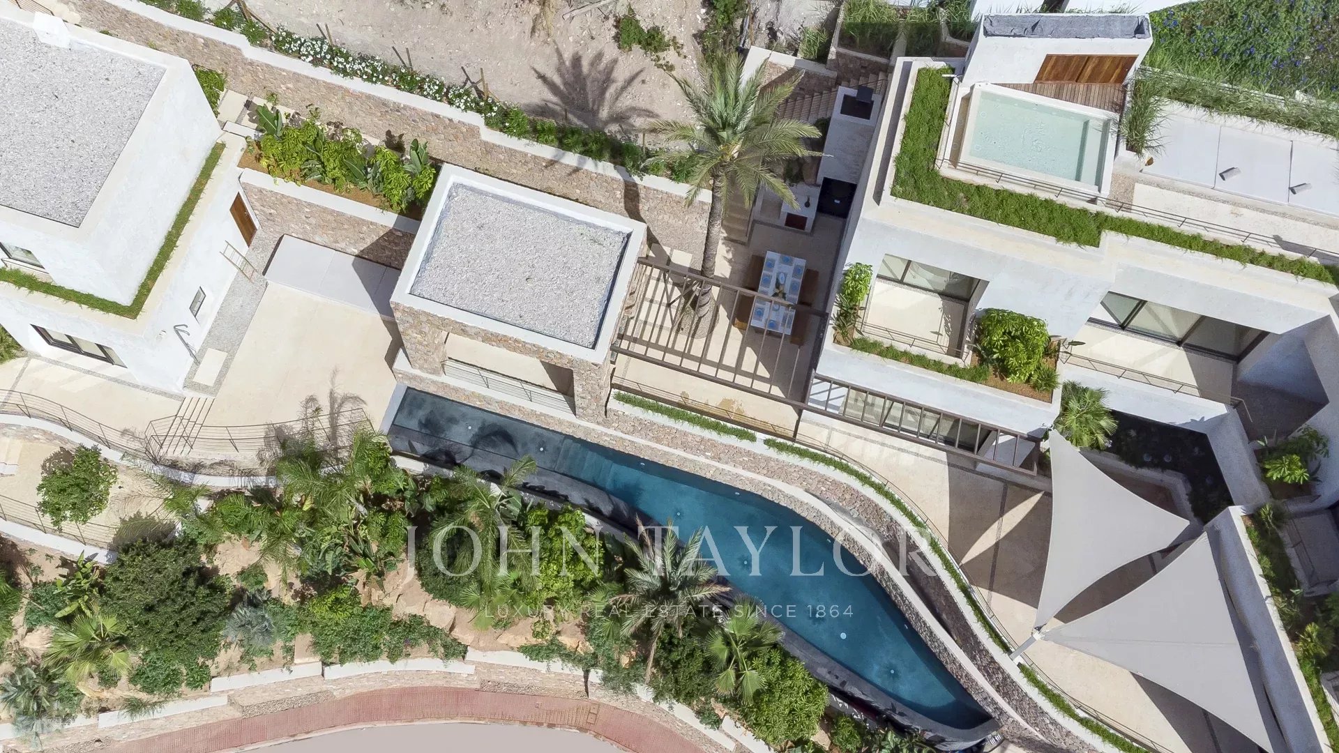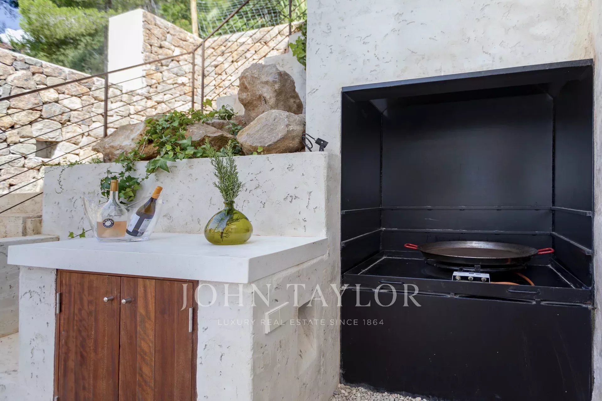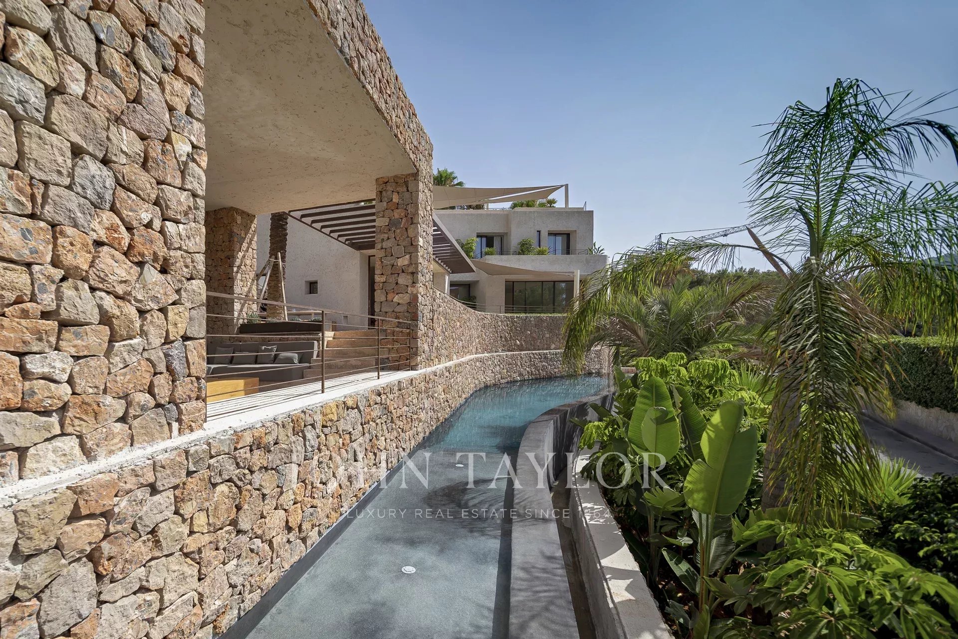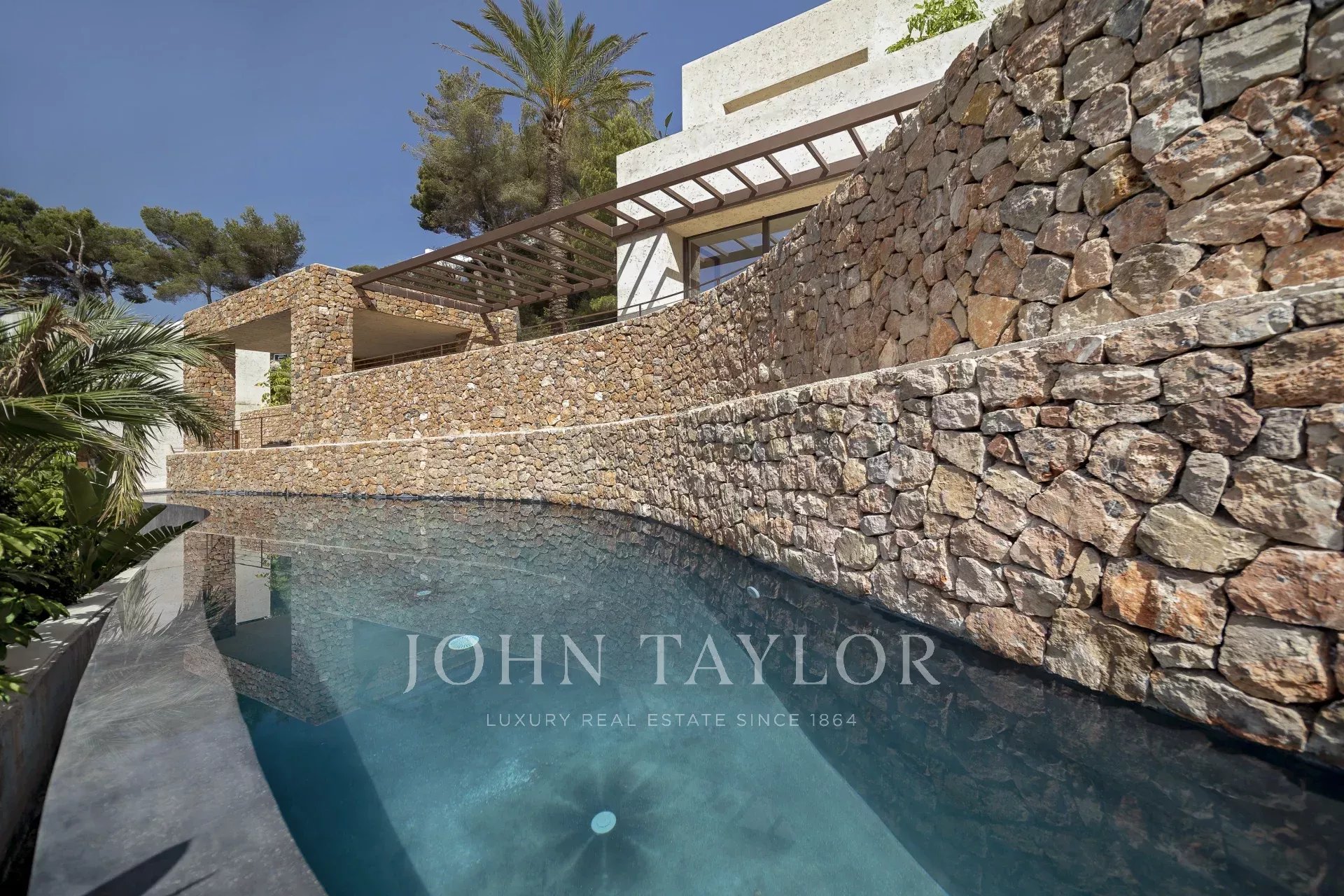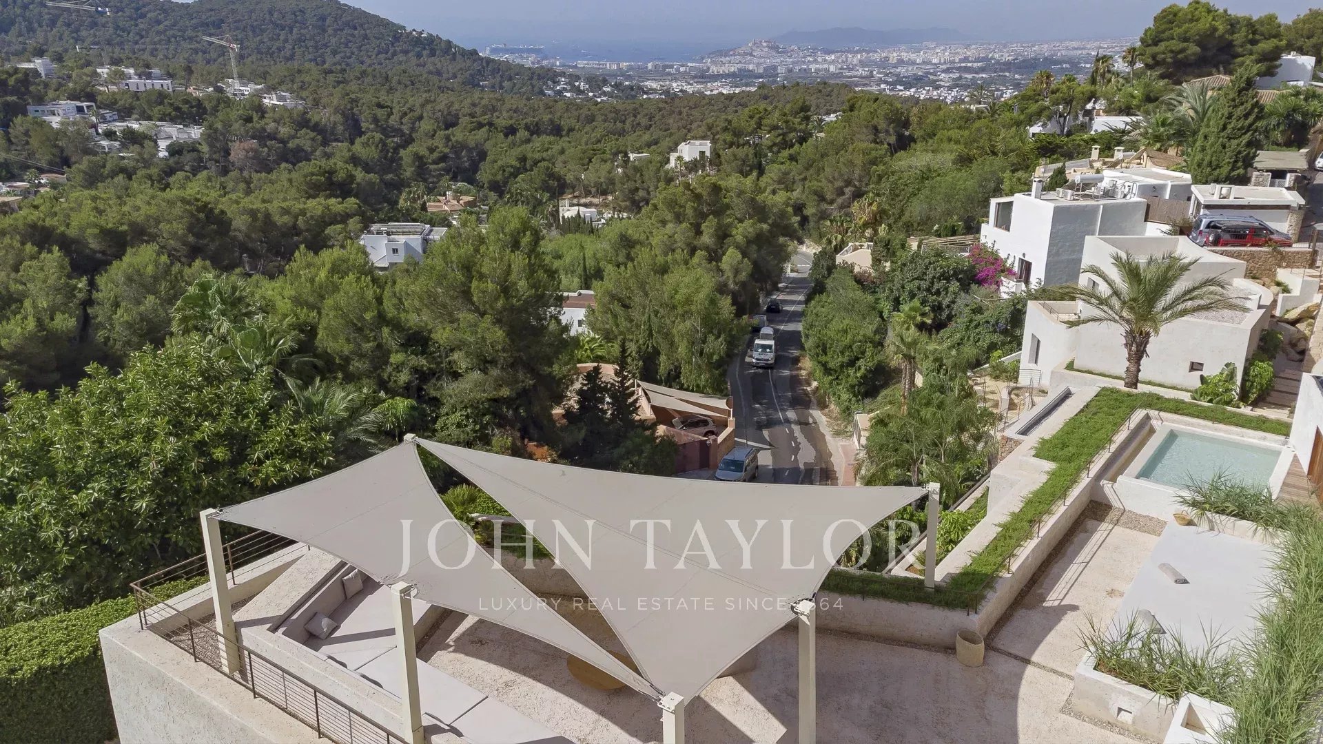 Das ganze Haus mit Blick auf Ibiza und das Mittelmeer, mit einer sehr mediterranen Architektur und seine Pflanzen im Schwimmbad machen dieses Haus einzigartig in der Gegend.