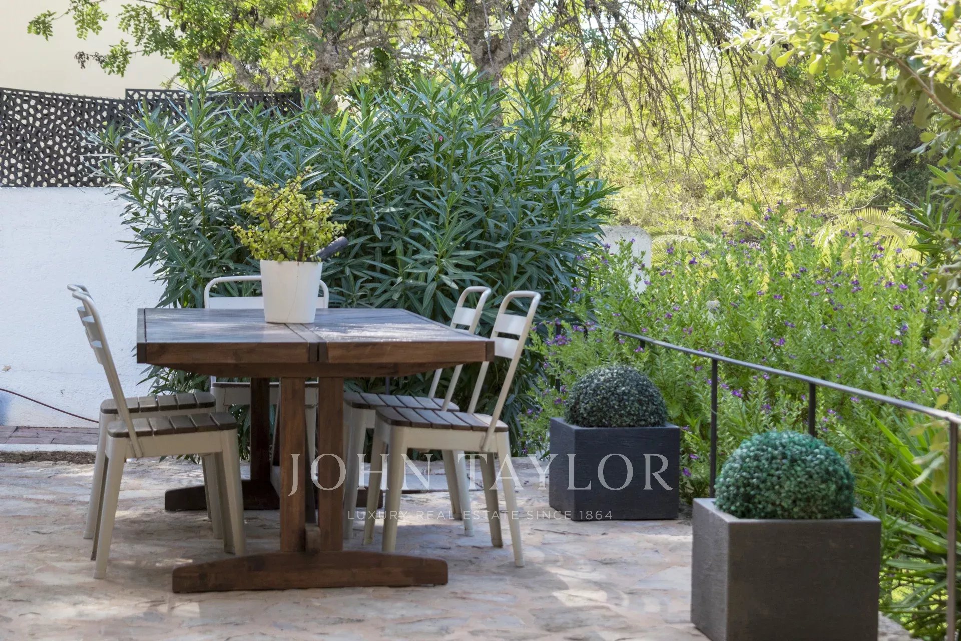 Die Hauptvilla mit 340 m² empfängt Sie mit einem hellen Wohnzimmer mit beeindruckendem Kamin und großen Fenstern, die auf die gepflegten Gärten hinausführen. Die kürzlich renovierte Küche verbindet Stil und Funktionalität, mit einem großzügigen Essbereich und direktem Zugang zu einer großen Terrasse mit Grill – ideal für Unterhaltung im Freien. Im Erdgeschoss gibt es eine großzügige Suite mit eigenem Bad und Arbeitsbereich, leicht in eine Gästesuite umwandelbar, sowie zwei weitere Schlafzimmer mit gemeinsamem Bad, eine Waschküche und ein Gäste-WC. Im Obergeschoss bietet die Master-Suite begehbaren Kleiderschrank, eigenes Bad und eine große Terrasse mit beeindruckendem Bergblick. Jede Ecke ist für ein ganzjähriges Wohnen konzipiert, inklusive Fußbodenheizung und Doppelverglasung. Verschiedene Terrassen und Chill-out-Bereiche führen zum bezaubernden Poolbereich, umgeben von üppiger mediterraner Landschaft, die absolute Privatsphäre garantiert.