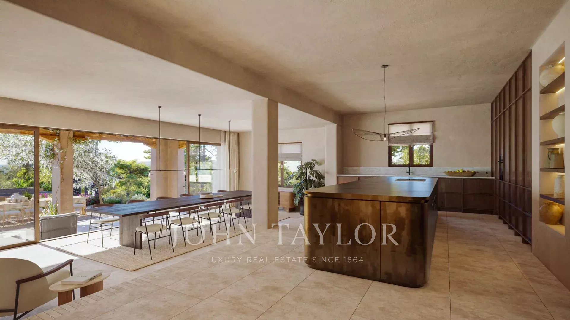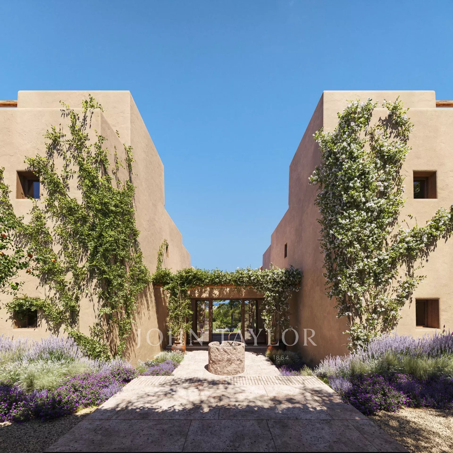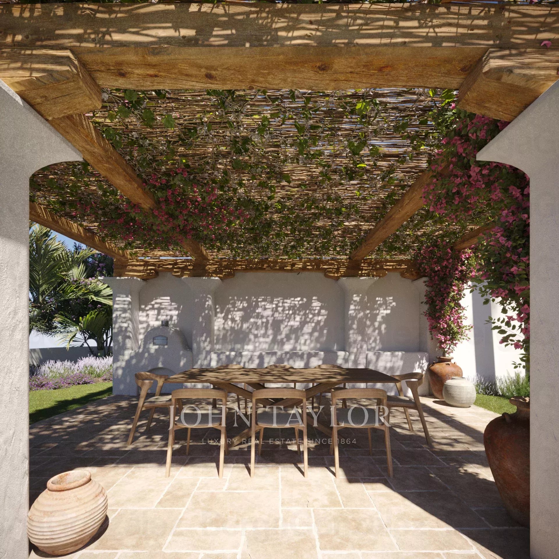 Diese Residenz im prestigeträchtigen Viertel Cap Martinet auf Ibiza ist ein Symbol für Luxus und Raffinesse. Entworfen vom renommierten Blakstad Studio, kombiniert sie traditionelle ibizenkische Architektur mit modernen Elementen und bietet einen atemberaubenden Meerblick von einem 1450 m² großen Grundstück.
