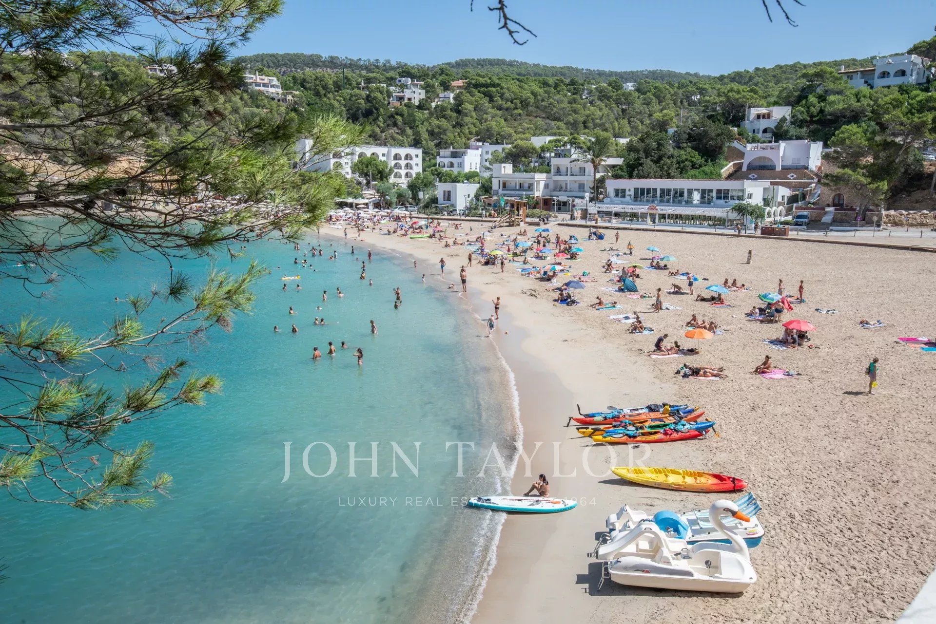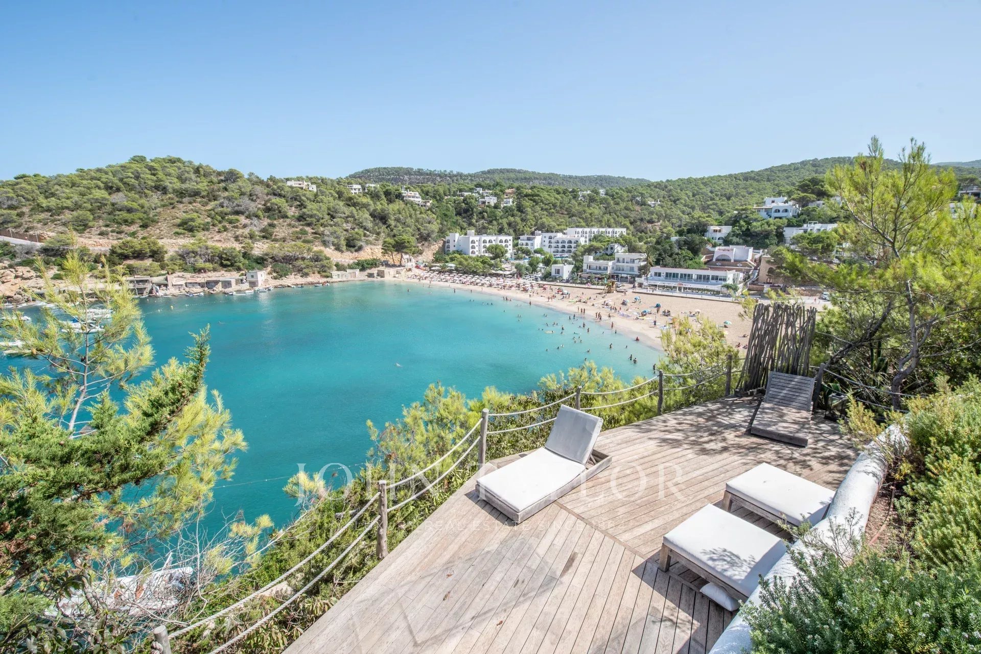 Entdecken Sie diese spektakuläre mediterrane Villa, die sich direkt am Strand von Cala Vadella an der begehrten Westküste Ibizas befindet. Mit atemberaubendem Panoramablick auf das Meer und einem privaten Treppenaufgang mit direktem Zugang zum Strand bietet diese Immobilie eine perfekte Kombination aus Luxus und Ruhe.