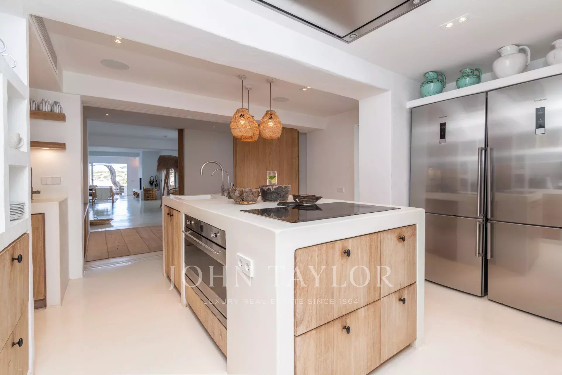 Diese einzigartige Villa kombiniert traditionellen mediterranen Charme mit modernem Luxus und bietet ein unvergleichliches Lebensgefühl an der Westküste Ibizas.