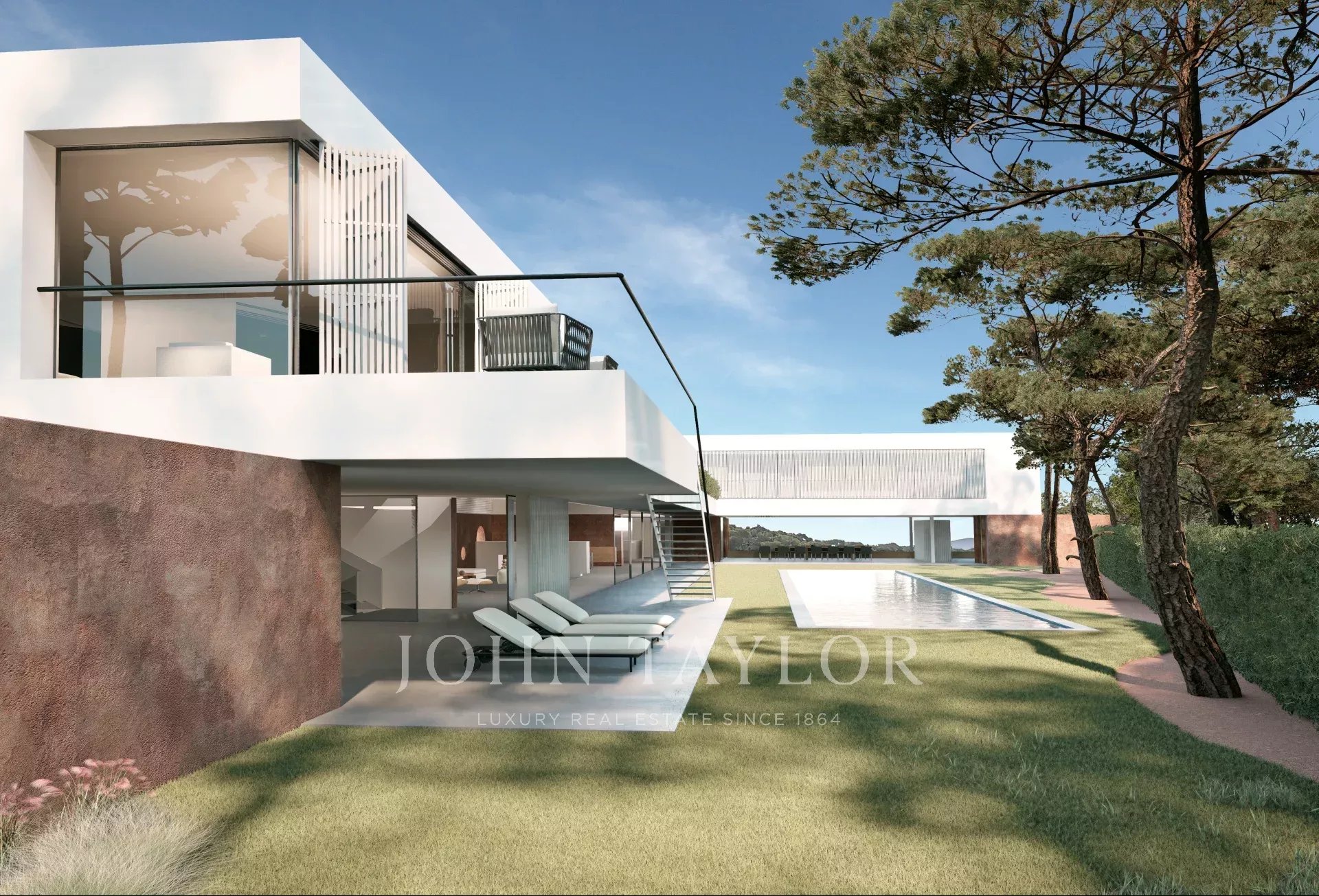 Die erste Etage ist vollständig den Schlafzimmersuiten gewidmet. In der aktuellen Planung bietet das Projekt bis zu acht Schlafzimmer mit eigenem Bad. Während der Bauphase kann die Aufteilung jedoch angepasst werden, um sieben oder sogar sechs größere Suiten zu schaffen, sodass der zukünftige Eigentümer außergewöhnliche Master-Suiten nach seinen Wünschen gestalten kann.