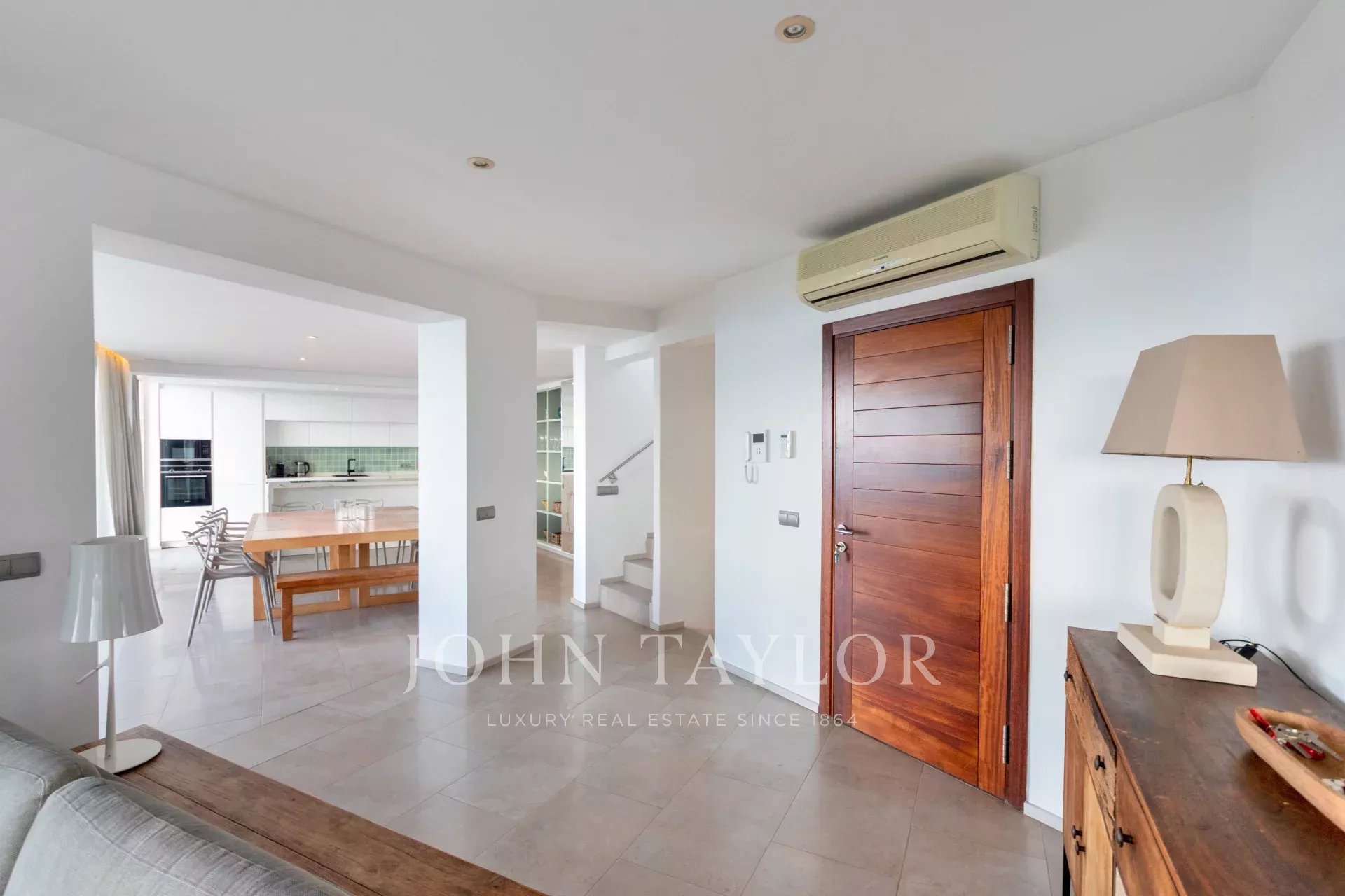 Die Villa verfügt über sechs geräumige Schlafzimmer, jedes mit eigenem Bad und hochwertigen Oberflächen, die eine intime und luxuriöse Atmosphäre schaffen. Auf der Gästeterrasse gibt es eine großzügige Terrasse, einen perfekt positionierten Pool und eine überdachte Außenküche, die das mediterrane Lebensgefühl verkörpern.
