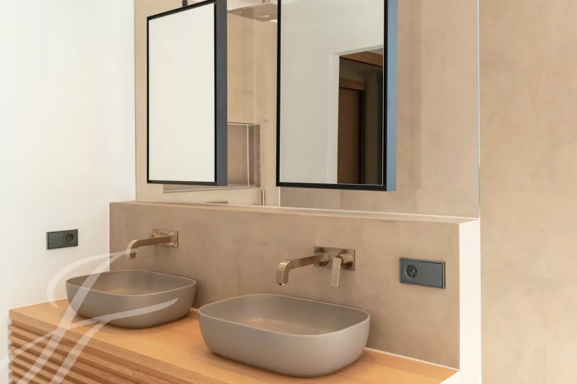 Das durchdachte Design und die Liebe zum Detail zeigen sich in jedem Aspekt der Villa, von den hochwertigen Materialien bis hin zu den tadellosen Oberflächen, die sich über vier Ebenen verteilen. Die fünf Schlafzimmer, jedes mit eigenem Bad, garantieren Komfort und Privatsphäre für alle Gäste.