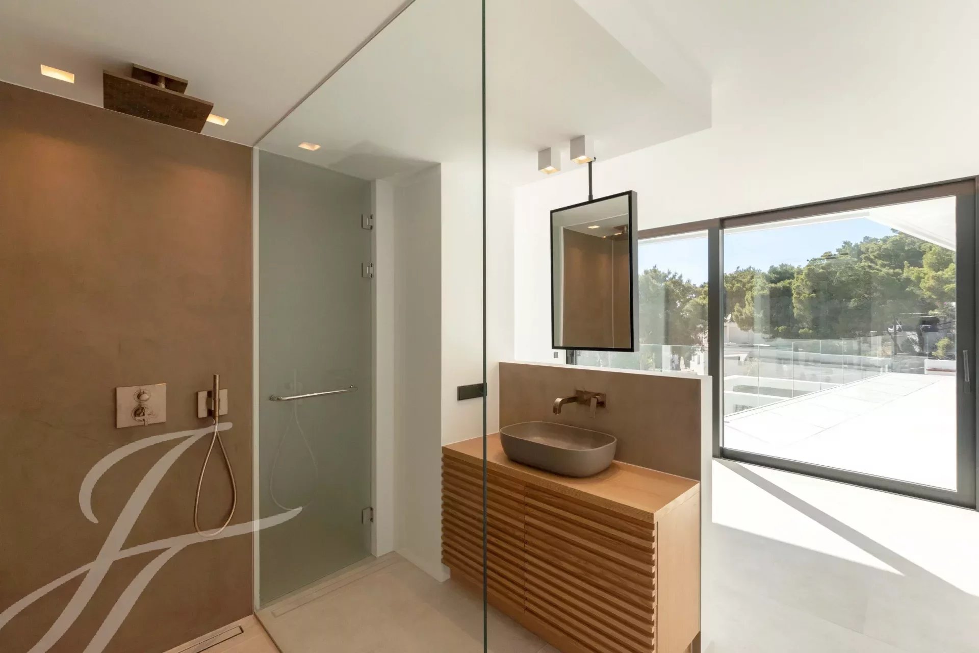 Wunderschönes, neu gebautes Luxushaus von atemberaubender Schönheit. Seine Nähe zu Cala Salada, einem der schönsten Strände Ibizas, macht es zu einem beneidenswerten Ort.