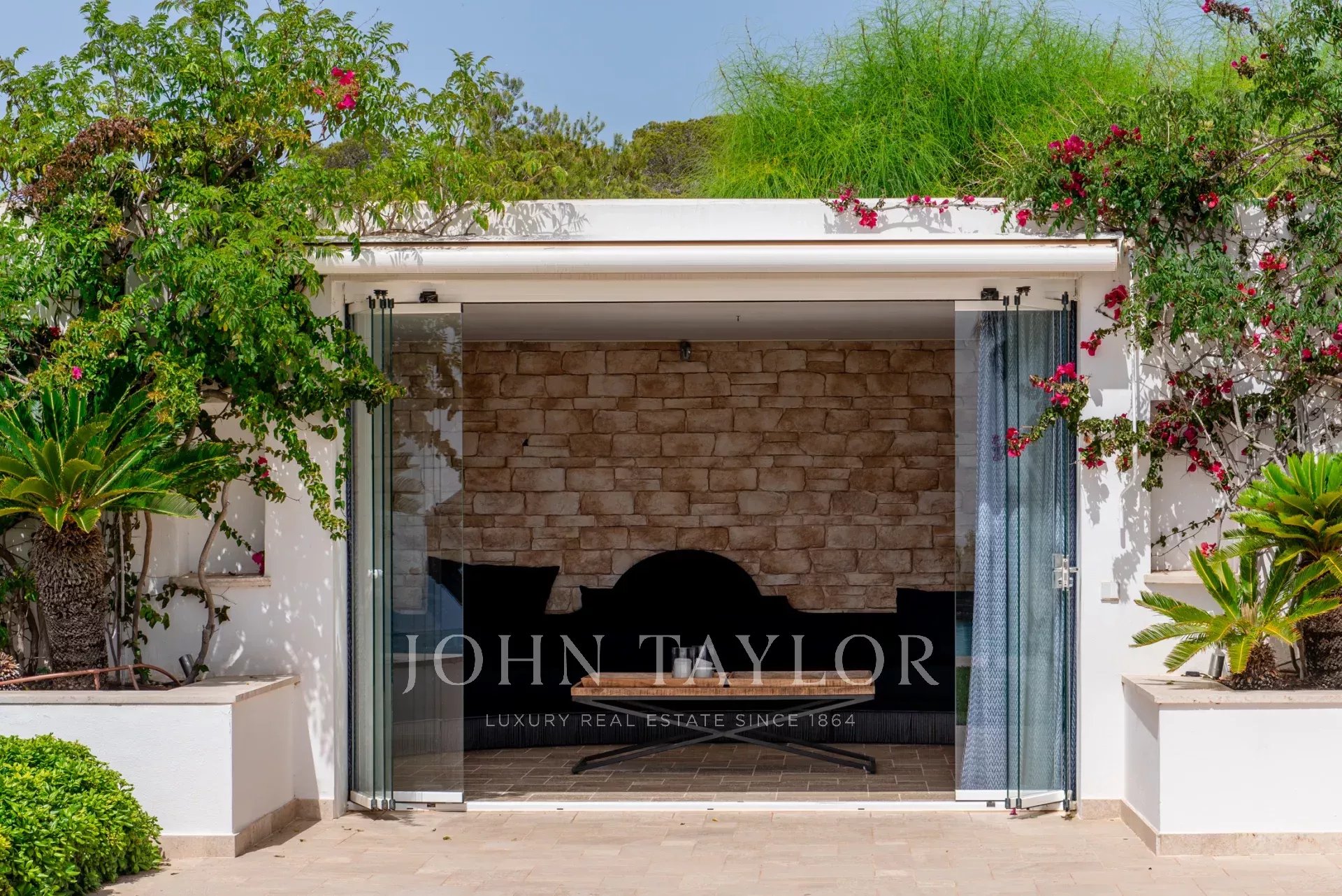 Der Außenbereich beeindruckt mit einem Infinity-Pool mit Meerblick, einem zweiten Pool inmitten von Gärten, Terrassen, einem voll ausgestatteten Fitnessstudio und einem beheizten Innenpool. Zudem gibt es einen italienischen Pizzaofen, einen professionellen Grill, ein maßgefertigtes Baumhaus und einen Bio-Garten
