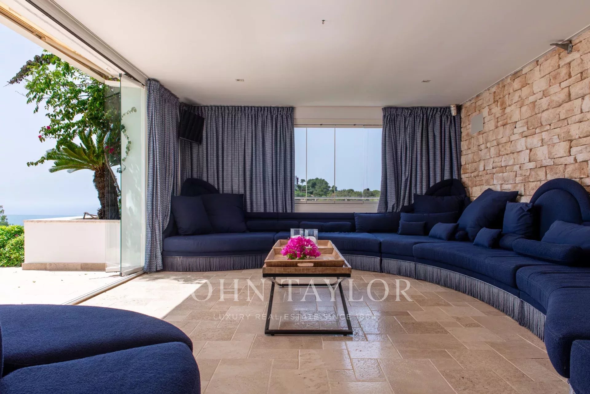 In einer der exklusivsten Gegenden im Südosten Ibizas gelegen, vereint dieses Luxusobjekt Privatsphäre, zeitgenössisches Design und einen atemberaubenden Blick auf das Mittelmeer. Mit über 1.300 m2 bebauter Fläche auf einem 6.000 m2 großen, landschaftlich gestalteten Grundstück bietet es eine privilegierte Umgebung, umgeben von Pinienwäldern