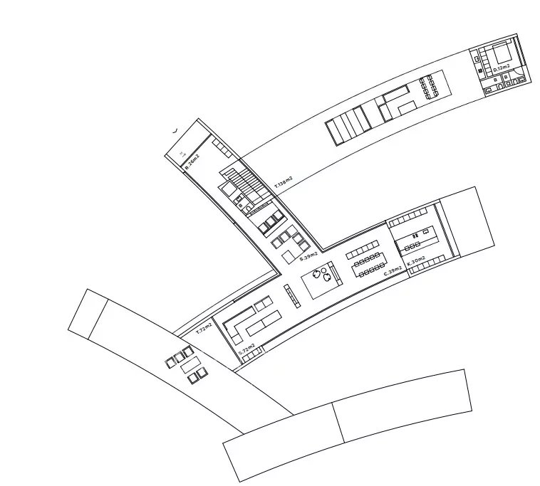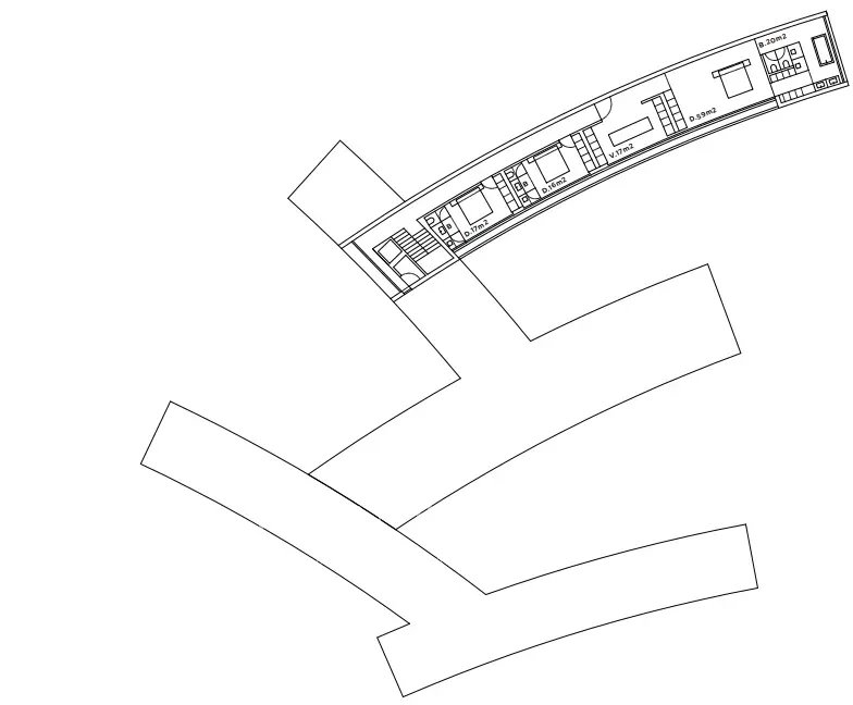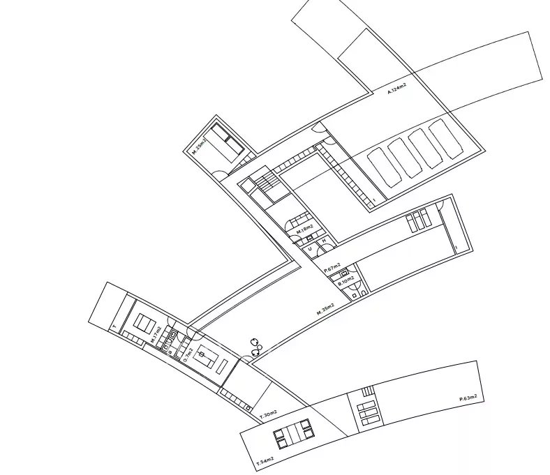 Die Zugänge für Fahrzeuge und Benutzer sowie die Terrassen und Schwimmbäder dieser Komposition folgen der Kontinuität der Zeichnungen, die die Architektur selbst bietet. Diese kontemplativen Spaziergänge sind diejenigen, die den Benutzer auf die Architektur und ihre äußere Landschaft vorbereiten und mit ihr verbinden.