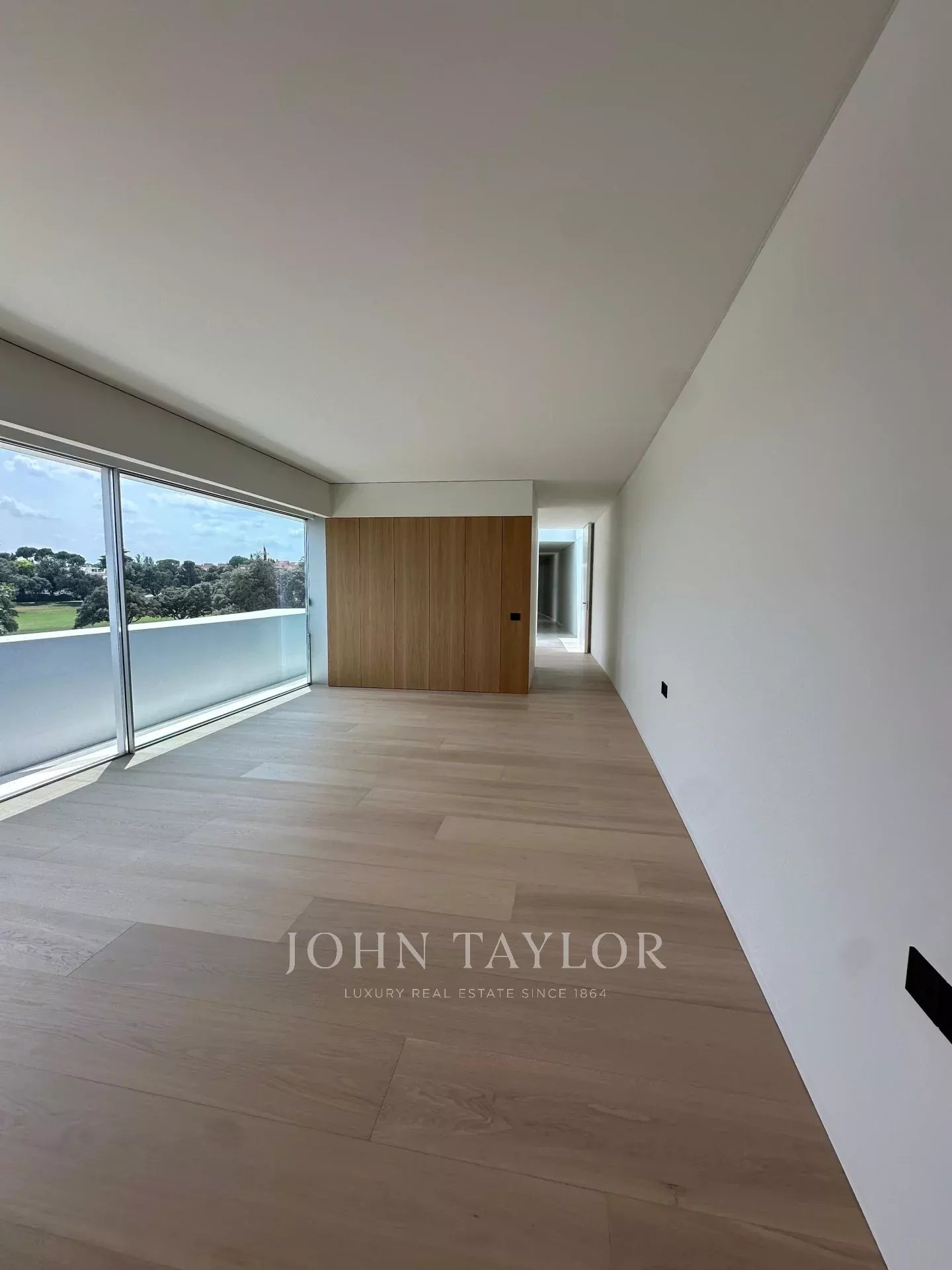 Der Nachtbereich dieser Villa befindet sich in dem massiven Volumen im ersten Stock. Eine Zirkulation entlang des Volumens verbindet die Räume, die durch eine diskrete Längsöffnung einen erhöhten Blick auf das Grundstück haben.