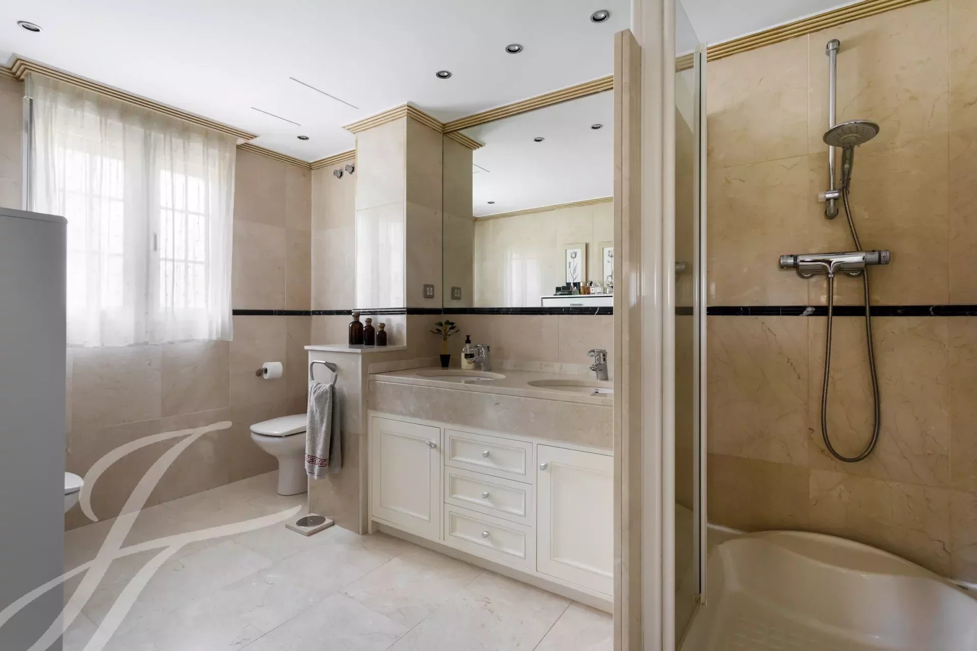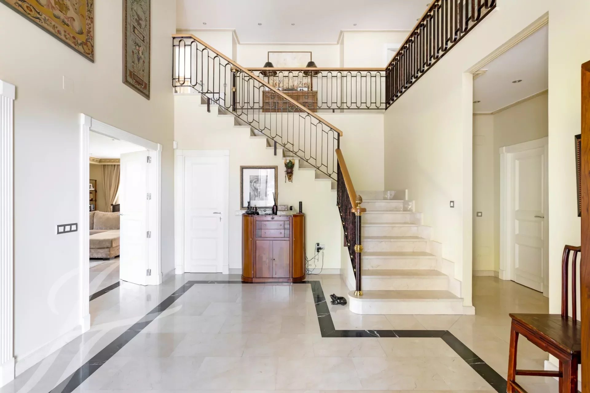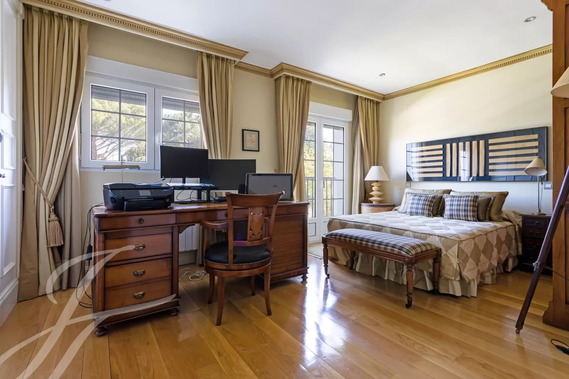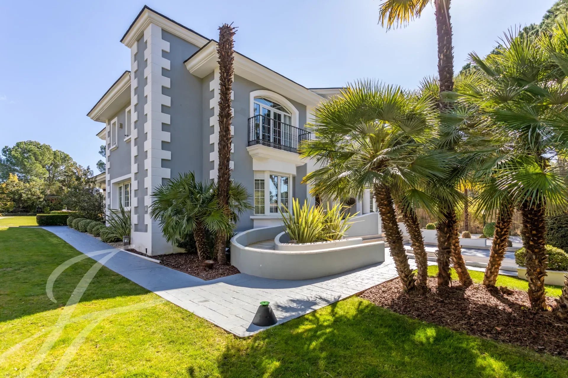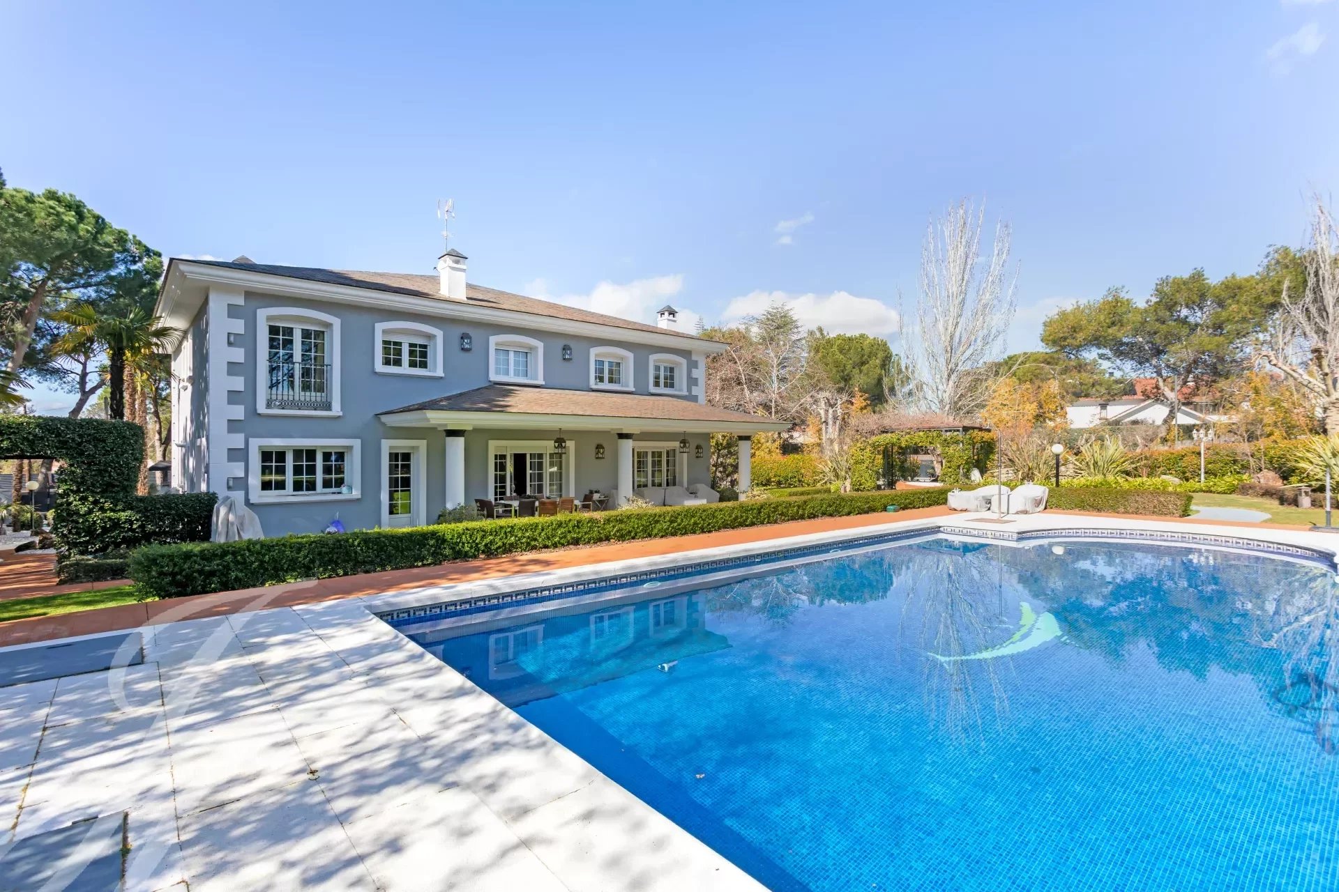 Imposante Villa im klassischen Stil auf einem Grundstück von 2.200m2 mit einer Fläche von 737m2, genießt gepflegte Gärten von einem renommierten Landschaftsgärtner und schönen Swimmingpool entworfen. Magnificent Konstruktion in ausgezeichnetem Zustand, mit hervorragenden Materialien gebaut. Verteilung in zwei Hauptetagen und ein halb Erdgeschoss. Eingang durch eine spektakuläre Halle und Zugang zu jeder Etage durch das majestätische Treppenhaus oder durch den Aufzug. Das Grundstück bietet aufgrund seiner Lage absolute Privatsphäre und Sicherheit.