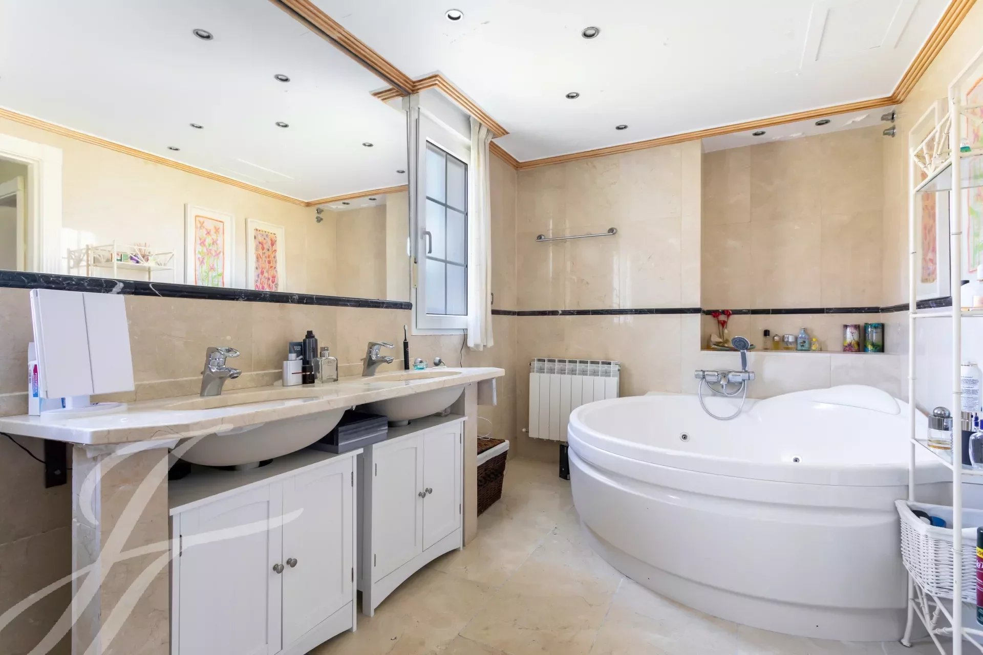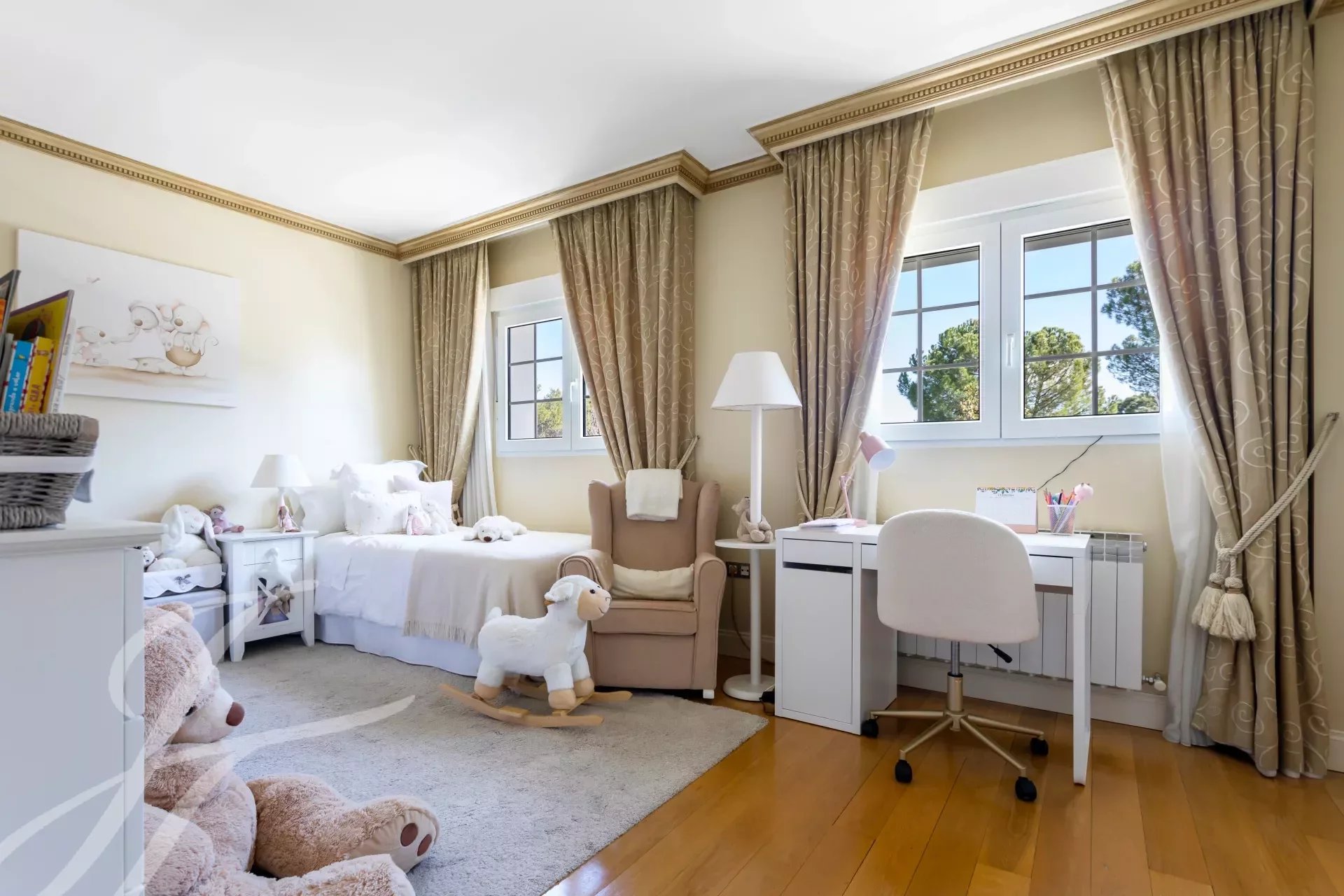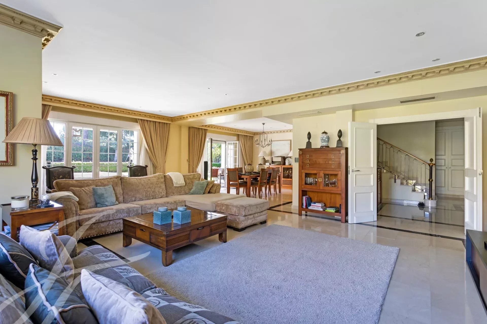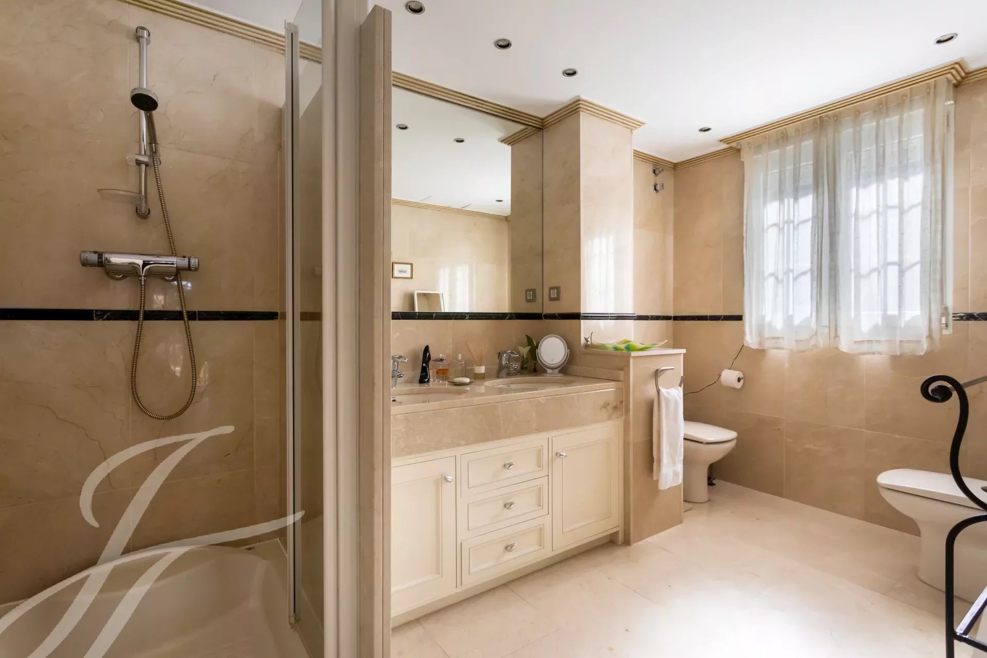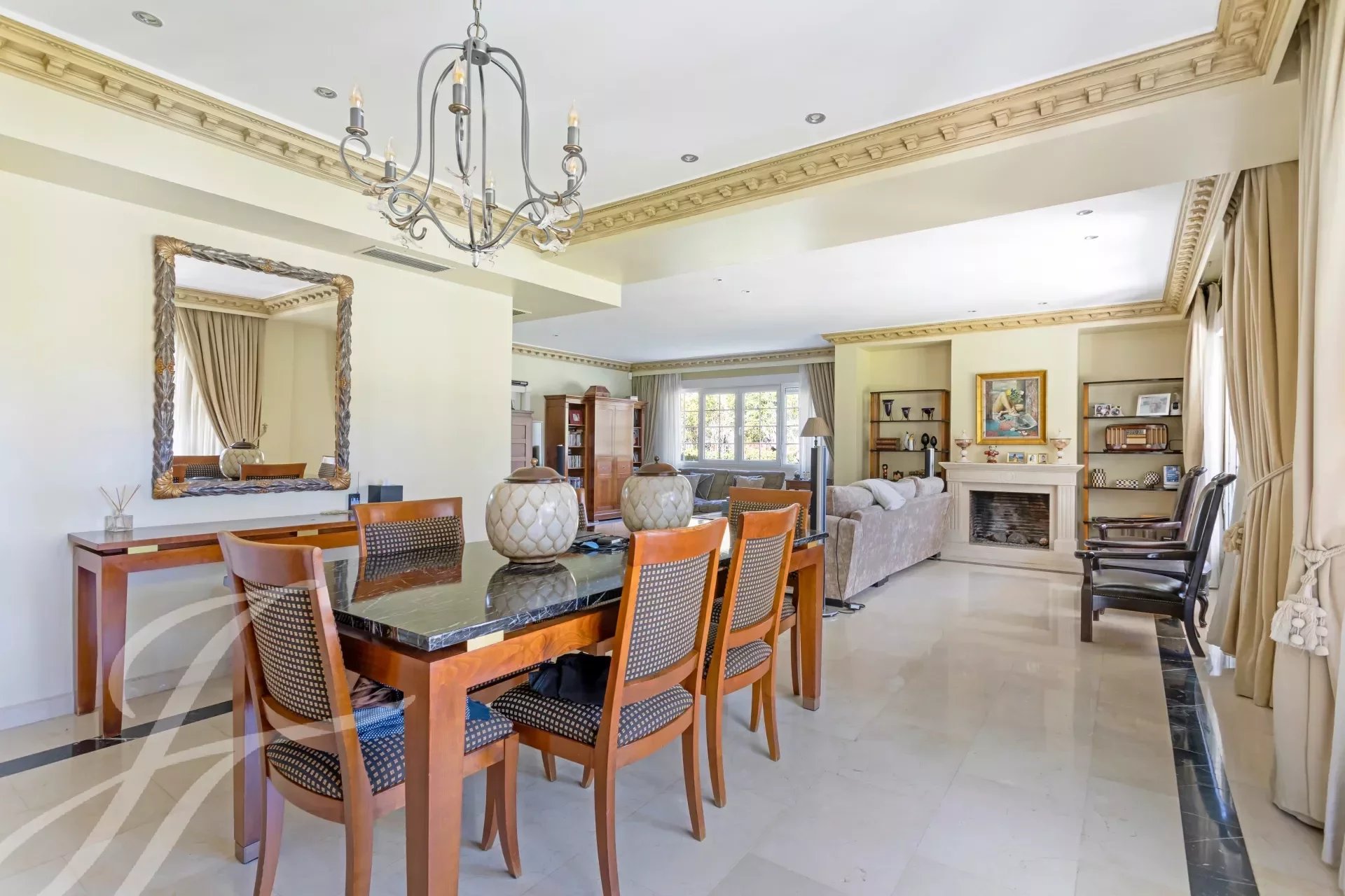 Imposante Villa im klassischen Stil auf einem Grundstück von 2.200m2 mit einer Fläche von 737m2, genießt gepflegte Gärten von einem renommierten Landschaftsgärtner und schönen Swimmingpool entworfen. Magnificent Konstruktion in ausgezeichnetem Zustand, mit hervorragenden Materialien gebaut. Verteilung in zwei Hauptetagen und ein halb Erdgeschoss. Eingang durch eine spektakuläre Halle und Zugang zu jeder Etage durch das majestätische Treppenhaus oder durch den Aufzug. Das Grundstück bietet aufgrund seiner Lage absolute Privatsphäre und Sicherheit.
