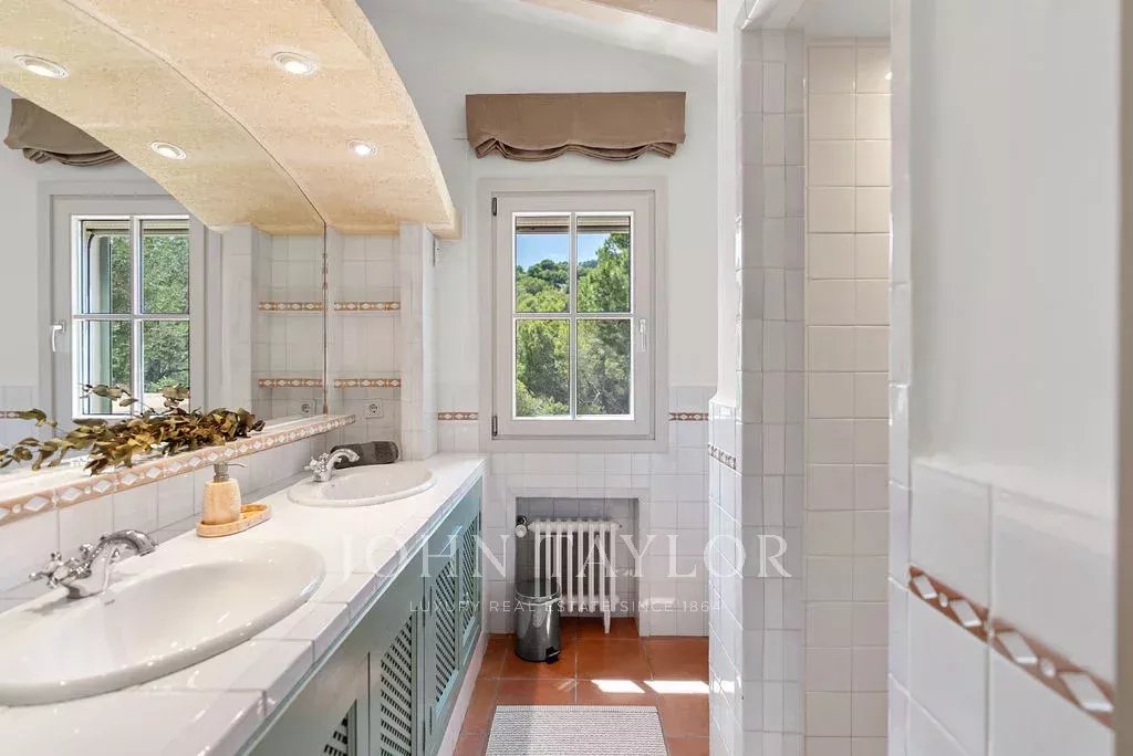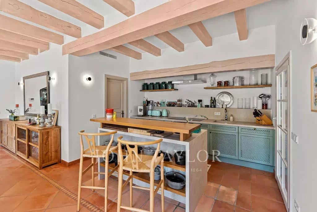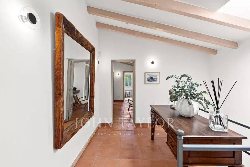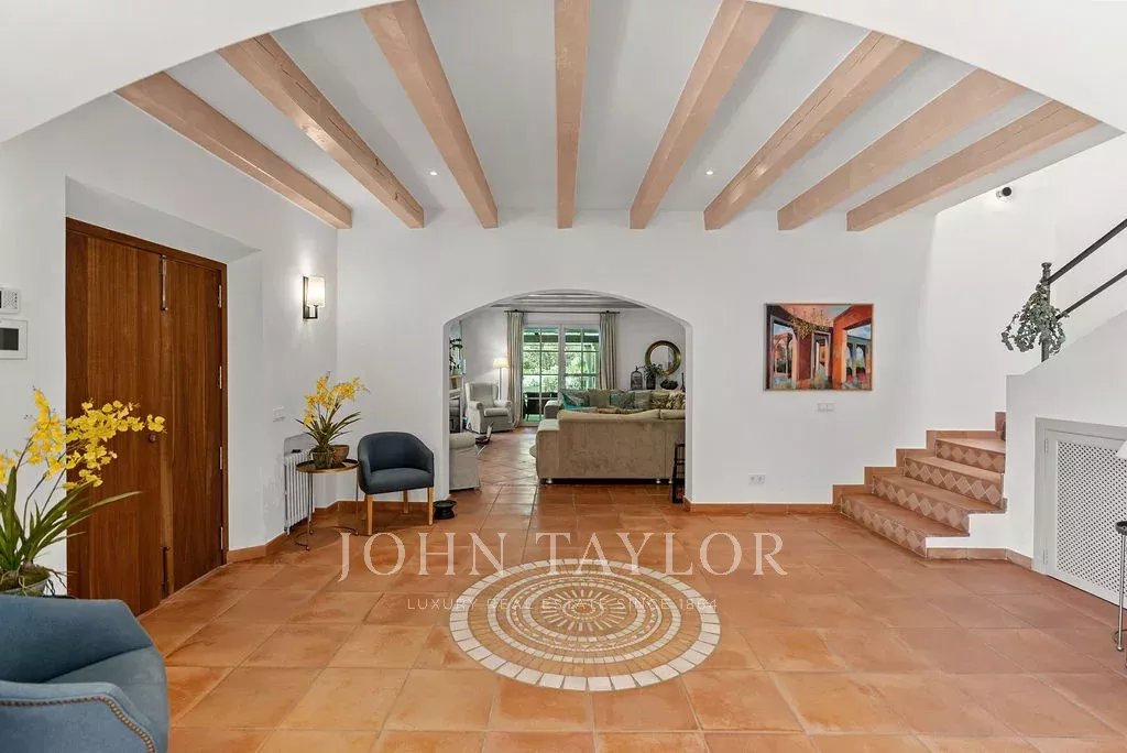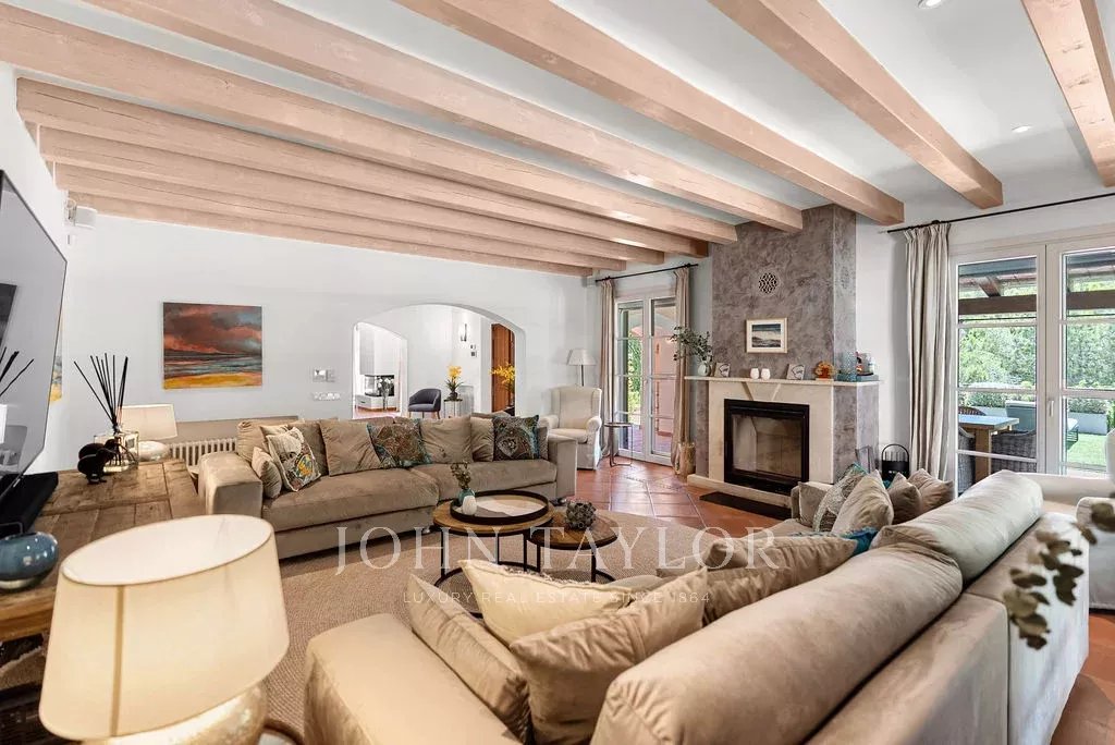 Jedes Detail wurde sorgfältig durchdacht: sechs geräumige Schlafzimmer, drei elegante Bäder und ein Gäste-WC. Die Immobilie ist mit effizienten Klimasystemen ausgestattet: Klimaanlagen in allen Räumen und eine Öl-Zentralheizung, die das ganze Jahr über für Komfort sorgt. Außerdem gibt es raffinierte Extras wie ein Sonos-Soundsystem, integrierte Sicherheitskameras und eine Alarmanlage mit Bewegungssensoren.