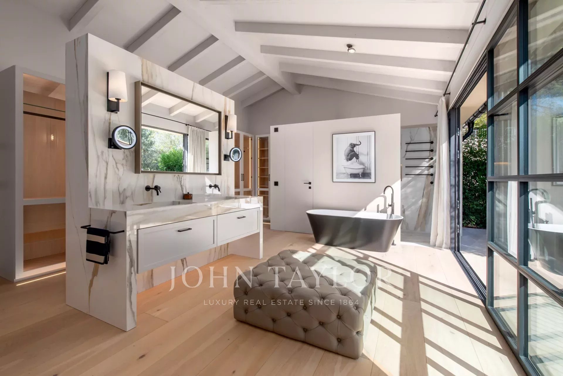Weitere Ausstattungsmerkmale sind Klimaanlage warm/kalt, Fußbodenheizung, zwei Kamine, Satellitenfernsehen und ein integriertes Soundsystem. Außerdem gibt es eine Garage mit Platz für mindestens vier Fahrzeuge.