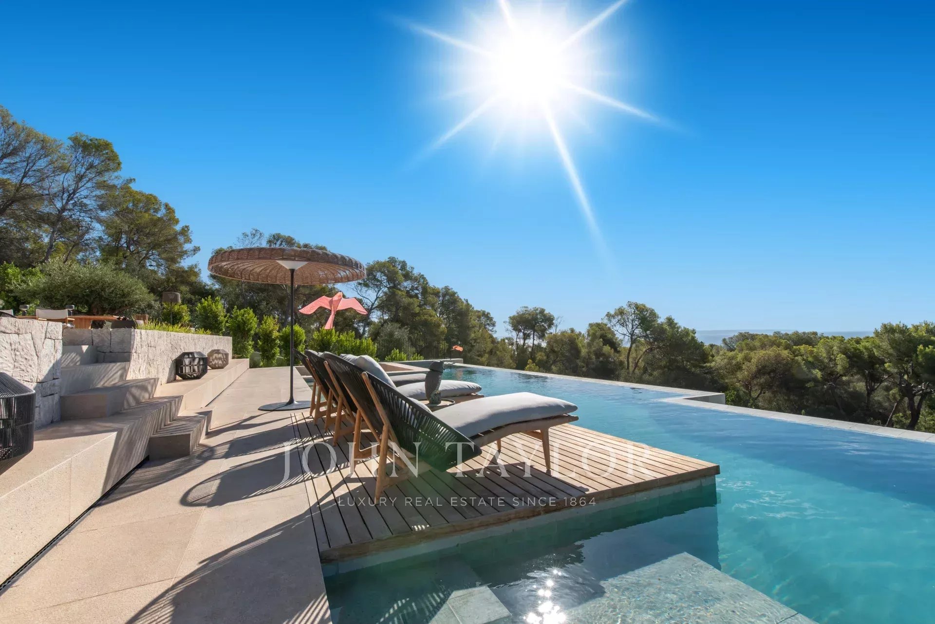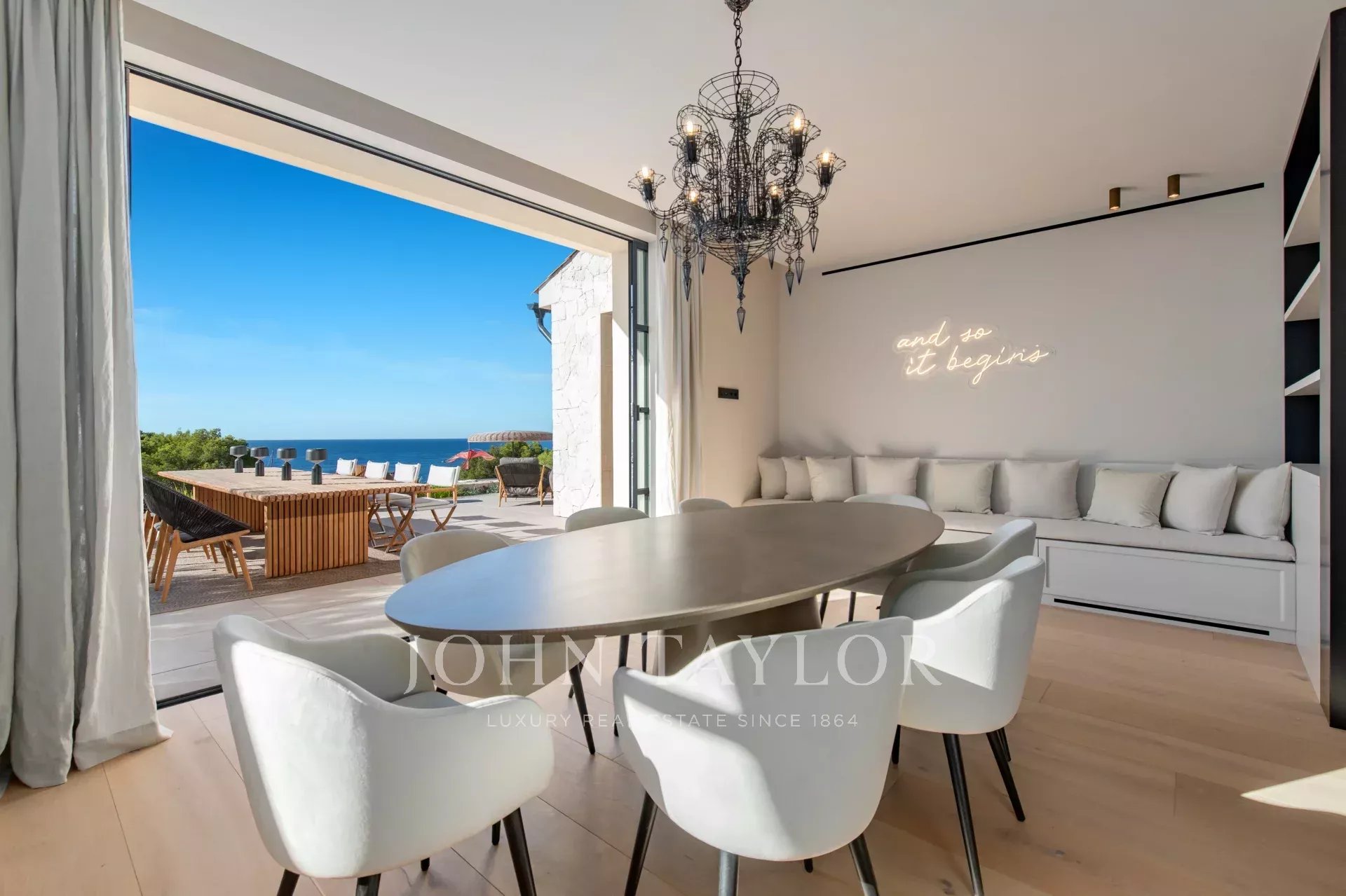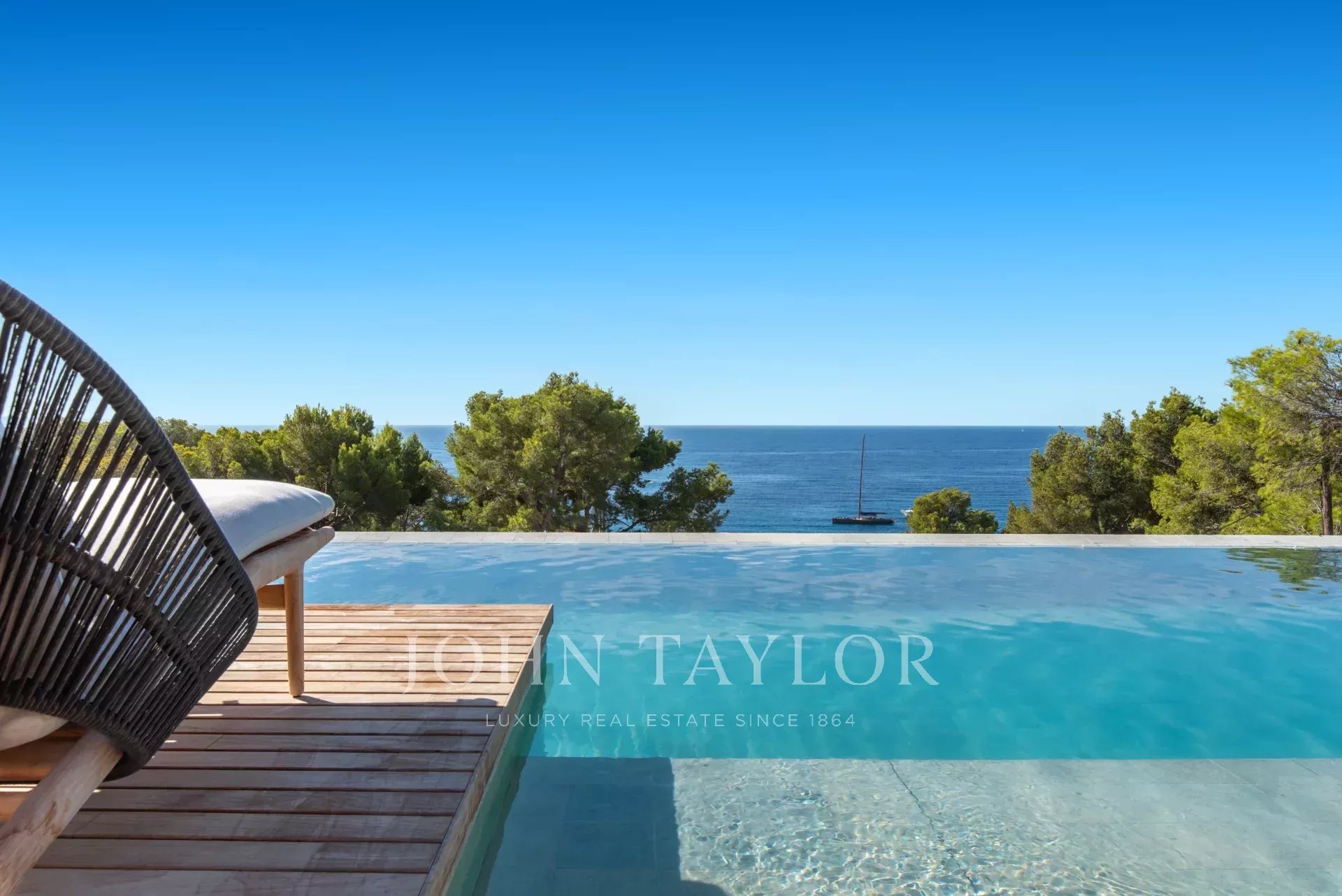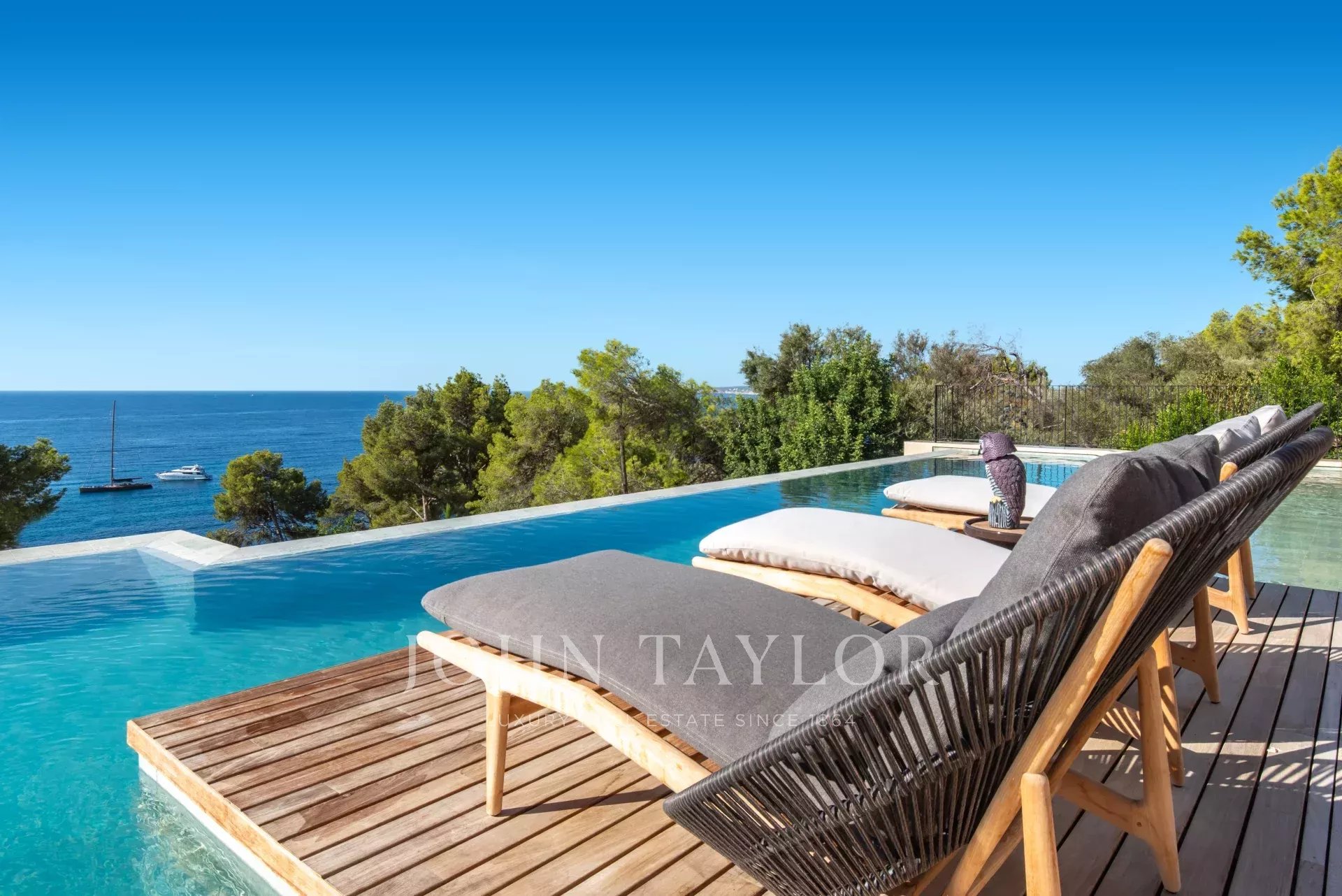 Wenn Sie auf der Suche nach einer exklusiven Immobilie in einer ruhigen und gefragten Gegend sind, dann sind Sie hier genau richtig. Es handelt sich um eine elegante Villa mit Meerblick in Bendinat, die kürzlich fertiggestellt wurde und sofort bezugsfertig ist. "Die perfekte Wahl für diejenigen, die das Beste vom Besten wollen. Auf einem großzügigen Grundstück von 2.362 m² in unmittelbarer Nähe zum Meer gelegen, bietet diese Immobilie einen atemberaubenden Blick auf die Küste von Bendinat, das Mittelmeer und die Inseln Cabrera und Illetas. Die prächtige Villa, die bereits fertiggestellt ist, zeichnet sich durch ihre Geräumigkeit mit 787,60 m² bebauter Fläche aus, die sich auf sechs Schlafzimmer, sechs Bäder, ein Gäste-WC, Wohnzimmer, Küche, Waschküche und Abstellraum verteilen. Die Villa wurde mit hochwertigen Materialien gebaut und verbindet den mediterranen Stil mit einem modernen und eleganten Touch. Das Ergebnis ist eine außergewöhnliche Immobilie, die vom ersten Moment an beeindruckt. Zu den besonderen Merkmalen gehören die Eichenholzböden, die natürlichen Balken und die großen Fenster, durch die man von fast jedem Zimmer aus die Aussicht genießen kann.