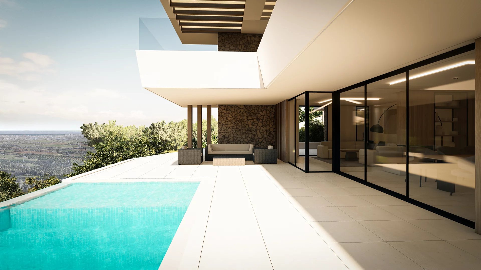 Im Außenbereich gibt es einen Infinity-Pool mit freiem Blick, einen leicht zu pflegenden mediterranen Garten, der für Lebendigkeit und Frische sorgt, und einen Entspannungsbereich, in dem man das ganze Jahr über das mallorquinische Klima genießen kann.