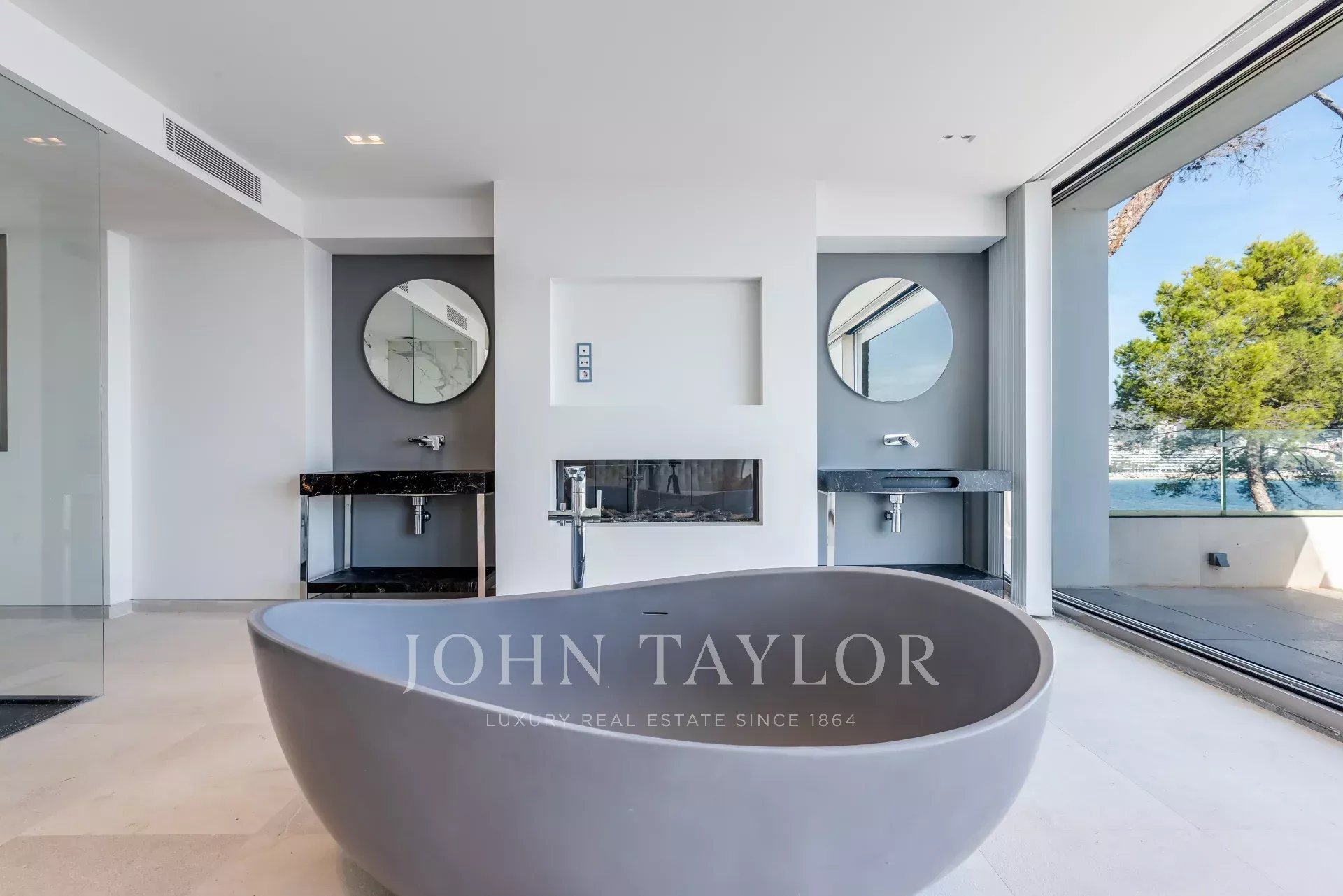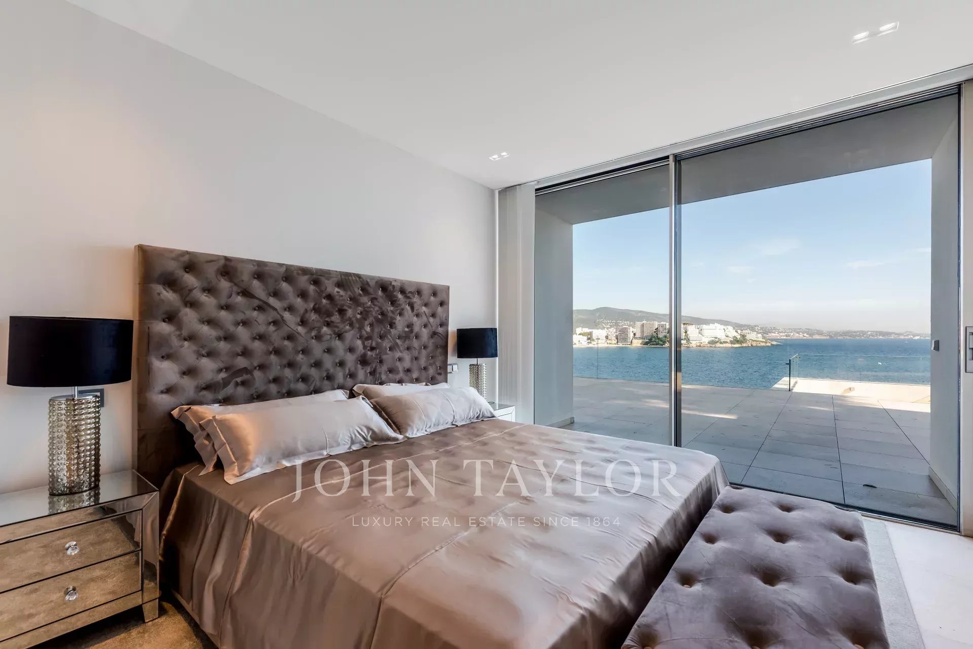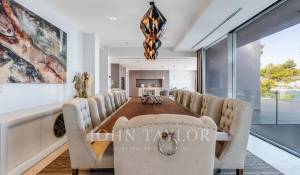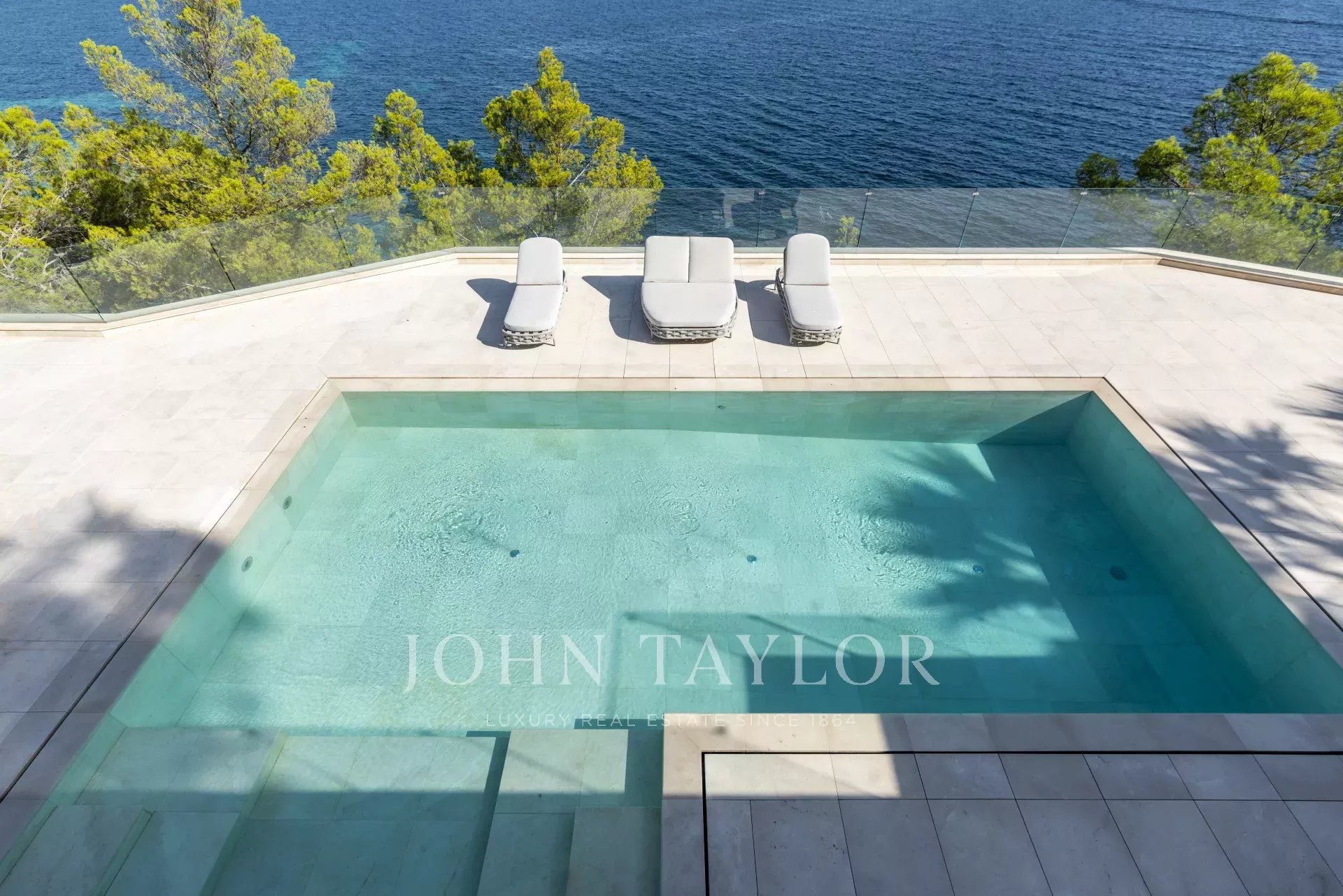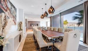 Wir bieten diese beeindruckende Villa mit mehr als 655 m2 bebauter Fläche direkt am Meer und mit direktem Zugang zum Meer. Das Anwesen wurde auf einem Grundstück von 1321 m2 erbaut und besteht aus drei Etagen, die durch Treppen und einen Aufzug verbunden sind. Es wurden hochwertige Materialien wie Holz und Naturstein verwendet. Es befindet sich in einem geräumigen und hellen Wohnzimmer mit Esszimmer und Zugang zur Terrasse mit einem fantastischen Außenbereich, einem Ruhebereich, einer Sommerküche, einem Garten und dem schönen Infinity-Pool. Eine voll ausgestattete Luxusküche, eine Toilette sowie eine weitere Gästetoilette, eine Waschküche und eine Speisekammer. Dann die 6 Schlafzimmer, jedes mit eigenem Bad und Ankleideraum. Der Keller umfasst einen Fitnessraum, ein Spielzimmer und Abstellräume.