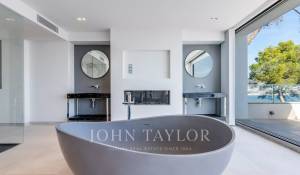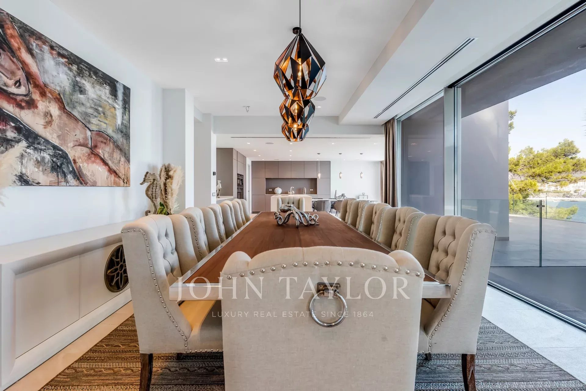Weitere Ausstattungsmerkmale sind eine Warm- / Kaltklimaanlage, eine Fußbodenheizung, Doppelverglasung, Aluminiumfenster, eine intelligente Haussteuerung und ein vollständig separates Gäste- oder Personalapartment. Diese spektakuläre Villa bietet viel Privatsphäre, maximalen Wohnkomfort und einen atemberaubenden Blick auf das Meer und die Landschaft der Region.