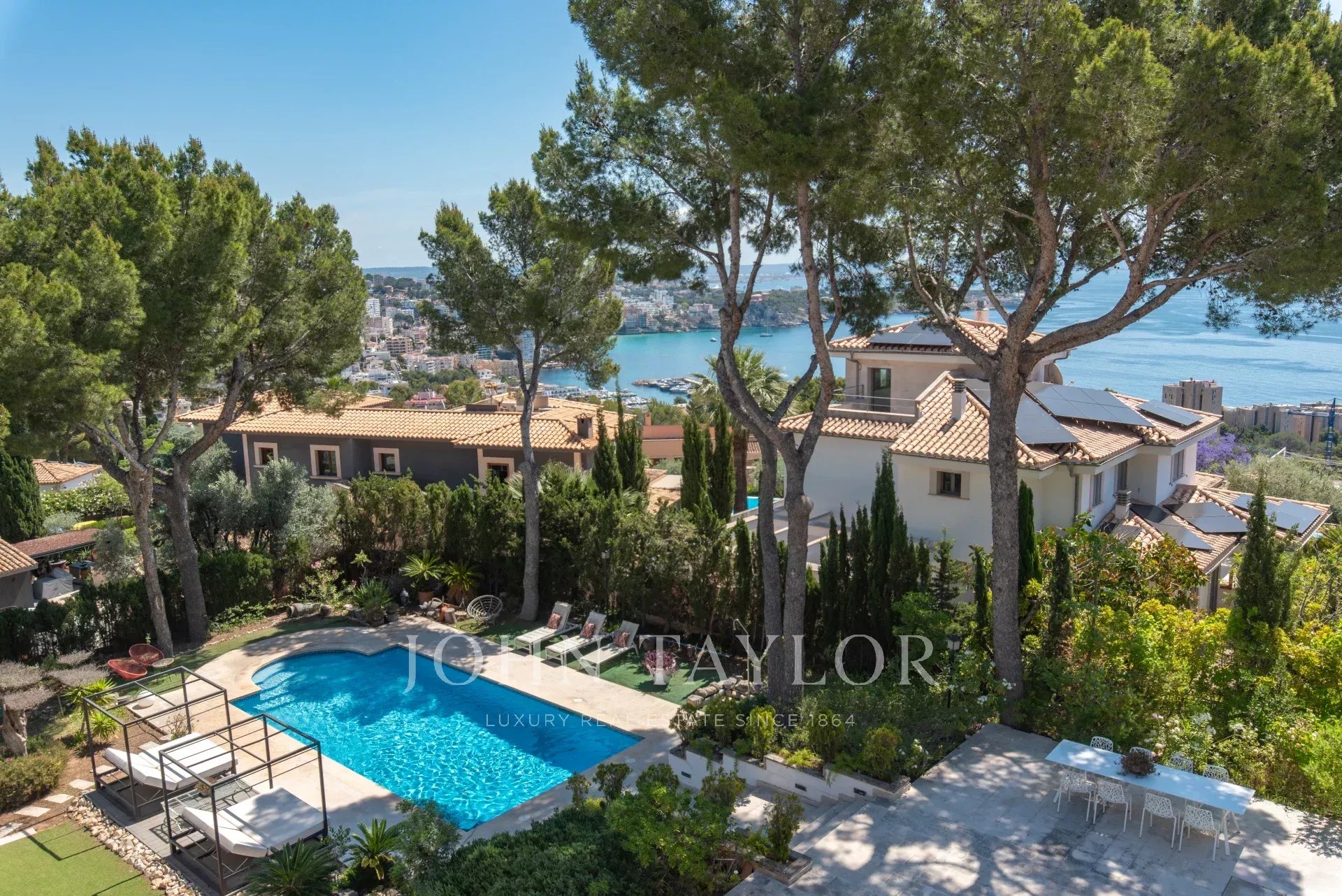 Von den meisten Zimmern aus hat man einen Panoramablick auf das Meer, was eine Atmosphäre der Ruhe und Raffinesse schafft. Mit einer bebauten Fläche von ca. 471 m² verbindet das Design Komfort und Funktionalität, um ein außergewöhnliches Wohnerlebnis zu bieten.
