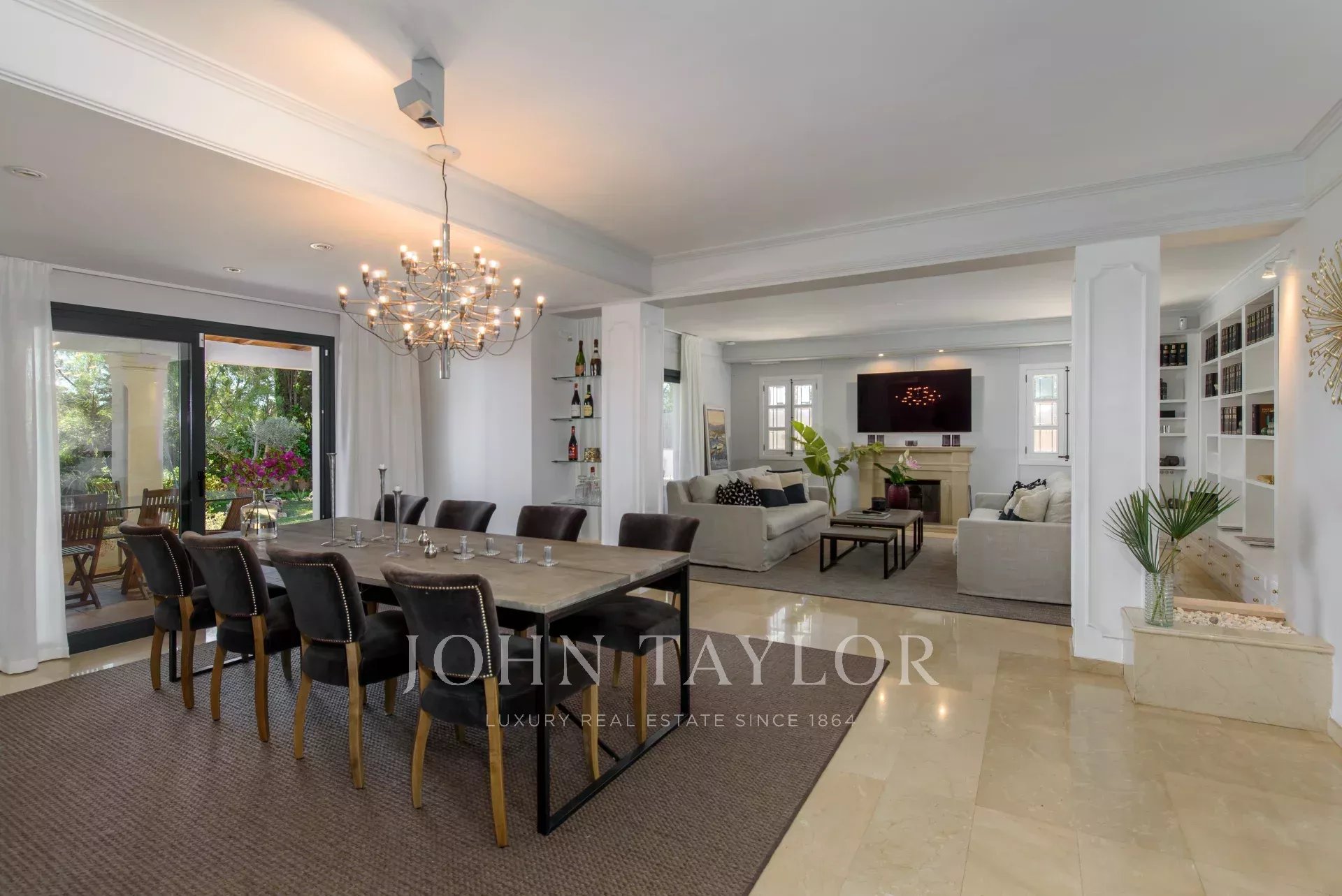 Die Villa verfügt über einen eleganten Eingangsbereich, ein geräumiges und helles Wohnzimmer mit direktem Zugang zum Außenbereich, eine voll ausgestattete moderne Küche, sechs Schlafzimmer und vier Bäder, zwei davon en suite. Der gepflegte Außenbereich mit üppiger mediterraner Vegetation und Bäumen, die Frische und Schatten spenden, beherbergt einen Swimmingpool, ideale Ecken zum Entspannen und eine Veranda mit Grillplatz, perfekt für unvergessliche Zusammenkünfte.