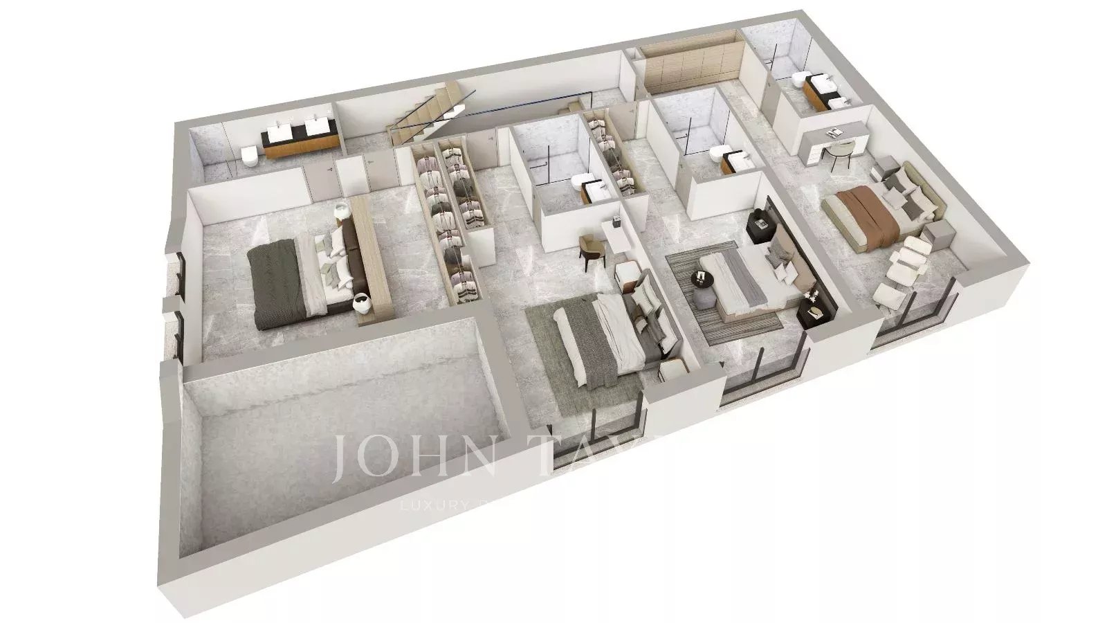 Das Haus wird 5 Schlafzimmer mit eigenem Bad, ein geräumiges, offenes Wohn-/Esszimmer und eine moderne Küche bieten. Von dieser Etage aus können Sie auf der großzügigen und fabelhaften Terrasse einen fantastischen Swimmingpool mit Blick auf die Berge und die Umgebung genießen.