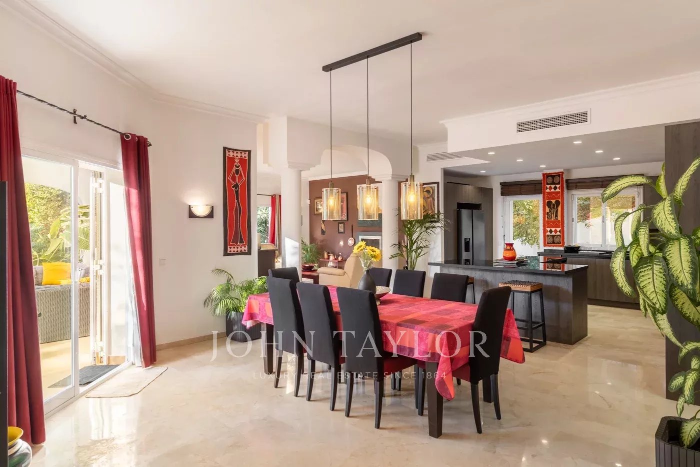 Erbaut im Jahr 2001 und kontinuierlich nach hohen Qualitätsstandards modernisiert, kombiniert diese Immobilie Geräumigkeit, Helligkeit und eine natürliche Verbindung zur mediterranen Umgebung. Vom ersten Moment an vermittelt das Haus ein Gefühl von Raum und Licht dank seiner offenen Raumaufteilung, in der Wohnzimmer, Esszimmer und Küche in ein harmonisches Ambiente integriert sind, das direkt auf die Terrassen und den Poolbereich übergeht und so eine perfekte Kontinuität zwischen drinnen und draußen schafft und es ermöglicht, das ganze Jahr über den mediterranen Lebensstil zu genießen. Im Erdgeschoss öffnet sich das geräumige Wohnzimmer auf die Terrasse und den privaten Poolbereich, der von Gärten umgeben ist, die absolute Privatsphäre garantieren, während die elegante offene Küche mit Essbereich zum Herzstück des Hauses wird, ideal sowohl für das Familienleben als auch für die Bewirtung von Gästen in einer anspruchsvollen und einladenden Atmosphäre. Auf der gleichen Etage befinden sich ein großzügiges Schlafzimmer mit Doppelbett und eigenem Bad, eine Gästetoilette sowie eine große Waschküche und ein Abstellraum, die Funktionalität und Komfort im täglichen Leben bieten. Das Obergeschoss bietet eine Oase der Ruhe mit einer spektakulären Master-Suite mit Panoramablick auf das Meer, einem eigenen Bad und einer großen privaten Terrasse, von der aus man unvergessliche Sonnenuntergänge beobachten kann. Darüber hinaus gibt es zwei weitere Doppelschlafzimmer mit jeweils eigenem Bad sowie ein privates Büro oder Arbeitszimmer, das sich ideal für die Arbeit von zu Hause aus eignet. Das Haus verfügt über einen überdachten Parkplatz und die Möglichkeit, eine Garage zurück zubauen. Der Außenbereich ist eine wahre Oase mit einem privaten Swimmingpool. Mehrere Terrassen und verschiedene Wohnbereiche, umgeben von üppiger Vegetation, sorgen für Frische, Privatsphäre und natürliche Schönheit. Weitere Merkmale der Immobilie sind ein eleganter Gaskamin im Wohnzimmer, eine zentrale Klimaanlage in den Hauptwohnbereichen, eine Gasheizung für optimalen Komfort zu jeder Jahreszeit, hochwertige Materialien und ein hervorragender Gesamtzustand, der sie zu einer idealen Wahl entweder als ständigen Wohnsitz oder als exklusiven Urlaubsort in Meeresnähe macht.