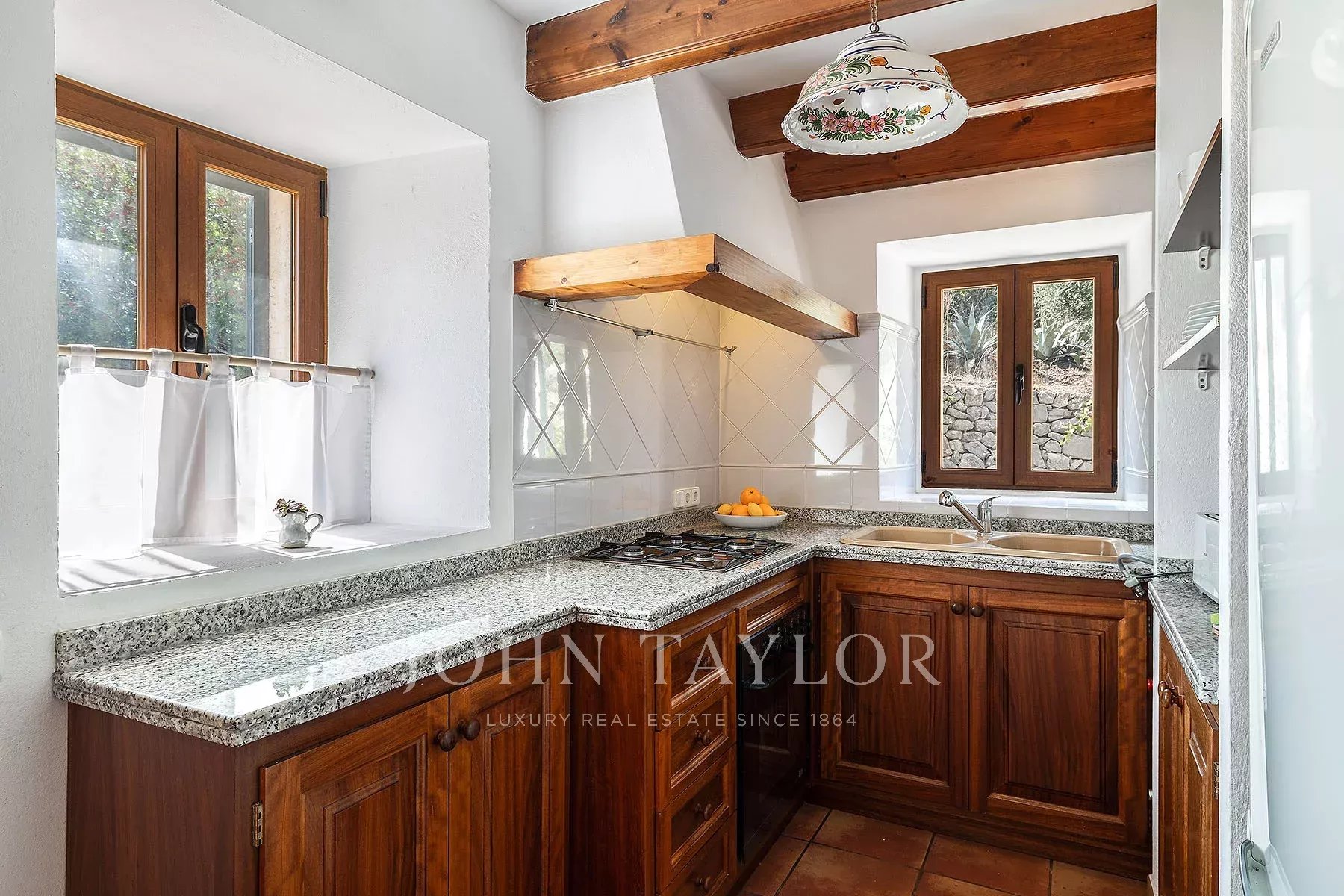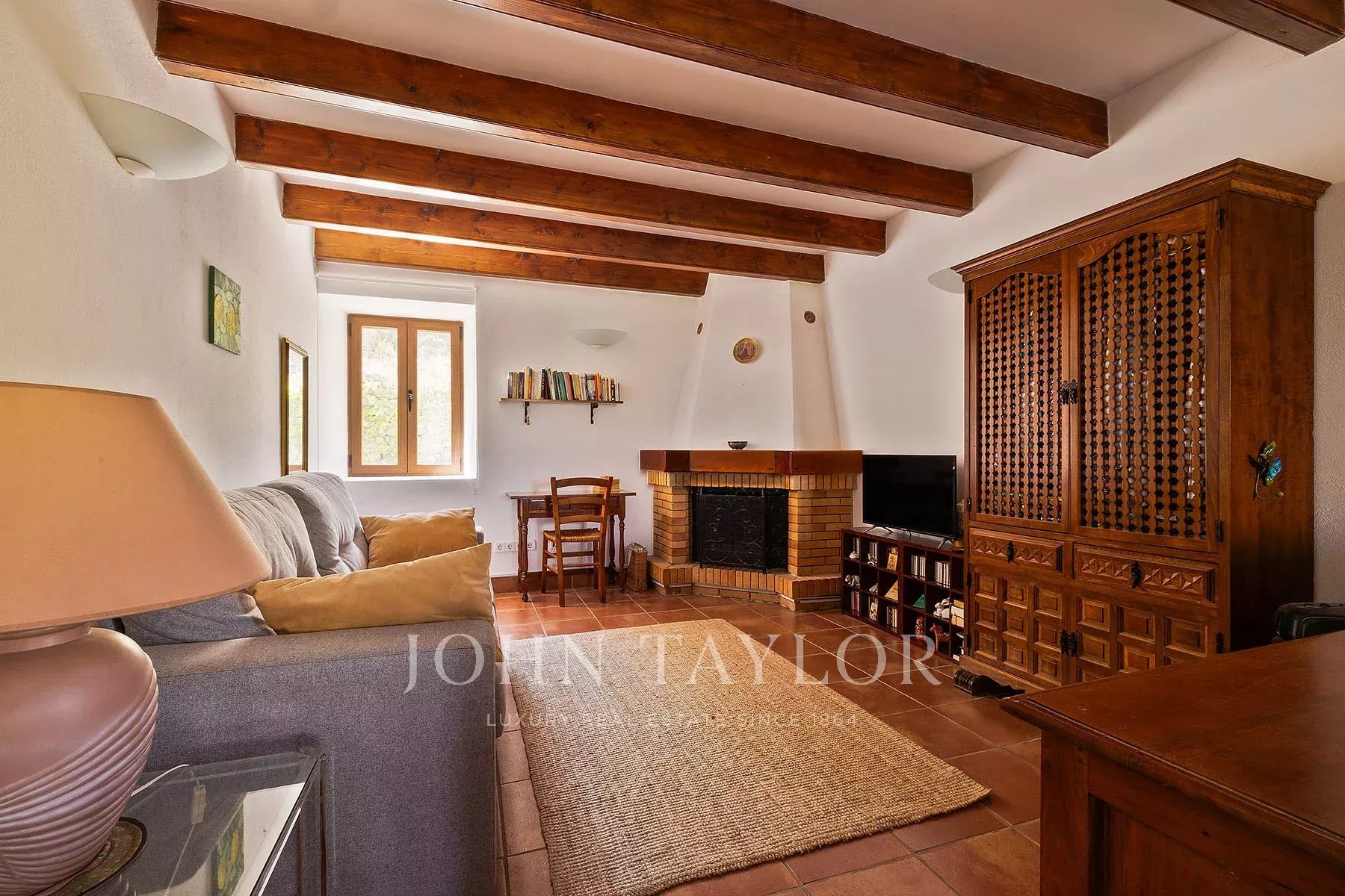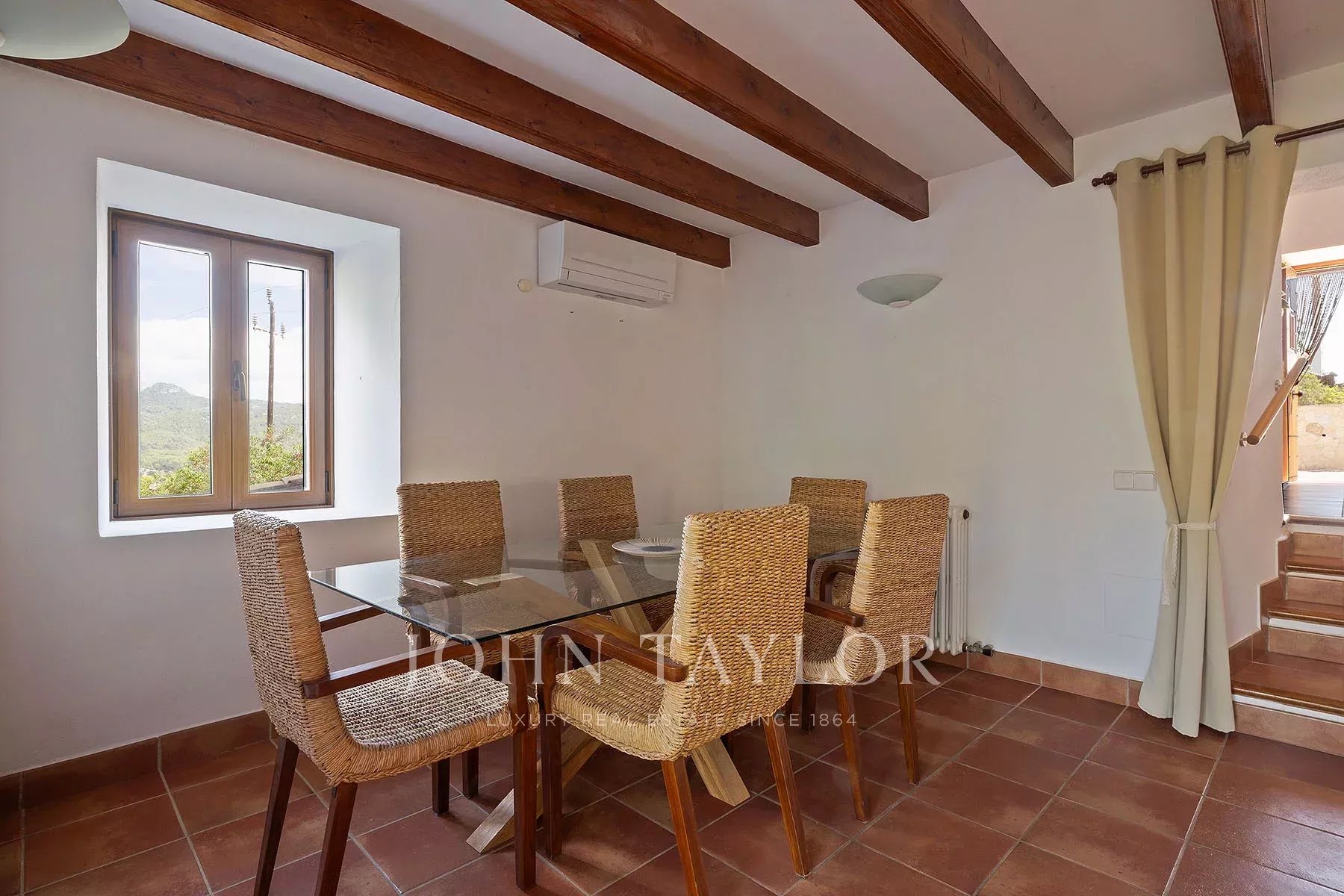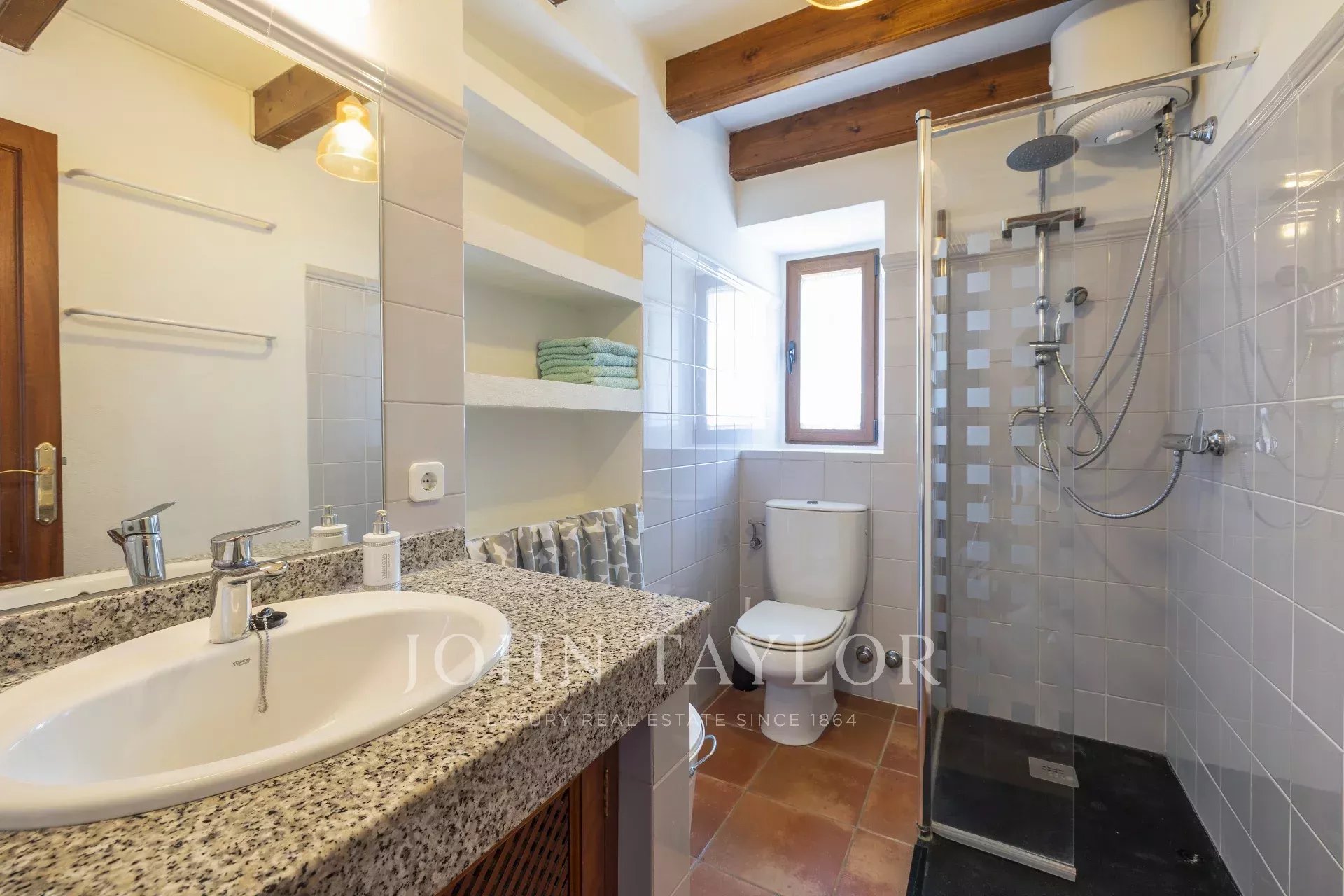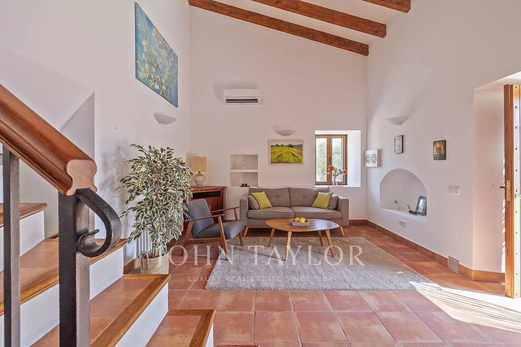 Auf einem großzügigen Grundstück von 2.800 m² bietet die Finca ein Maximum an Privatsphäre und einen atemberaubenden freien Blick über die mediterrane Landschaft und die Berge der Serra de Tramuntana. Eine ruhige Umgebung, in der das Licht, die Farben und die Düfte der mallorquinischen Landschaft eine unvergleichliche Atmosphäre schaffen. Das Haus mit 152 m² bebauter Fläche wurde sorgfältig renoviert, wobei die traditionelle Architektur respektiert wurde und es mit hellen und eleganten Innenräumen ausgestattet wurde. Es verfügt über zwei Schlafzimmer, zwei komplette Bäder und zwei geräumige Wohnzimmer mit offener Küche, ideal, um mit der Familie oder Freunden zu genießen. Eines der Wohnzimmer kann problemlos in ein drittes Schlafzimmer umgewandelt werden und bietet somit Flexibilität und Komfort in jeder Ecke. Im Außenbereich zeigt die Finca ihren ganzen mediterranen Charme: Gärten mit Oliven- und Mandelbäumen, große Sonnenterrassen und ein privater Swimmingpool inmitten der Natur. Der perfekte Ort, um sich zu entspannen und das ganze Jahr über das milde Klima Mallorcas zu genießen.
