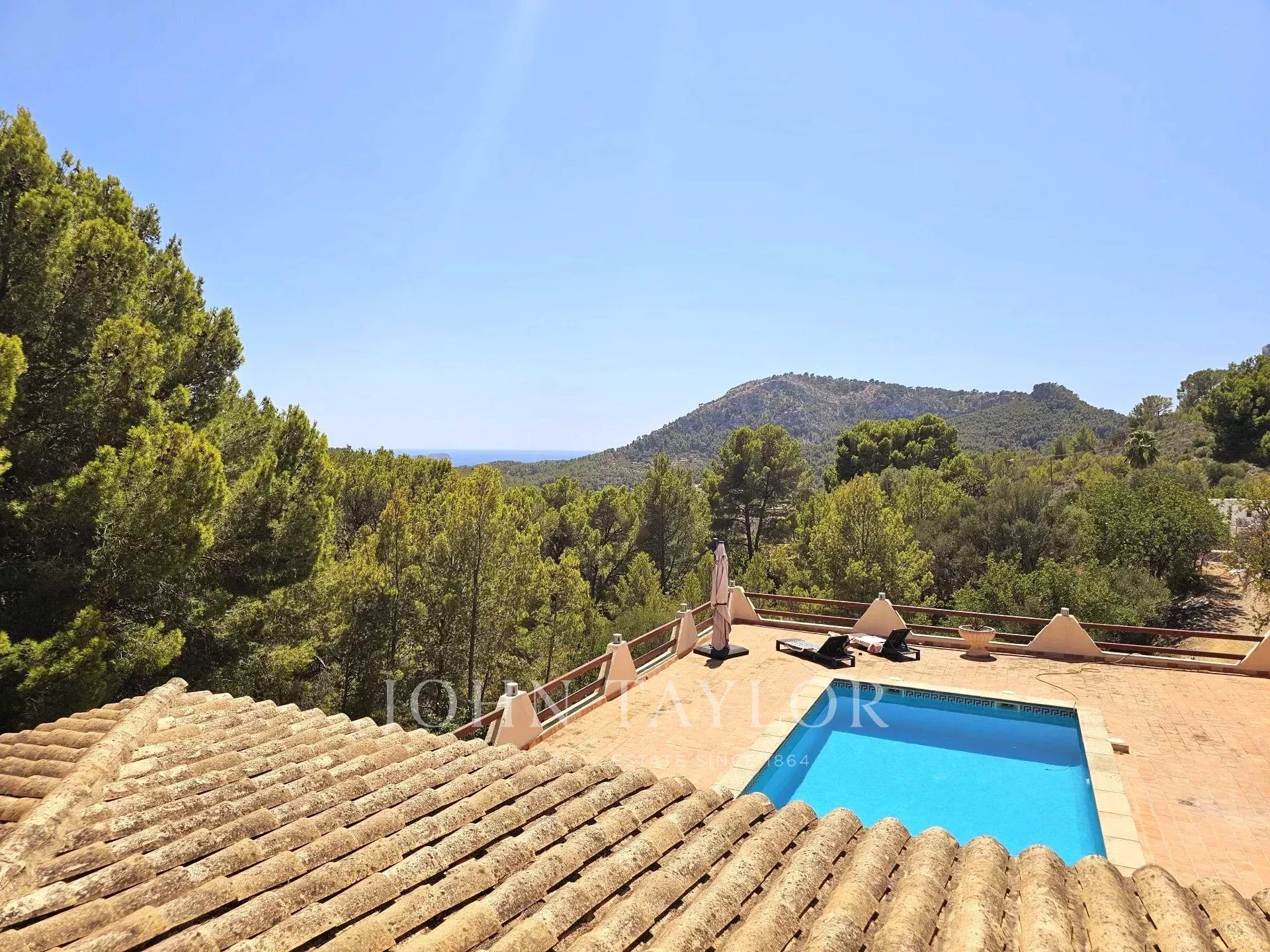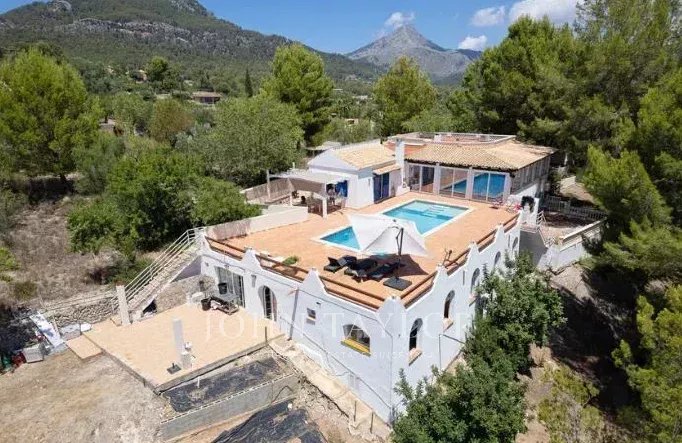 Das 1986 in solider Handwerksarbeit errichtete Anwesen bietet drei geräumige Schlafzimmer mit eigenem Bad, ein zusätzliches Schlafzimmer oder Büro mit Bad, eine Öl-Zentralheizung, eine Klimaanlage mit Luftkanal und einen großen Abstellraum. Die geräumige Südterrasse bietet einen atemberaubenden Blick auf das Meer und die Berge und ist der perfekte Ort für Entspannung und Unterhaltung. Die beiden Swimmingpools laden dazu ein, das ganze Jahr über das mallorquinische Klima zu genießen, während der gemütliche Kamin an kühleren Abenden für Wärme sorgt. In einer ruhigen Umgebung gelegen, ist dies eine einmalige Gelegenheit, ein Haus zu erwerben, das sofortigen Komfort und die Möglichkeit bietet, es nach persönlichem Geschmack zu renovieren und so eine außergewöhnliche Residenz in einer der begehrtesten Gegenden Mallorcas zu schaffen.