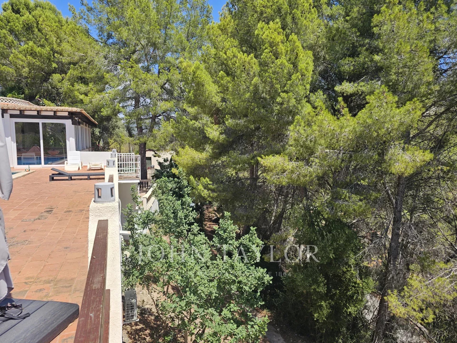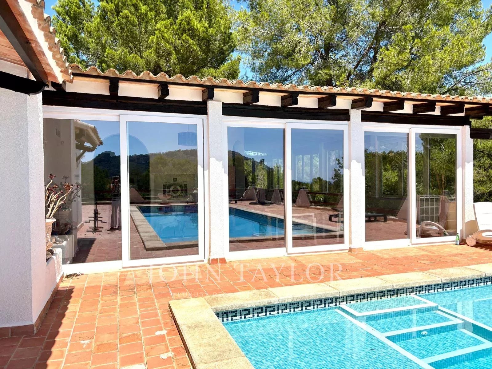 Das Haupthaus ist auf zwei Ebenen verteilt. Das Erdgeschoss bietet 171 m² gemütliche Wohnfläche, während das Obergeschoss mit 154 m² einen hellen Wohnbereich von 120 m², eine charmante Veranda von 32 m² und eine Pergola von 3 m² bietet, die alle darauf ausgelegt sind, die Schönheit der umliegenden Aussicht einzufangen. Zum Anwesen gehören außerdem eine freistehende Garage von 18 m², eine Veranda von 9 m² und ein beeindruckender zweiter Swimmingpool von 48 m², der separat im Grundbuch eingetragen ist.
