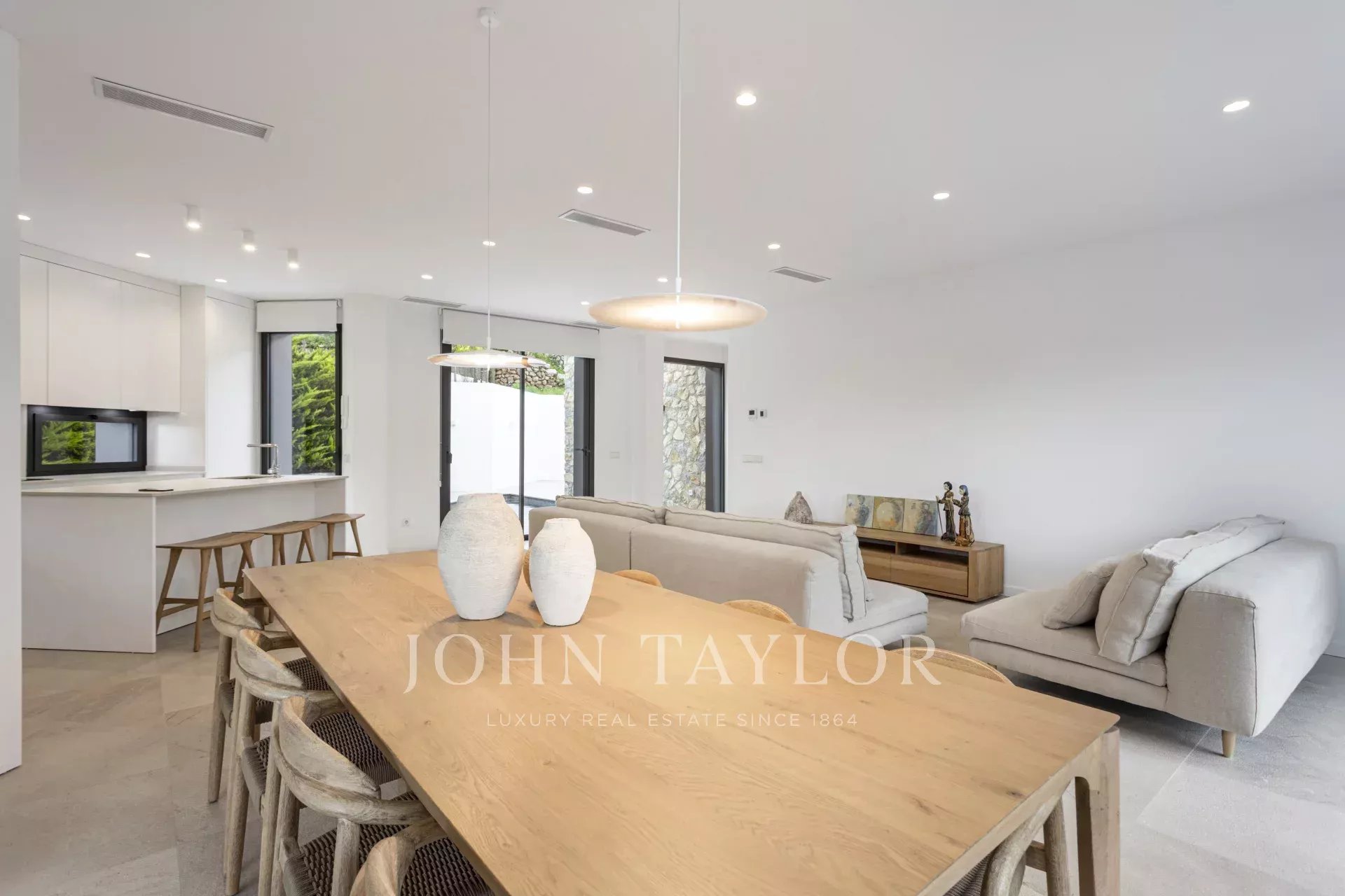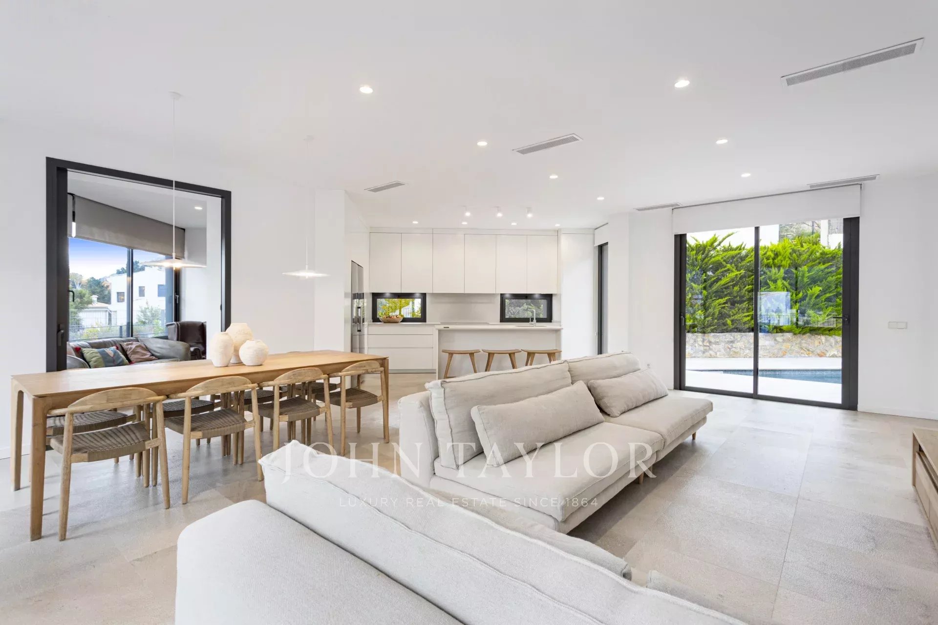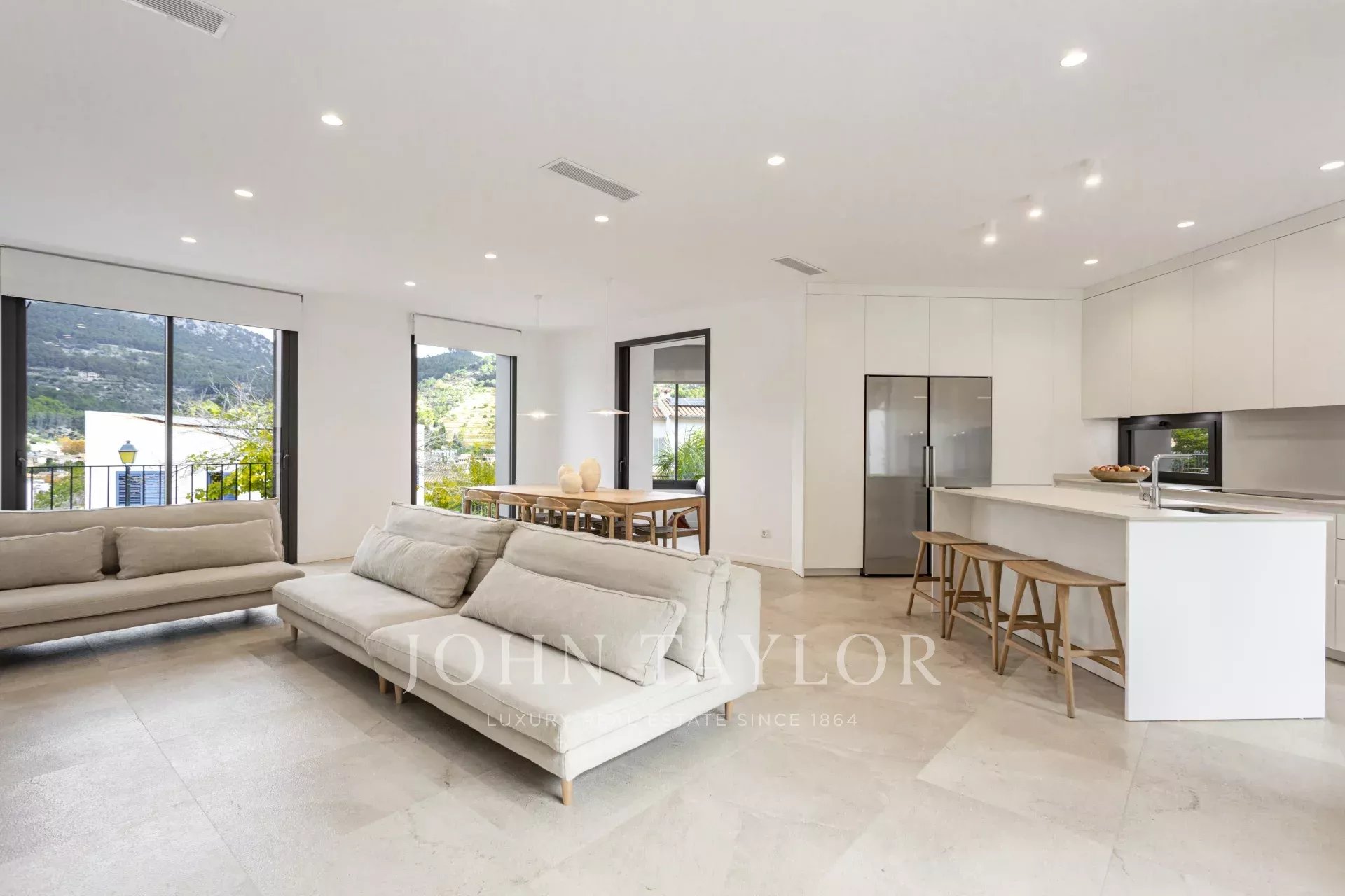 Das Haus verfügt über 3 Schlafzimmer, darunter zwei Doppelzimmer und ein Einzelzimmer, sowie zwei Vollbäder. Der geräumige Wohn-Essbereich mit integrierter Küche schafft einen offenen, hellen und einladenden Raum mit direktem Zugang zur Terrasse und dem Pool, wo Sie eine privilegierte Umgebung mit absoluter Privatsphäre und Panoramablick auf das Tramuntana-Gebirge genießen können.