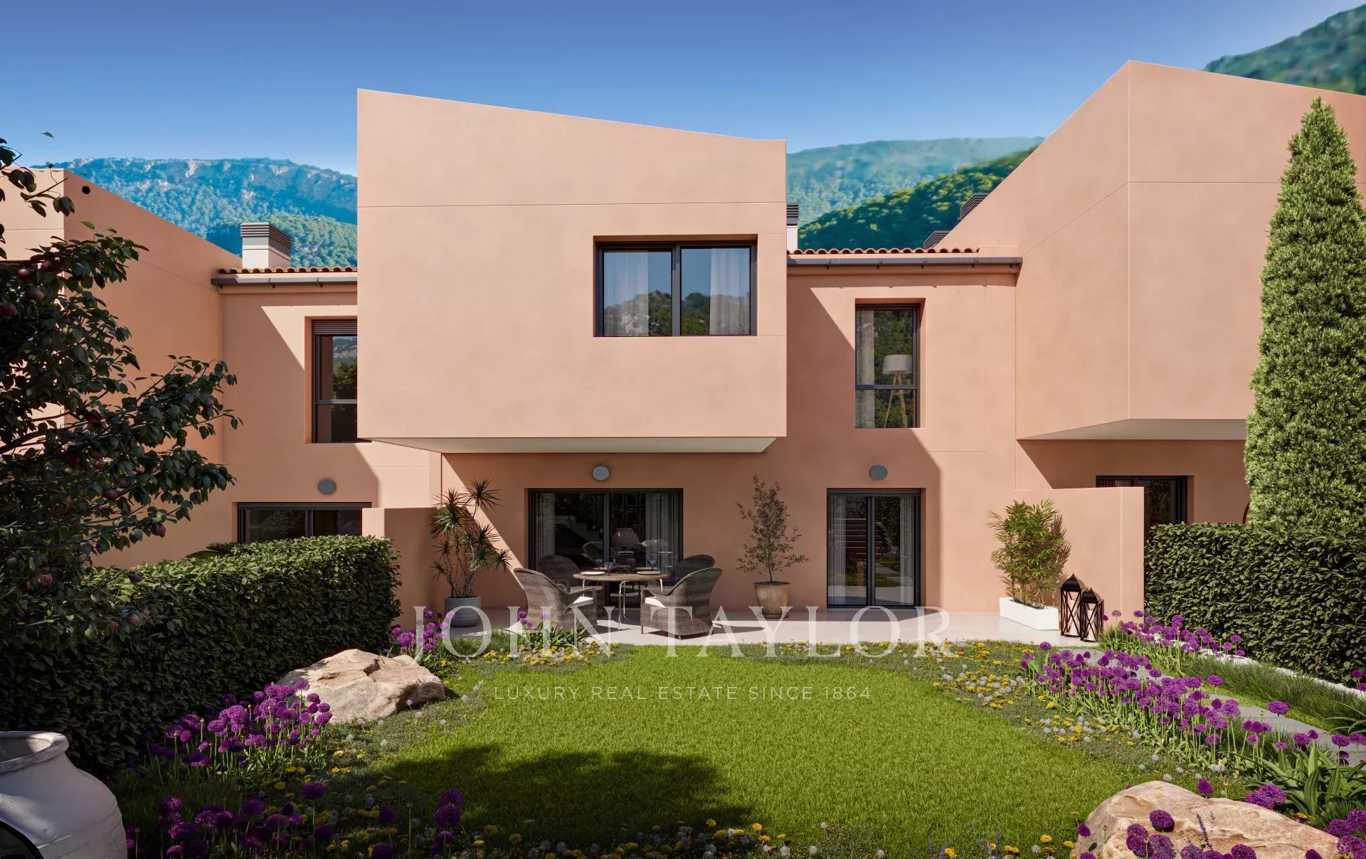Die Terrassen aller Häuser sind nach Südwesten ausgerichtet und haben einen eigenen Garten, mit Zugang zum schön angelegten, begrünten Gemeinschaftsbereich mit Pool. Zu jeder Immobilie gehört ein eigener Parkplatz mit direktem, individuellem Zugang.