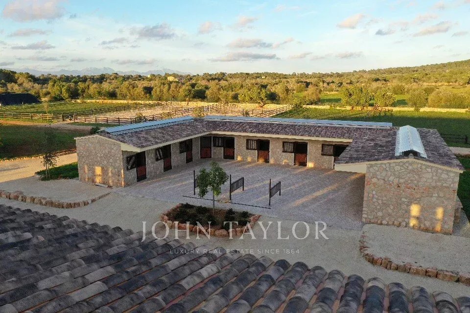 Platz für insgesamt 50 Pferde, die in fünf U-förmigen Ställen mit jeweils zehn Boxen und zwei Sattelkammern untergebracht sind. Im Inneren der U-förmigen Ställe befinden sich Putz- und Waschplätze, so dass die Pferde vor und nach dem Reiten gut gepflegt werden können. Abgerundet wird der Komplex durch ein perfekt ausgestattetes Restaurant mit Zugang zu einem großen Schwimmbad. Die historischen Gebäude aus dem Jahre 1843 wurden erhalten und im mallorquinischen Stil modernisiert.
