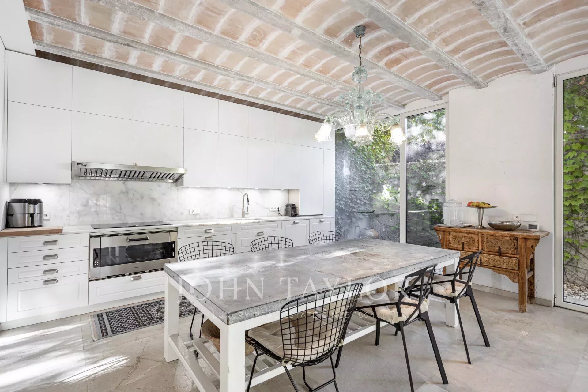 Dieses herrliche Haus in einer ruhigen Straße und dennoch in der Nähe des Sandstrandes von Ciudad Jardín ist der Inbegriff von Qualität, Liebe zum Detail und Funktionalität. Das Haus wurde komplett restauriert, wobei der ursprüngliche Charakter erhalten blieb und gleichzeitig eine zeitlose Eleganz Einzug gehalten hat, die sich in der gesamten Inneneinrichtung widerspiegelt. Großzügiges Haus mit über 400 Quadratmetern auf einem 359 Quadratmeter großen Grundstück. Auf der Eingangsebene befindet sich der große Sozialbereich mit einem Wohnzimmer und einer offenen Küche von ca. 60 m², die sich zu einer schönen 30 m² großen Terrasse hin öffnen, die in den 250 m² großen Garten mit einem 22 m² großen Pool sowie einem Grillplatz und überdachten Sitzgelegenheiten auf der Terrasse führt. Auf dieser Ebene befinden sich auch ein Gästeschlafzimmer, eine Gästetoilette, eine Garage sowie eine beeindruckende Eingangshalle und ein Aufzug. Im Obergeschoss befinden sich drei große Schlafzimmer, alle mit eigenem Bad. Das 40 qm große Hauptschlafzimmer hat eine eigene 18 qm große Terrasse mit Blick auf den Garten. Im Untergeschoss finden Sie einen fantastischen Raum mit schönen hohen Decken und einem fantastischen Familienzimmer mit einer zweiten Küche in offener Bauweise sowie einem Kamin und einer großen Glaswand, die viel Licht hereinlässt, und Türen, die in den Garten und zum Pool führen. Außerdem gibt es einen Weinkeller, ein Gästeschlafzimmer, ein Badezimmer und den Maschinen- und Hauswirtschaftsraum. Ganz oben befindet sich eine 90 qm große, sonnige Dachterrasse, die mit dem Aufzug leicht zu erreichen ist.