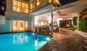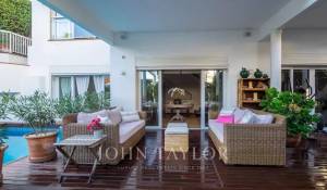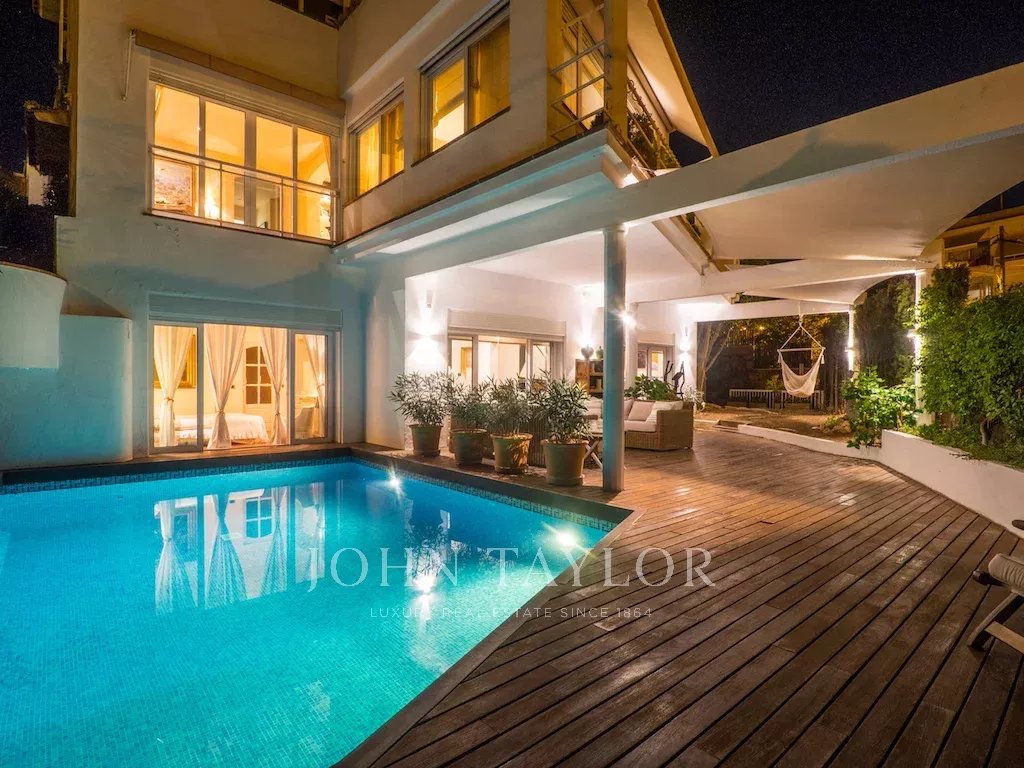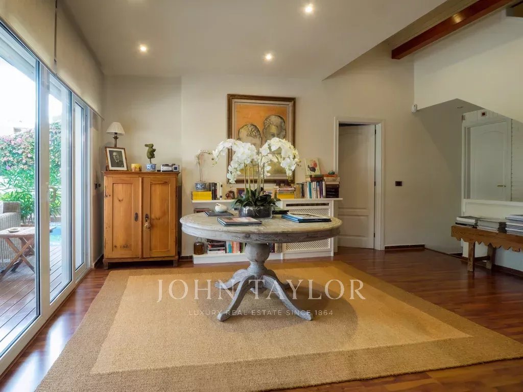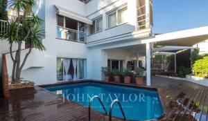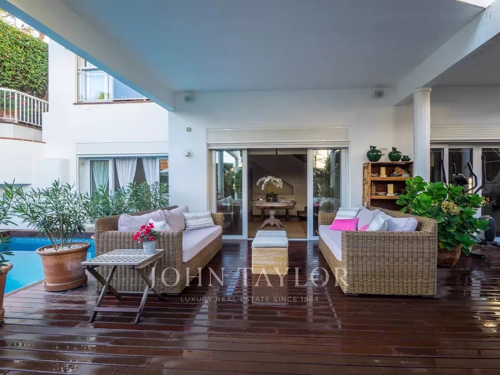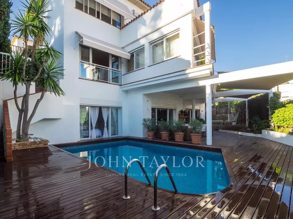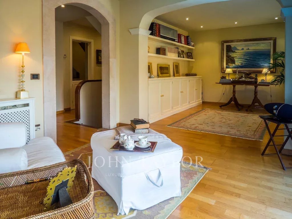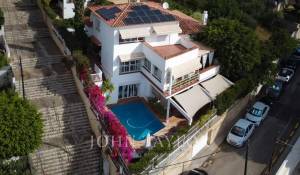 Dieses schöne Haus mit Teilmeerblick, Garten und Pool ist ideal, um das Leben im Freien zu genießen. Die Aufteilung über drei Etagen zuzüglich Garage bietet viel Platz und Vielseitigkeit. Im ersten Stock befindet sich die Eingangshalle, ein großzügiges Wohn-Esszimmer mit Terrasse, Küche mit Essbereich, Speisekammer und ein Hauswirtschaftsraum. Es gibt 2 Schlafzimmer, eines davon mit Bad en suite und Ankleideraum sowie eine große Gästetoilette. Im Obergeschoss befinden sich ein Wohnzimmer, 2 Schlafzimmer, 1 Badezimmer und 1 Terrasse. Die untere Etage verfügt über ein Fernsehzimmer mit Gaskamin, 2 Schlafzimmer, 1 Bad und ein weiteres Zimmer, alle mit Zugang zur Terrasse und Garten mit Pool. Das Untergeschoss bietet reichlich Platz für mehrere Pkws.