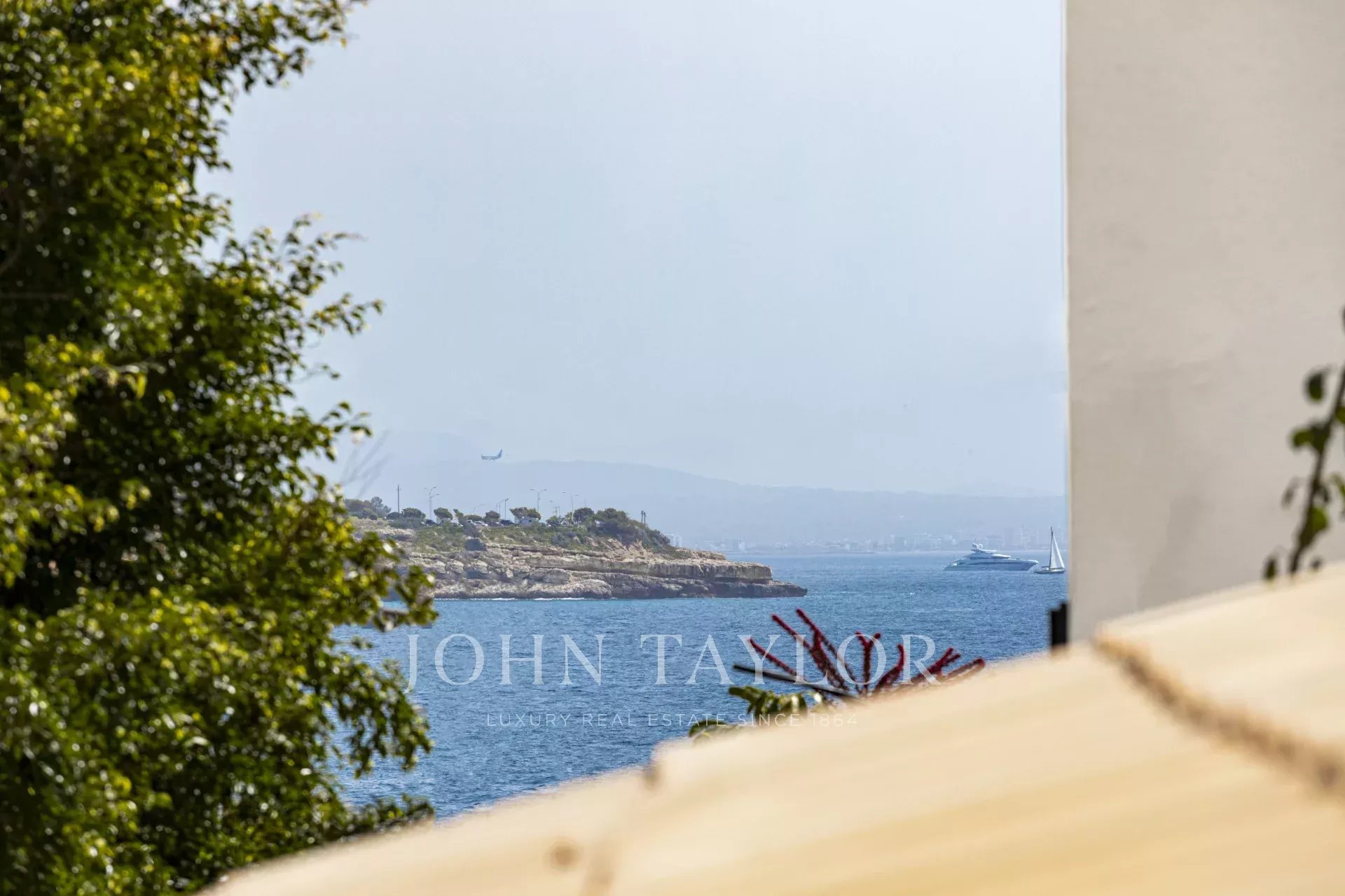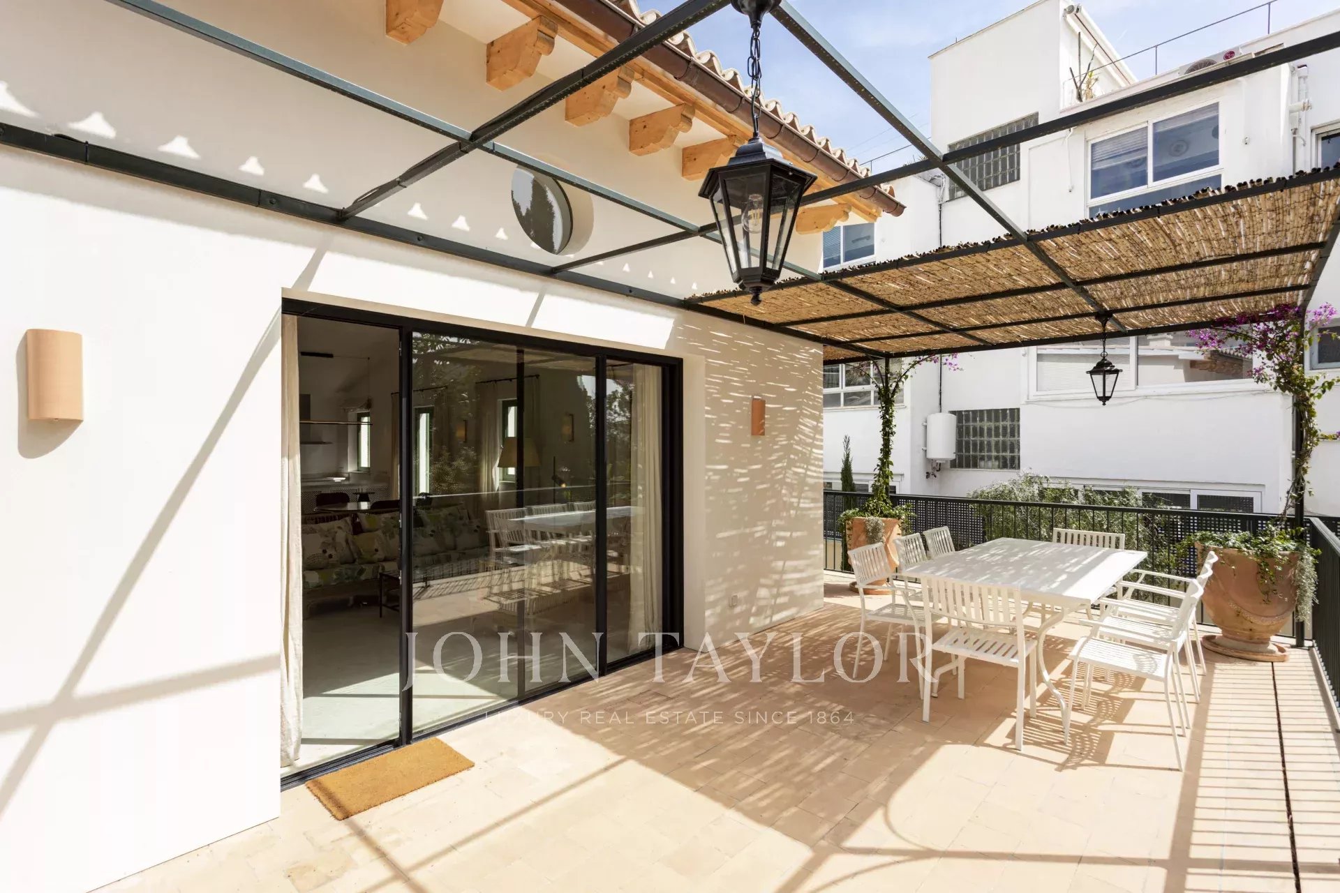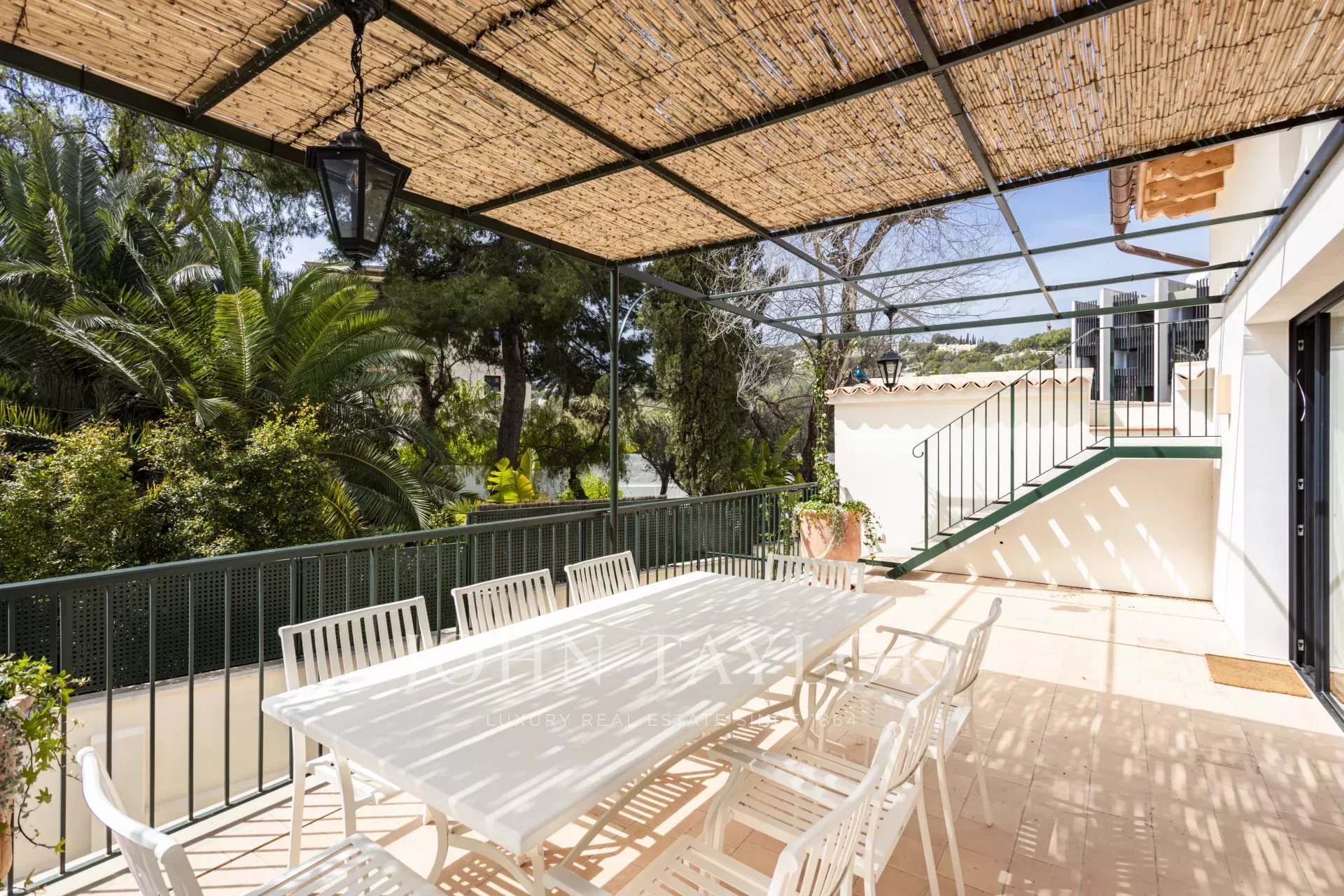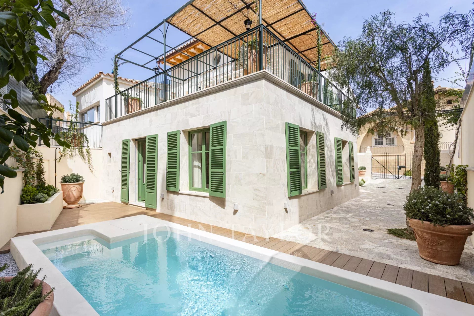 Dieses spektakuläre Haus in San Agustín, wurde nach den höchsten Qualitätsstandards komplett renoviert. Direkt neben dem Hotel Maricel gelegen, einer der exklusivsten Lagen der Stadt, bietet diese Immobilie eine perfekte Kombination aus Luxus, Komfort und fortschrittlicher Technologie. Auf 297 m² komplett renovierter Wohnfläche verfügt die Immobilie über 2 Doppelschlafzimmer und 1 Einzelschlafzimmer, die alle mit luxuriösen Ausstattungen versehen sind. Darüber hinaus bietet es über zwei geräumige und helle Wohnzimmer, die auf Komfort und Eleganz ausgelegt sind, eines davon mit integrierter offener Küche. Die 54 m² große Garage kann als solche oder als Fitnessraum, Spa, Kinoraum oder als zusätzlicher Raum je nach Bedarf genutzt werden und verfügt über eine zusätzliche Einfahrt und einen Privatparkplatz. Das Anwesen verfügt außerdem über zwei Außenterrassen und eine Dachterrasse, letztere mit teilweisem Meerblick, sowie einen wunderschönen Mikrozement-Sole-Pool im Erdgeschoss, der eine private Oase darstellt. Bei der Gestaltung des Hauses wurden hochwertige Naturmaterialien wie Lärchen- und Iroko-Holz, Perlino-Marmor und Stein aus Santanyi und Binissalem verwendet. Die in Italien handbemalten Fliesen in den Bädern und die Verwendung von Mikrozement verleihen dem Haus einen Hauch von Raffinesse und Stil. Was den Komfort und die Technik betrifft, so verfügt das Haus über eine Fußbodenheizung und eine Klimaanlage, die zu jeder Jahreszeit eine perfekte Temperatur gewährleisten. Die Energieeffizienz wird durch eine Wärmepumpe zur Warmwasserbereitung, einen Wasserenthärter und eine eigene Druckverstärkungsanlage optimiert. Darüber hinaus verfügt die Immobilie über ein fortschrittliches Hausautomatisierungssystem für Beleuchtung und Klimaanlage sowie eine Vorinstallation für eine Alarmanlage, ein elektrisches Pkw Ladegerät und eine automatische Bewässerungsanlage, um den Garten perfekt zu pflegen.