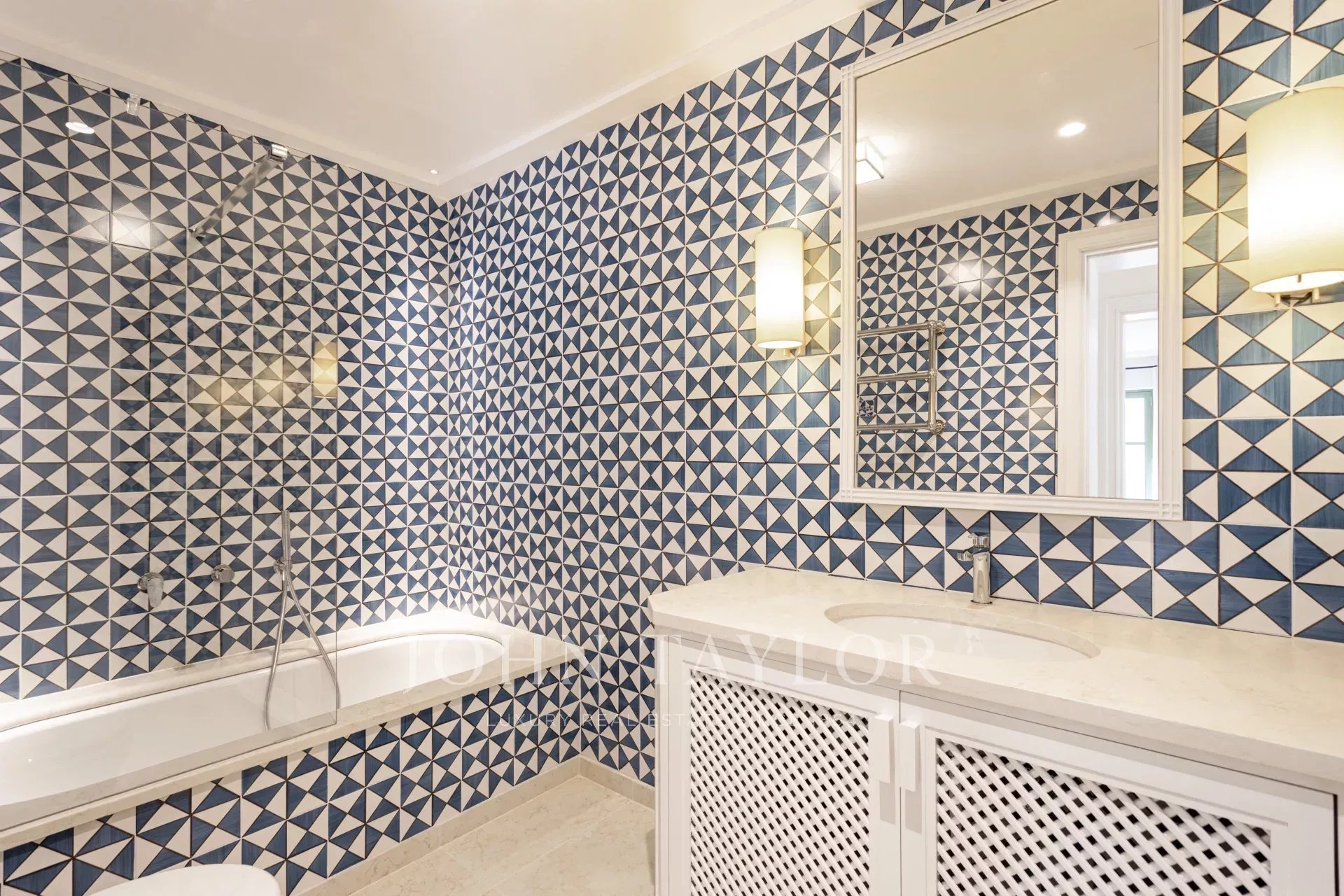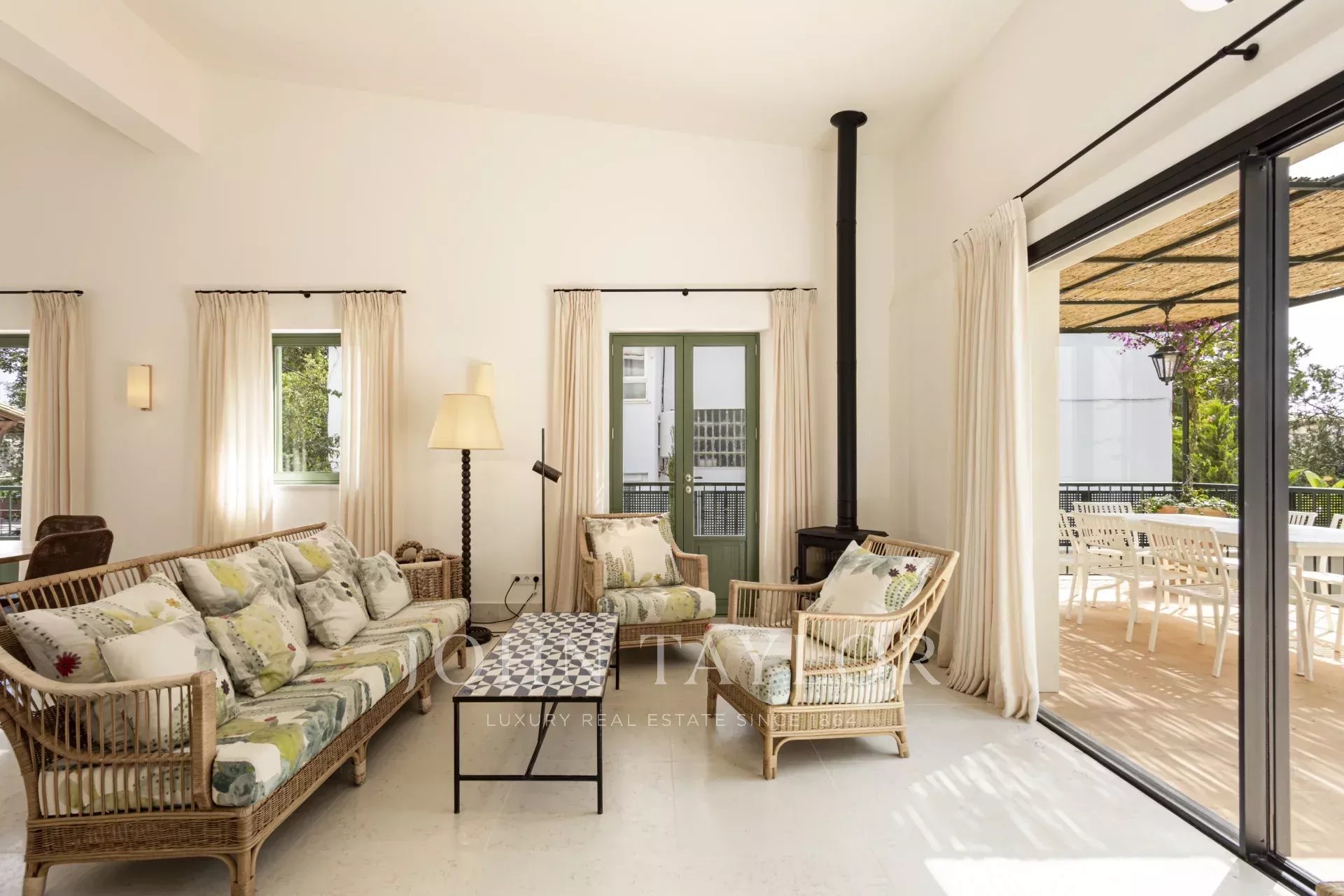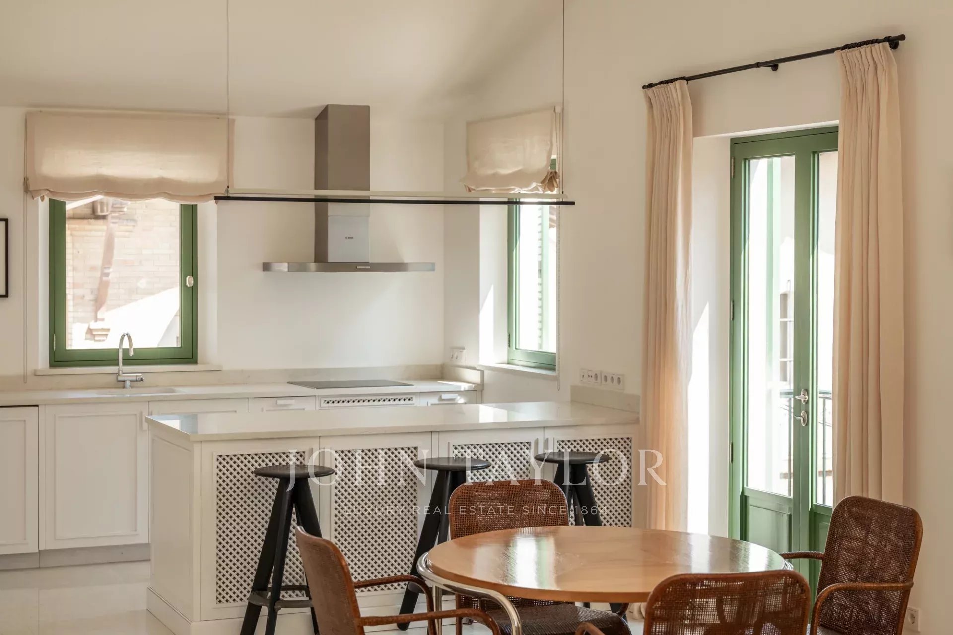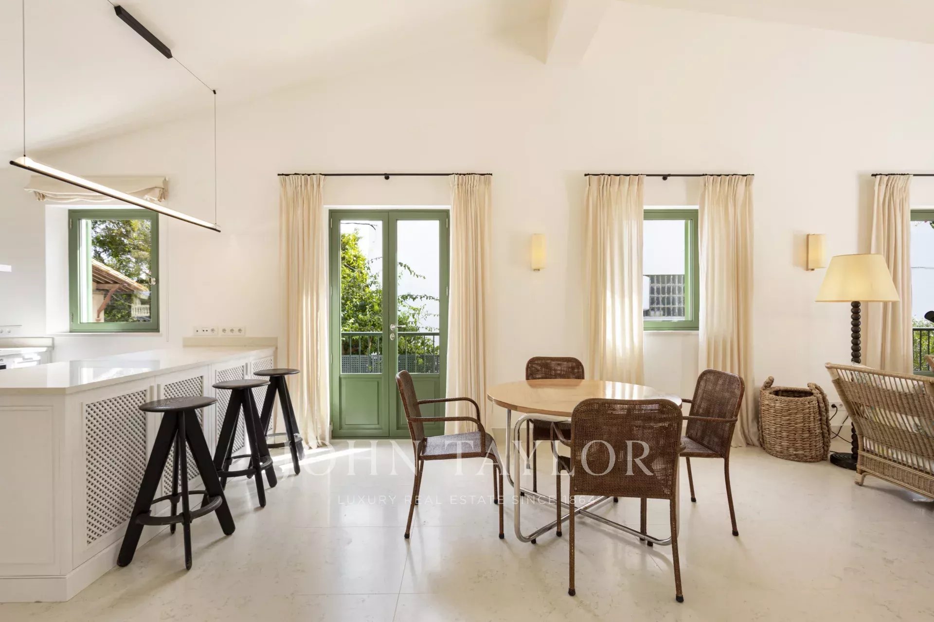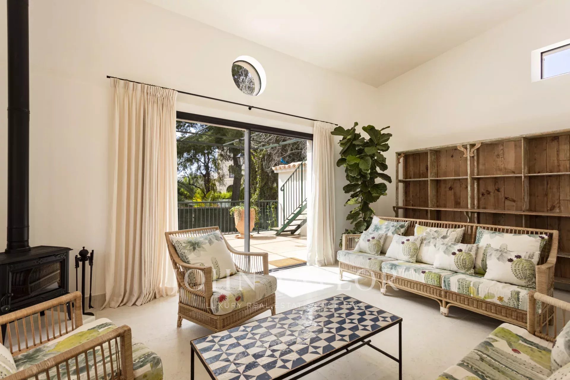 Dieses spektakuläre Haus in San Agustín, wurde nach den höchsten Qualitätsstandards komplett renoviert. Direkt neben dem Hotel Maricel gelegen, einer der exklusivsten Lagen der Stadt, bietet diese Immobilie eine perfekte Kombination aus Luxus, Komfort und fortschrittlicher Technologie. Auf 297 m² komplett renovierter Wohnfläche verfügt die Immobilie über 2 Doppelschlafzimmer und 1 Einzelschlafzimmer, die alle mit luxuriösen Ausstattungen versehen sind. Darüber hinaus bietet es über zwei geräumige und helle Wohnzimmer, die auf Komfort und Eleganz ausgelegt sind, eines davon mit integrierter offener Küche. Die 54 m² große Garage kann als solche oder als Fitnessraum, Spa, Kinoraum oder als zusätzlicher Raum je nach Bedarf genutzt werden und verfügt über eine zusätzliche Einfahrt und einen Privatparkplatz. Das Anwesen verfügt außerdem über zwei Außenterrassen und eine Dachterrasse, letztere mit teilweisem Meerblick, sowie einen wunderschönen Mikrozement-Sole-Pool im Erdgeschoss, der eine private Oase darstellt. Bei der Gestaltung des Hauses wurden hochwertige Naturmaterialien wie Lärchen- und Iroko-Holz, Perlino-Marmor und Stein aus Santanyi und Binissalem verwendet. Die in Italien handbemalten Fliesen in den Bädern und die Verwendung von Mikrozement verleihen dem Haus einen Hauch von Raffinesse und Stil. Was den Komfort und die Technik betrifft, so verfügt das Haus über eine Fußbodenheizung und eine Klimaanlage, die zu jeder Jahreszeit eine perfekte Temperatur gewährleisten. Die Energieeffizienz wird durch eine Wärmepumpe zur Warmwasserbereitung, einen Wasserenthärter und eine eigene Druckverstärkungsanlage optimiert. Darüber hinaus verfügt die Immobilie über ein fortschrittliches Hausautomatisierungssystem für Beleuchtung und Klimaanlage sowie eine Vorinstallation für eine Alarmanlage, ein elektrisches Pkw Ladegerät und eine automatische Bewässerungsanlage, um den Garten perfekt zu pflegen.