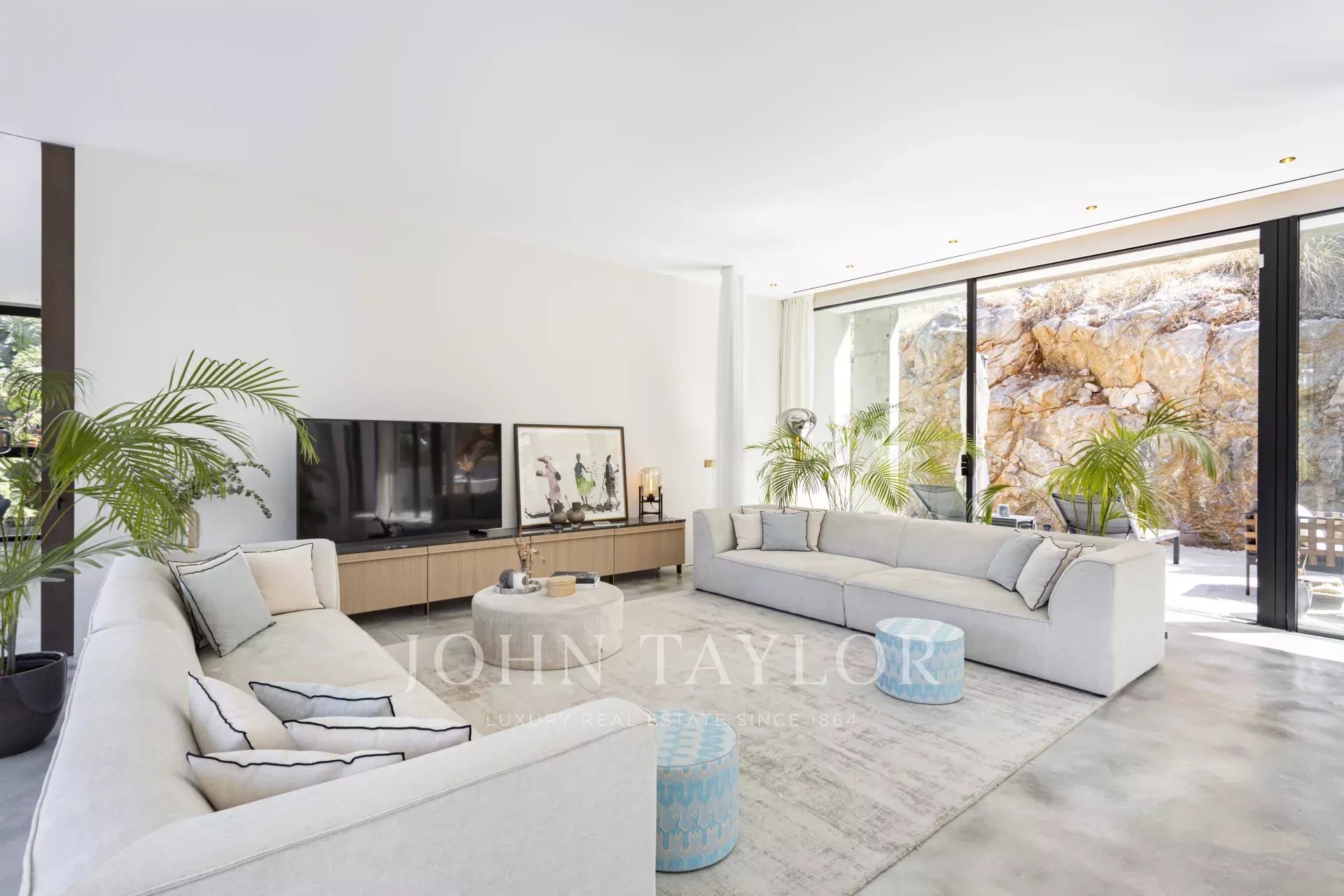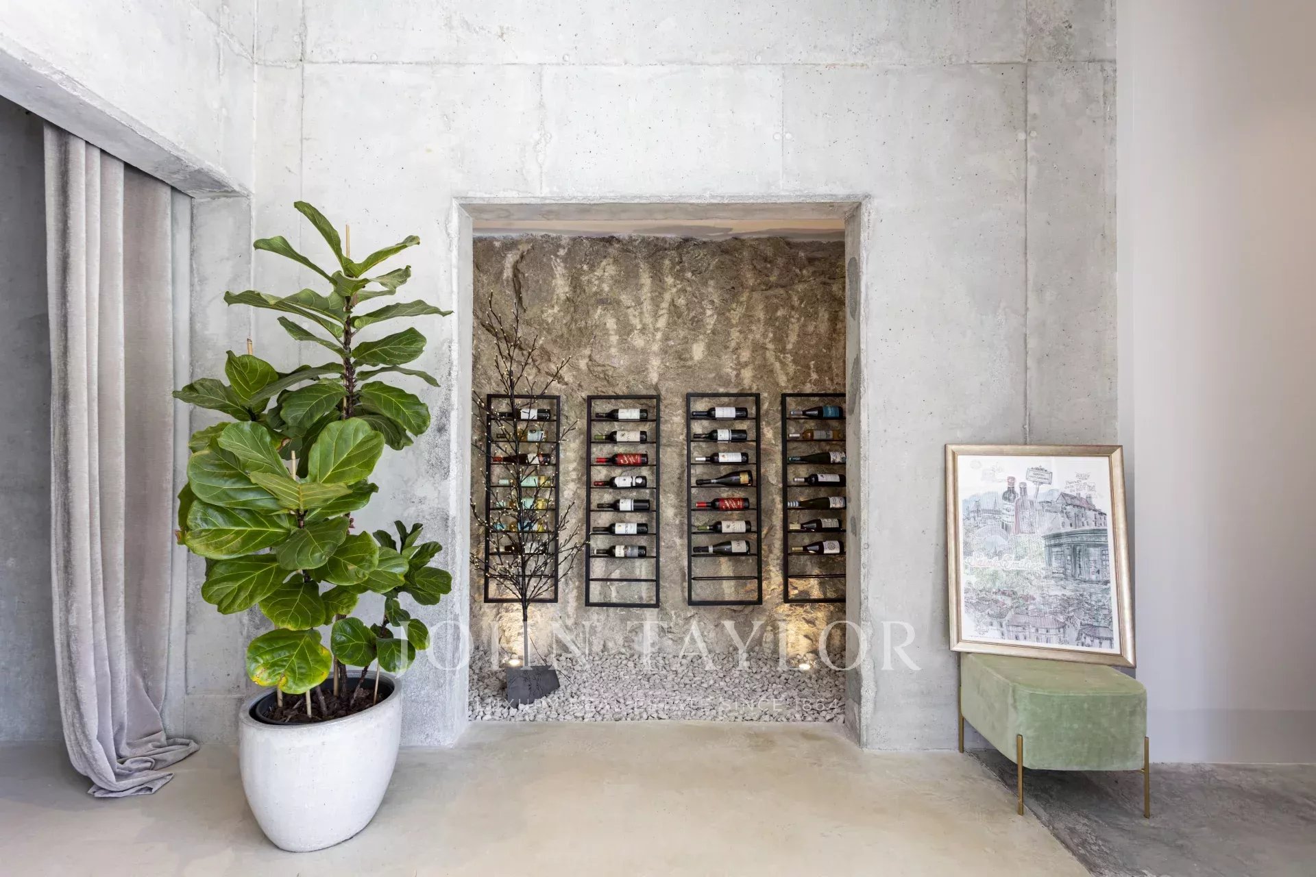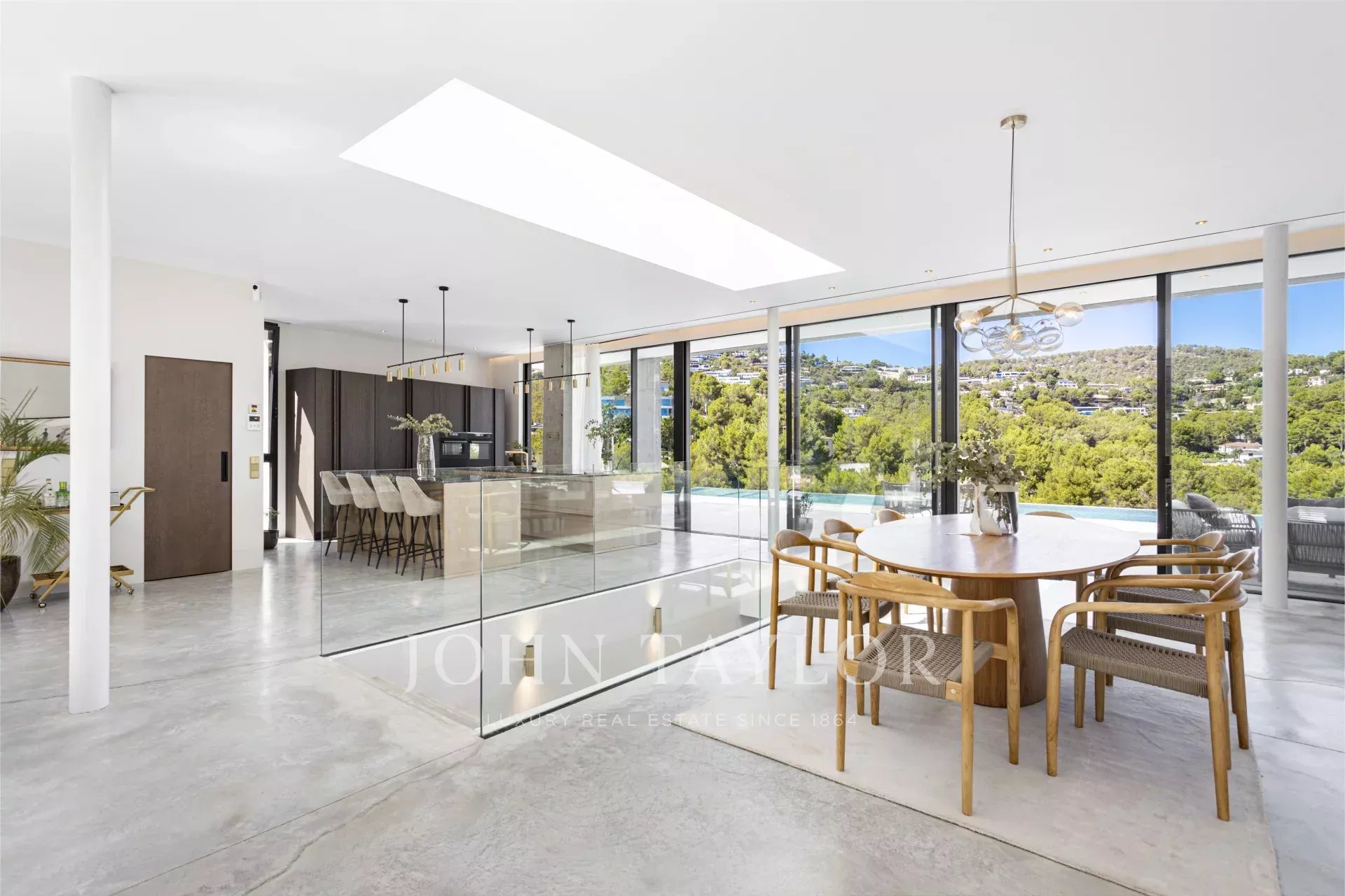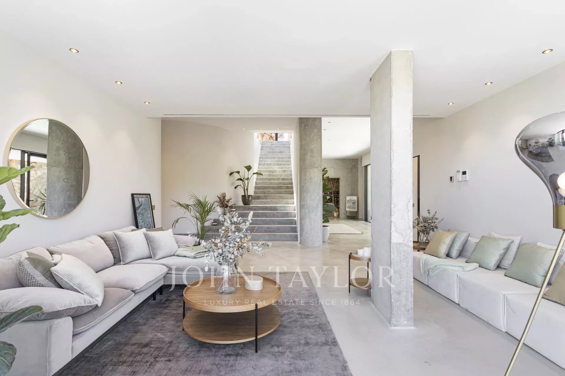Spektakuläre neu gebaute Villa in der exklusiven Gegend von Son Vida. Mit einem markanten architektonischen Design in Sichtbeton, bietet diese zweistöckige Immobilie eine geräumige Wohnfläche von 455 m2, mit der spannenden Möglichkeit, eine weitere 383 m2 hinzuzufügen. Eine Oase der Ruhe und des Luxus auf einem 2.635 m2 großen Grundstück mit herrlichem Blick auf den Golfplatz, die Stadt Palma und das Mittelmeer. Das Design dieser Villa ist das Ergebnis einer perfekten Verschmelzung von moderner Eleganz, Komfort und Funktion. Der Sichtbeton sorgt für eine einzigartige und kühne Ästhetik und unterstreicht die avantgardistische Persönlichkeit der Immobilie. Die bodentiefen Fenster und die offenen Räume garantieren eine Fülle von natürlichem Licht und schaffen eine helle und einladende Atmosphäre in jeder Ecke des Hauses. Der Außenbereich ist einfach atemberaubend. Genießen Sie Momente der Entspannung und Freizeit auf der 68 m2 großen Veranda, die ideal für gesellige Zusammenkünfte oder um die warmen mallorquinischen Nächte zu genießen ist. Die 120 m2 große Terrasse bietet den perfekten Platz zum Sonnenbaden und Genießen des Panoramablicks, den das Anwesen zu bieten hat. Der 28 Meter lange Swimmingpool ist ein wahres Schmuckstück und lädt zu einem erfrischenden Bad ein, während man die Schönheit der Umgebung genießt. Mit viel Privatsphäre wird dieser Bereich des Anwesens zu einer Oase, in der Sie sich entspannen und unvergessliche Momente genießen können. Darüber hinaus verfügt diese Villa über einen Spa-Bereich, in dem Sie sich mit verschiedenen Entspannungs- und Wellness-Angeboten verwöhnen lassen können. Die Innenaufteilung wurde sorgfältig durchdacht, um einen funktionalen und komfortablen Raum zu bieten. Mit vier geräumigen Schlafzimmern, jedes mit eigenem Bad, bietet die Villa eine intime und angenehme Umgebung für ihre Bewohner. Die Master-Suite schafft eine traumhafte Umgebung zum Entspannen und Genießen der Privatsphäre. Die Gemeinschaftsräume stehen dem in nichts nach. Das Wohnzimmer und das Esszimmer gehen nahtlos ineinander über und schaffen einen gemütlichen und großzügigen Raum, um Momente mit der Familie oder Freunden zu teilen. Die modern gestaltete und mit den neuesten Annehmlichkeiten ausgestattete Küche ist der perfekte Ort, um Ihrer kulinarischen Kreativität freien Lauf zu lassen. Kurzum, diese neu gebaute Villa in Son Vida ist ein wahres Meisterwerk der modernen Architektur, das atemberaubendes Design mit dem Komfort eines Zuhauses verbindet.