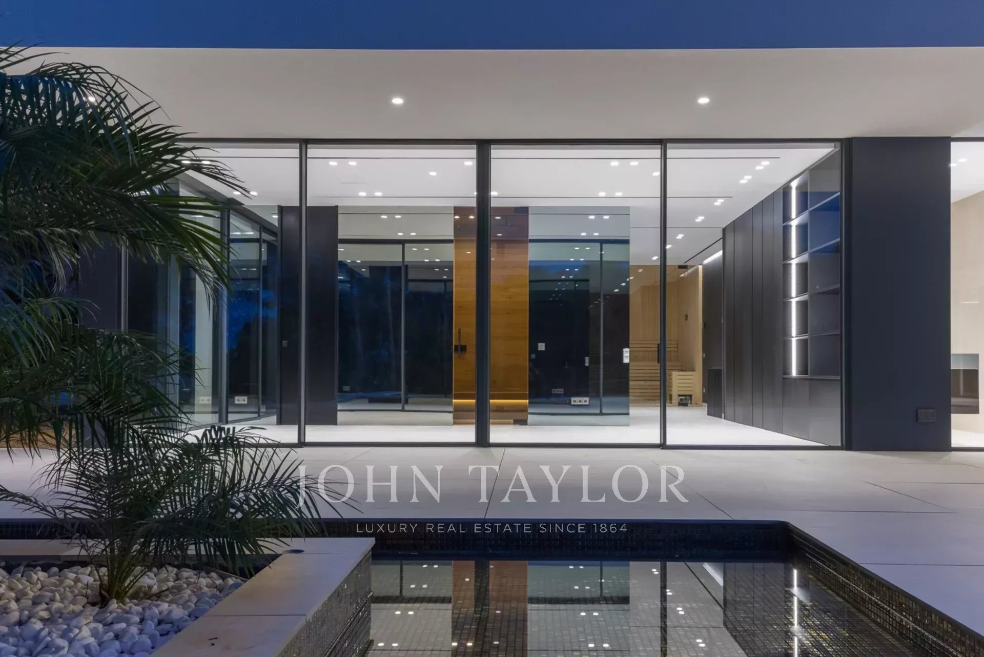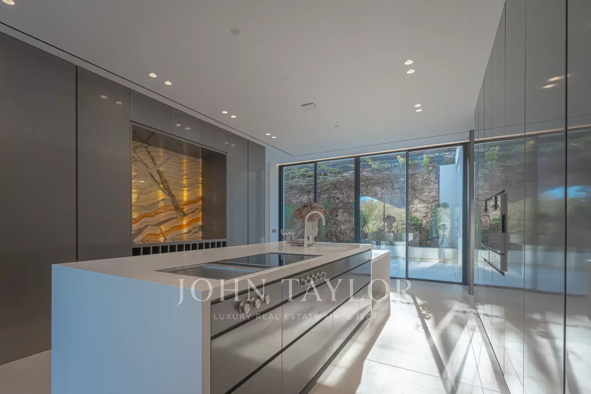 Abgerundet wird die Immobilie durch eine Garage mit Platz für sechs Autos und eine hochwertige Ausstattung, darunter Gaggenau-Geräte, eine intelligente Hausautomatisierung, ein Luftreinigungssystem, Grohe-Badarmaturen und exklusive Designermöbel.
